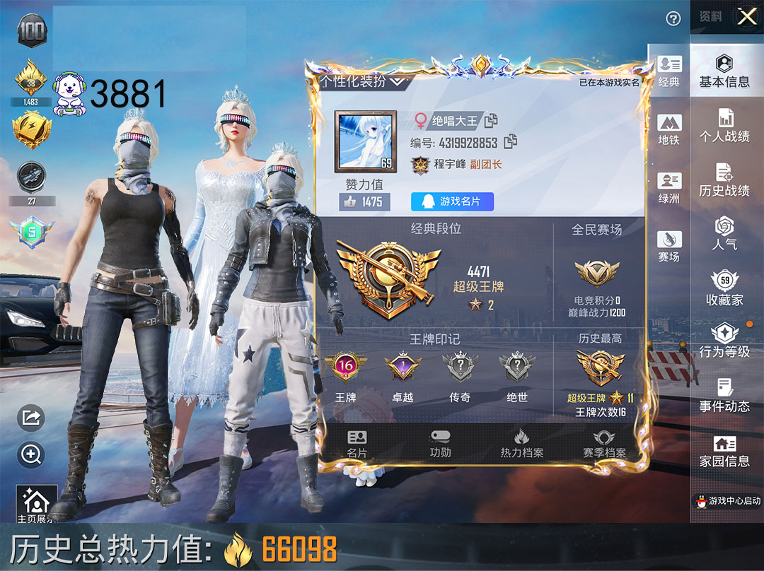 和平精英【苹果QQ】蓝玛莎冰绡玉鳞2枪3粉都市天网雪国电眼星星裤洛天依