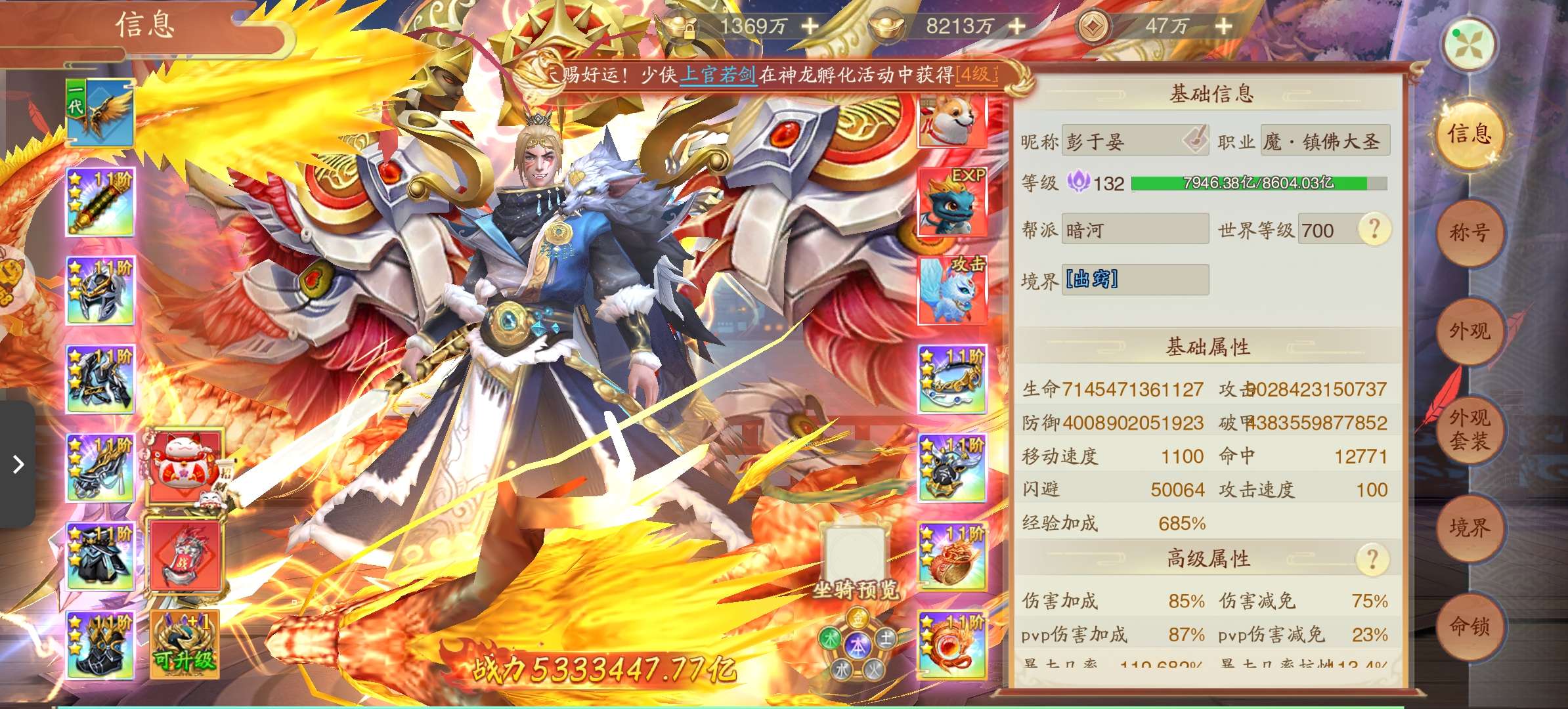 幻世九歌【安卓游戏fan】530万亿战力新号回馈新老顾客低价出售