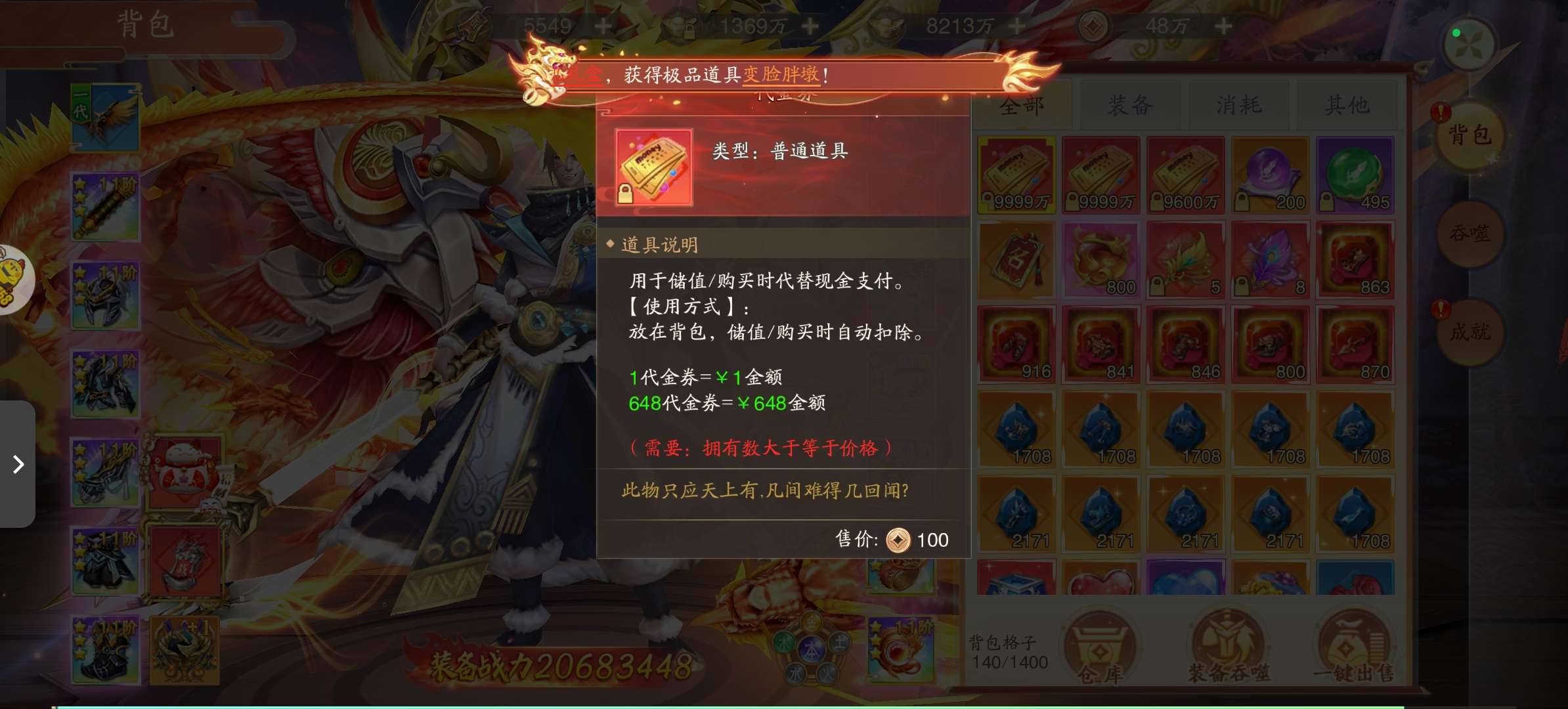 战玲珑2,530多万亿战力,有代金,新号回馈新老顾客低价出售,仅此一个先到先得。