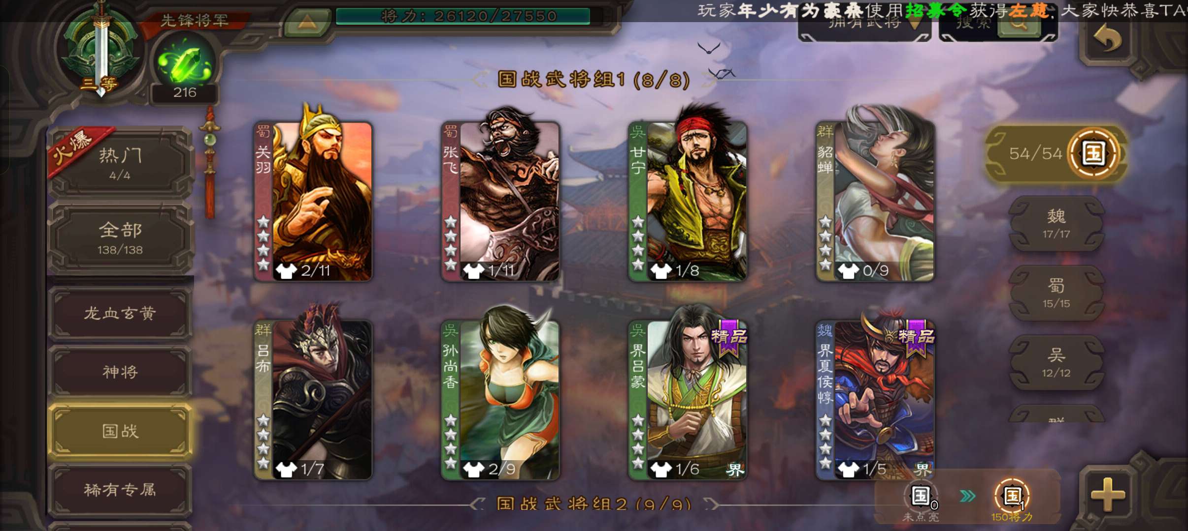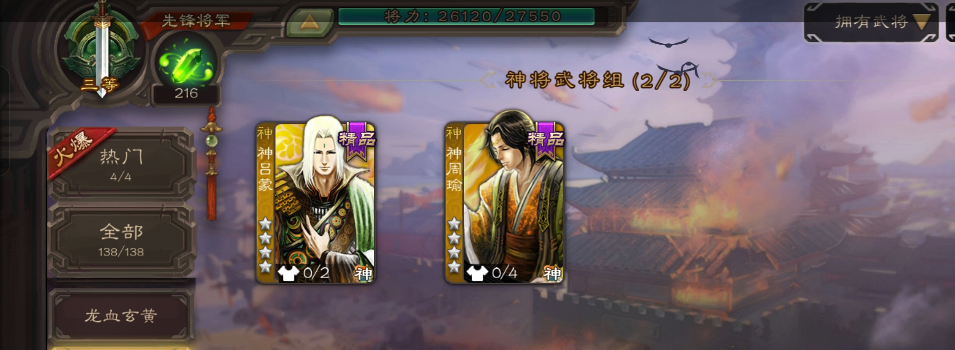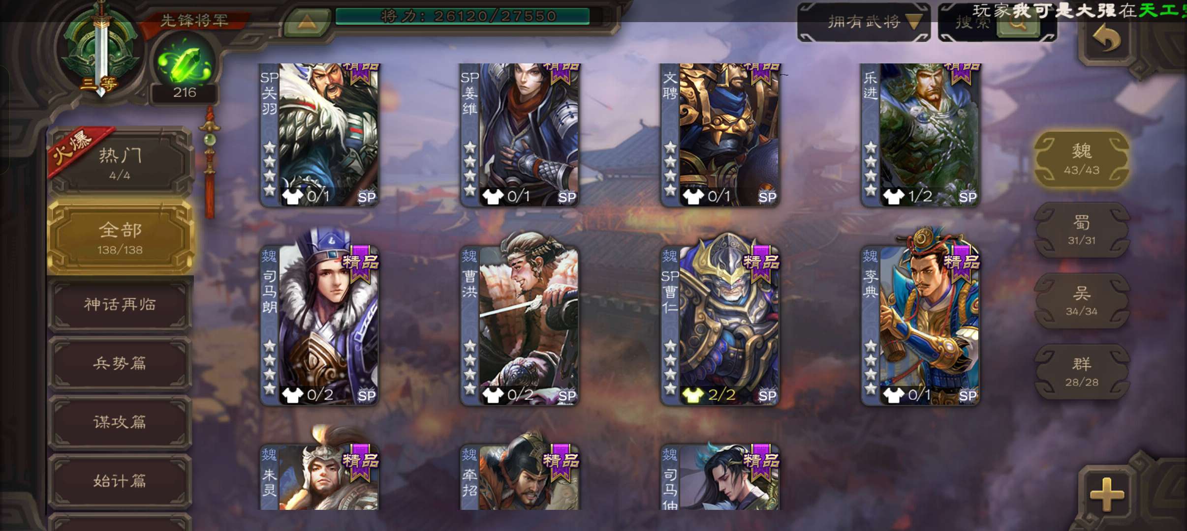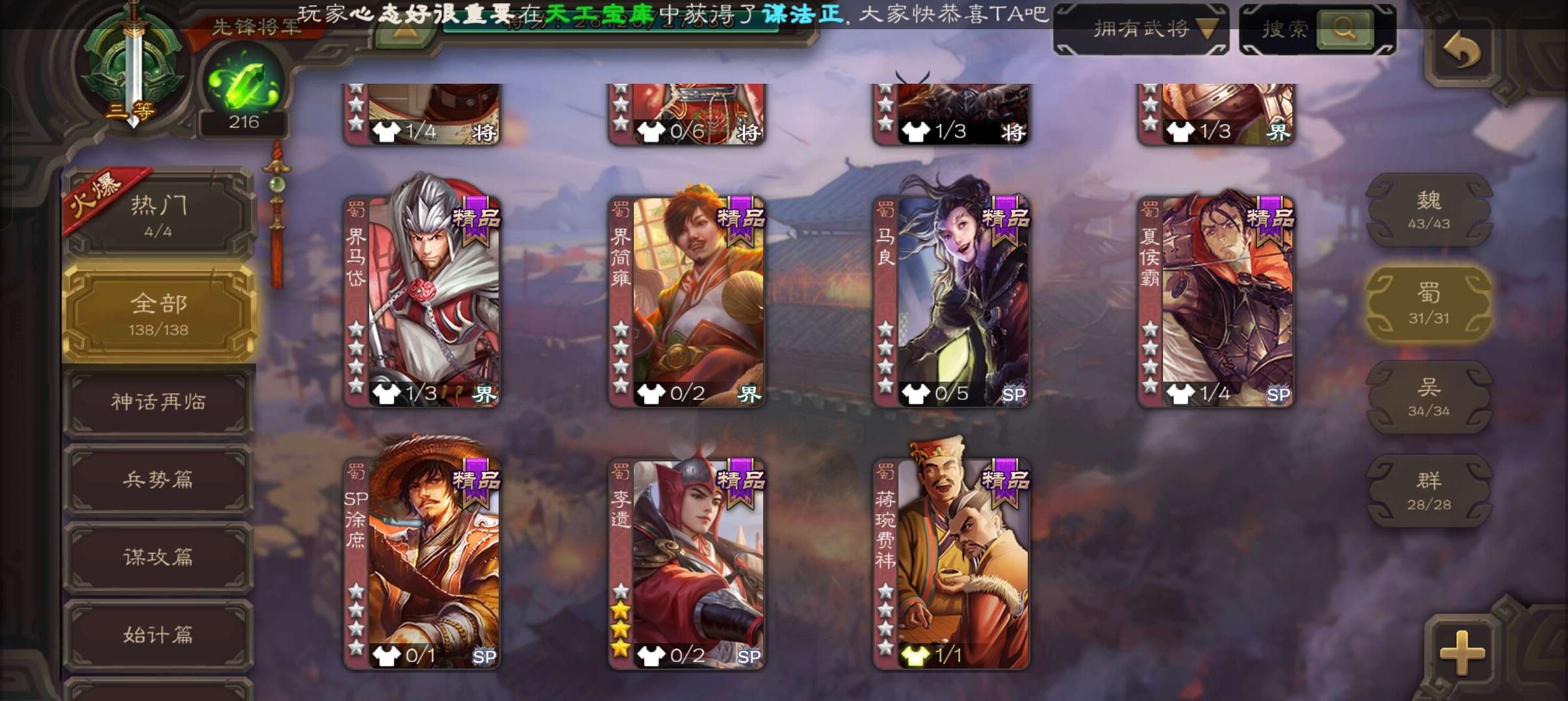 5史诗2神先锋,大宝界徐盛回廊界李儒沮授界于禁郝昭,天工李遗神吕蒙神周瑜动界曹植动界陆逊138将