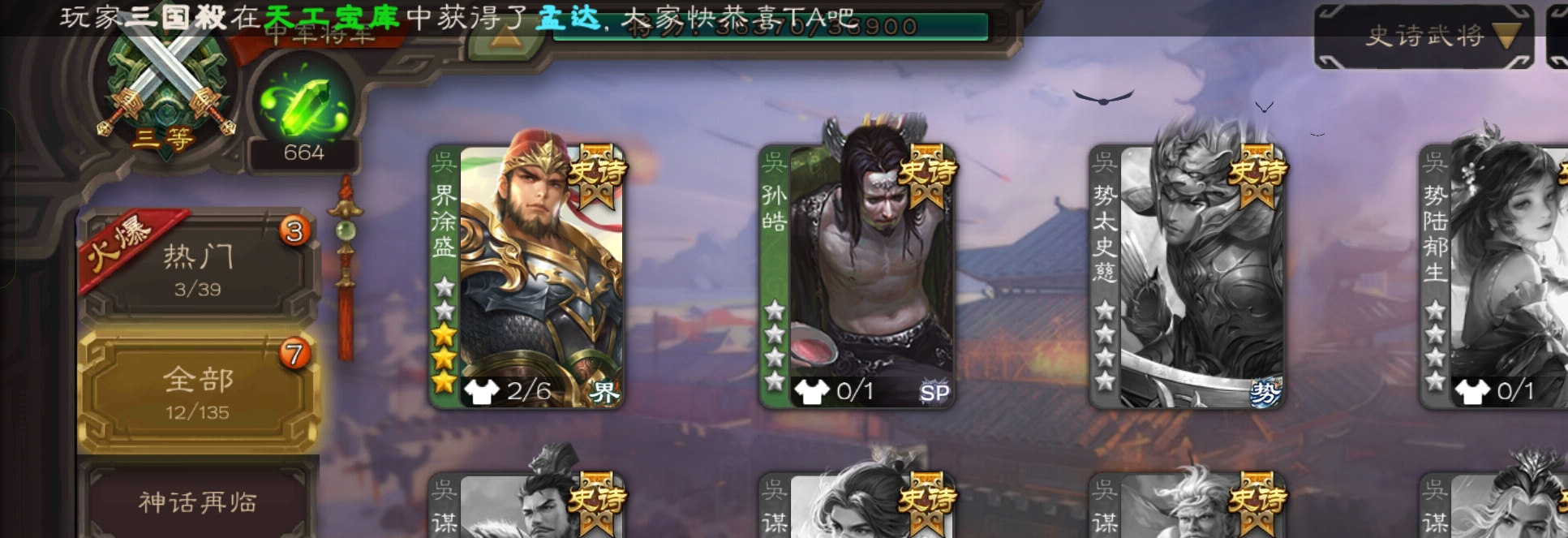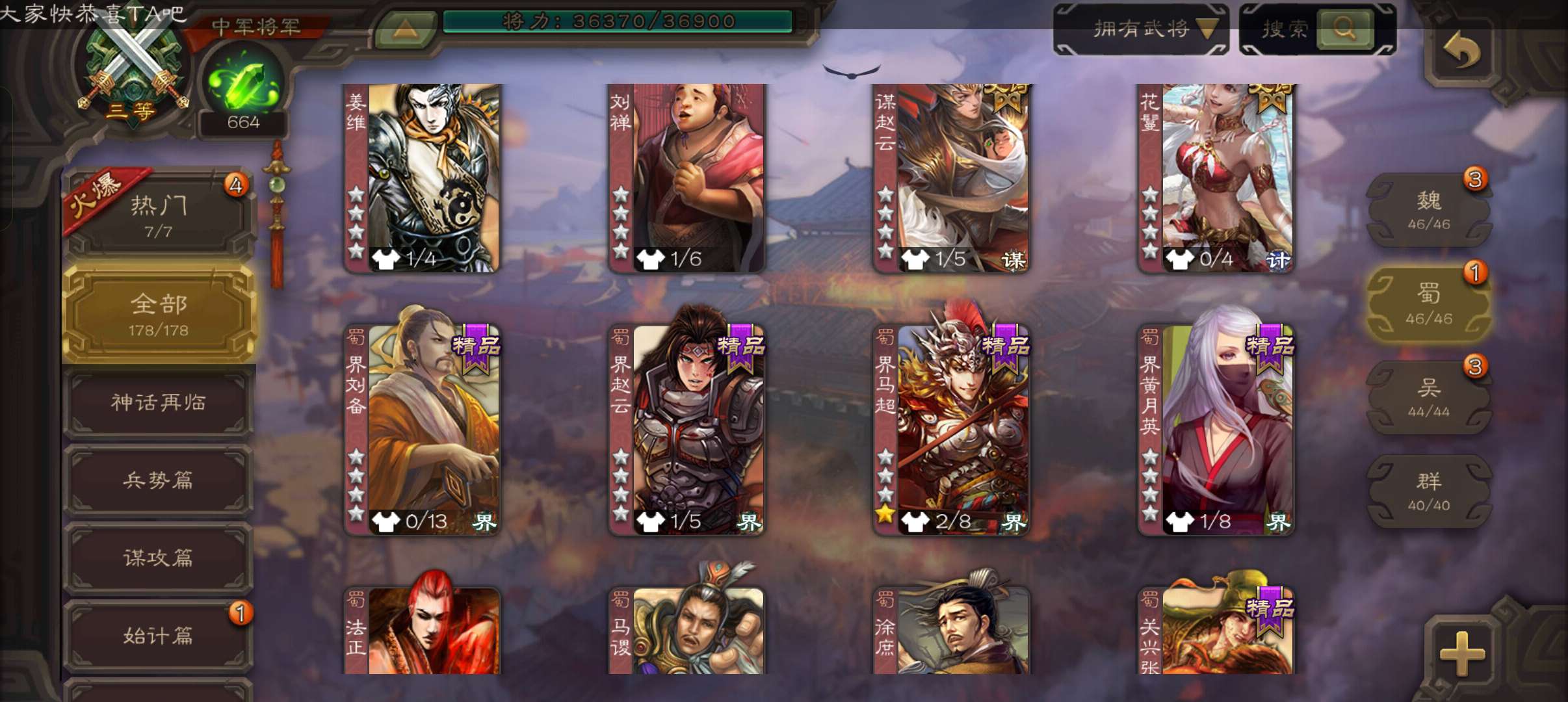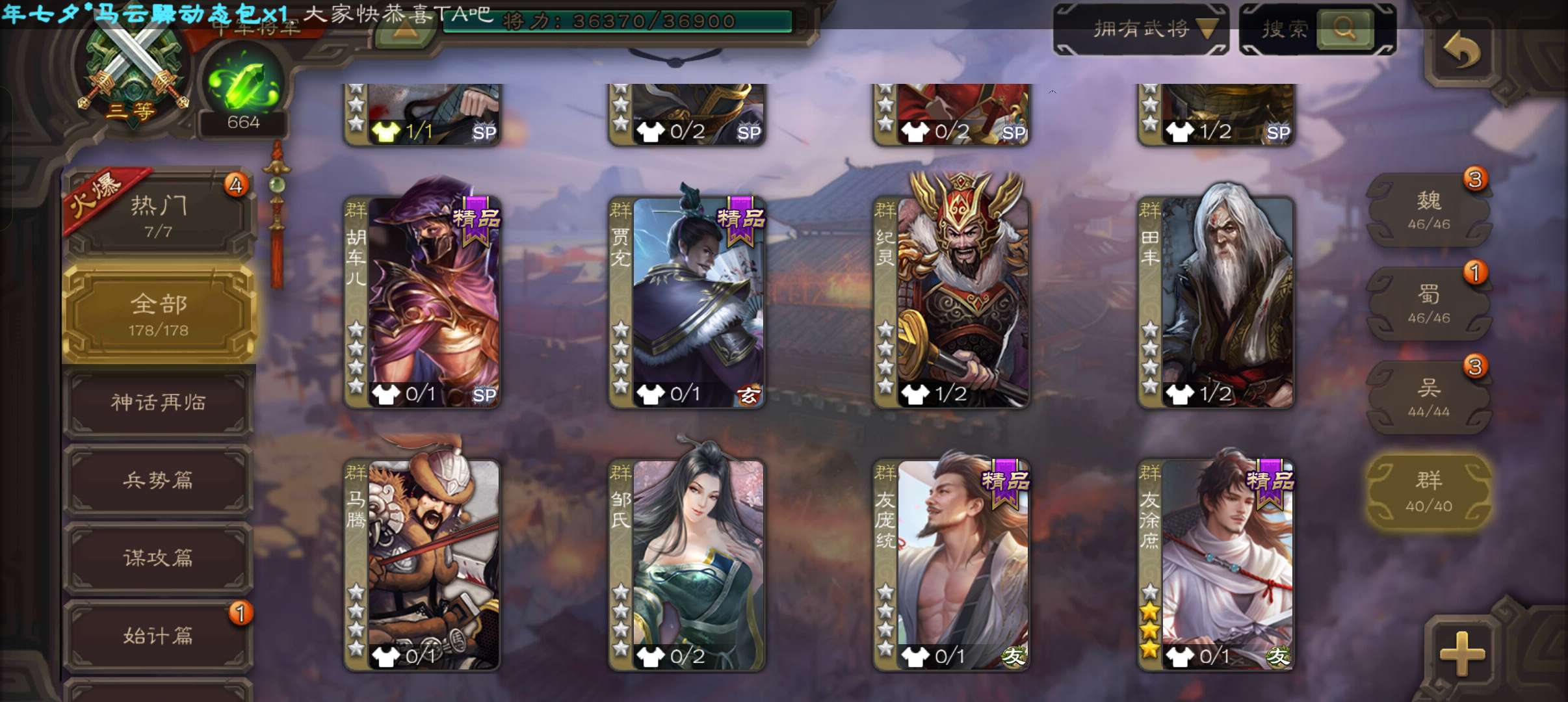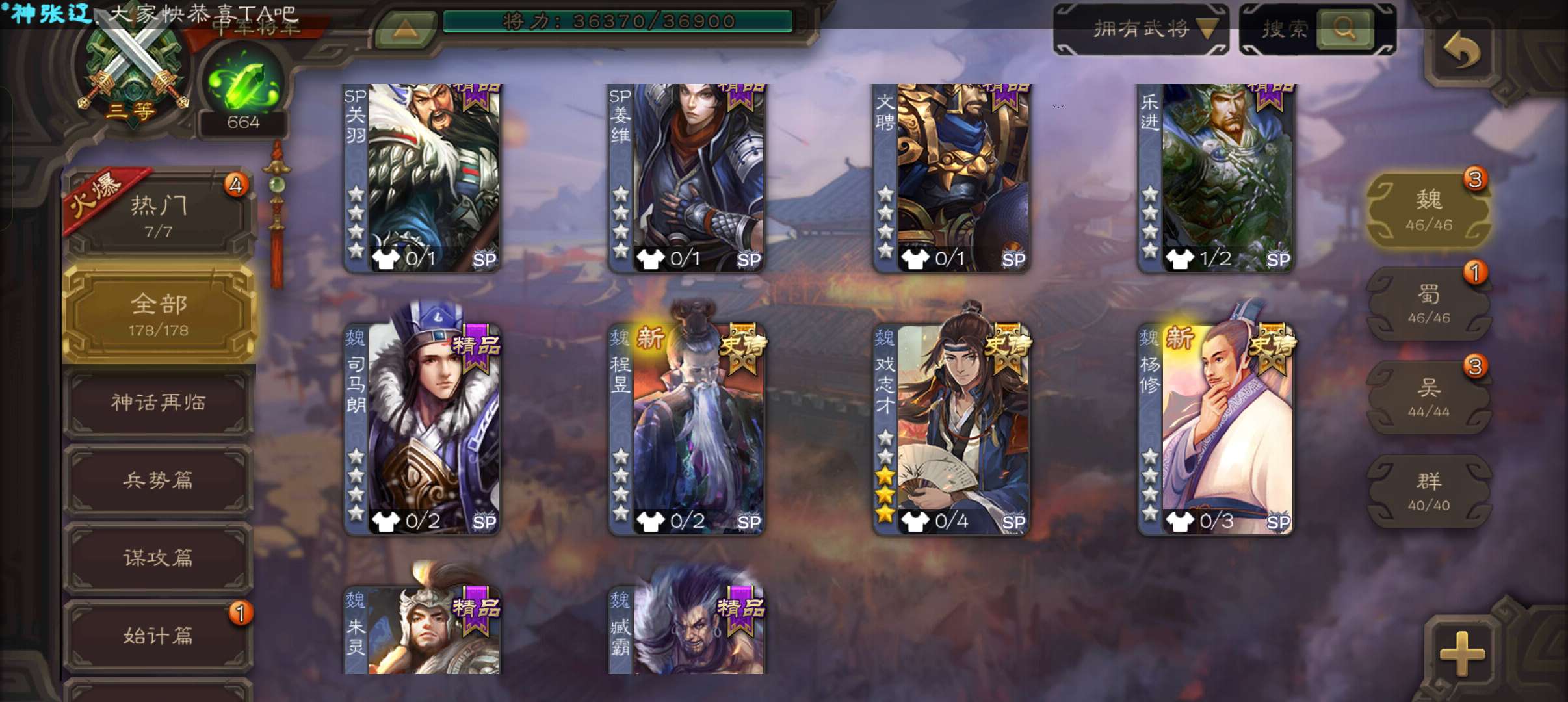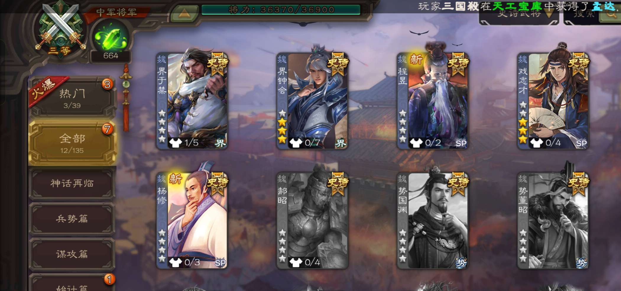 12史诗中军,双天工友徐庶李遗,贵了动大宝神吕布戏志才界钟会沙摩柯谋赵云花鬘谯周孙皓界于禁杨修程昱