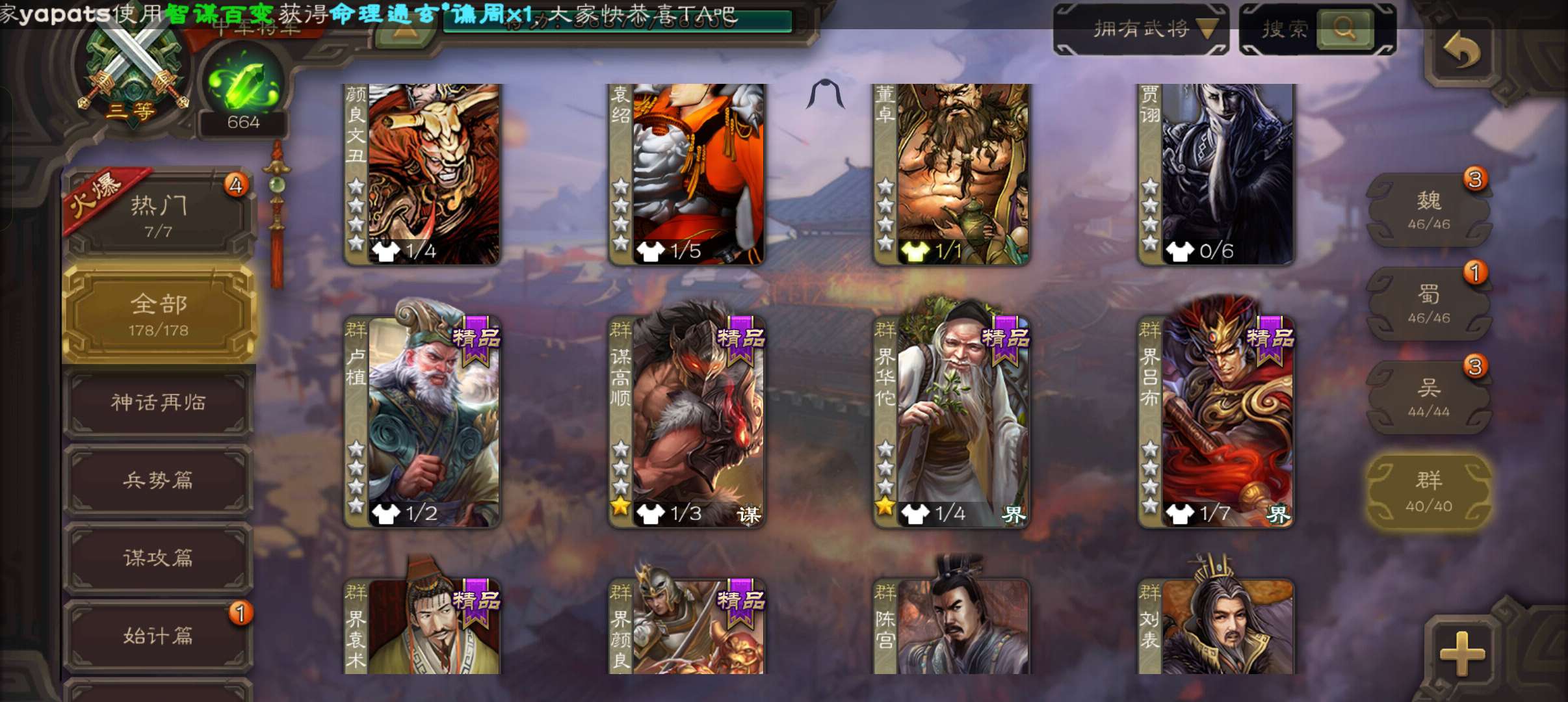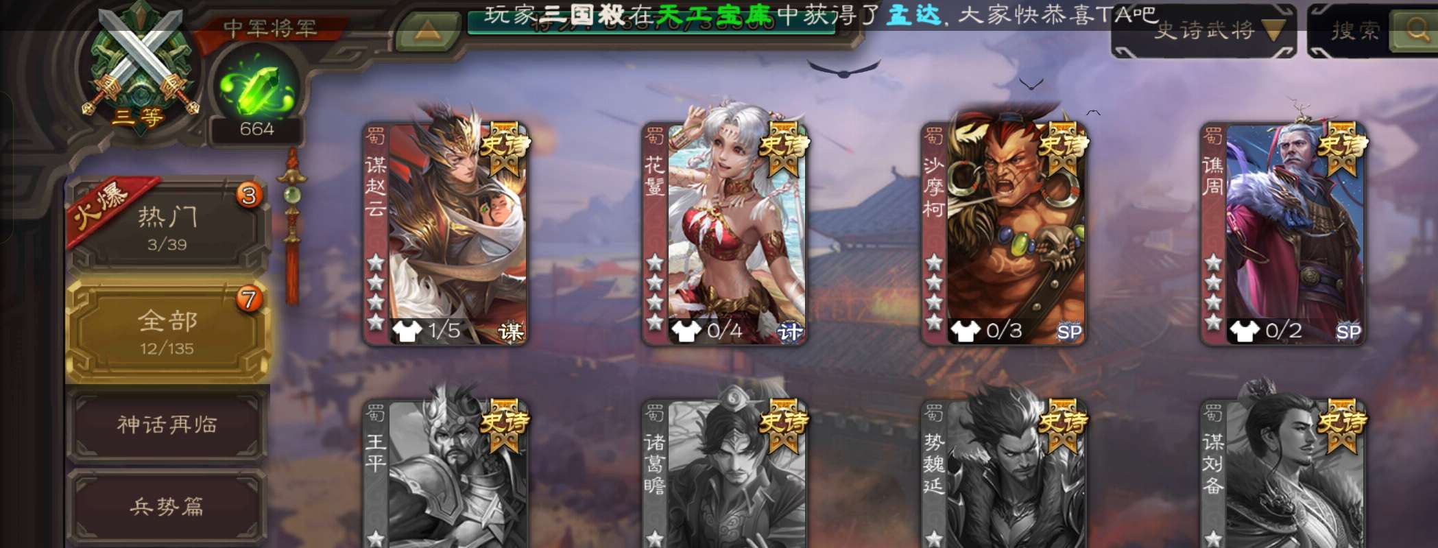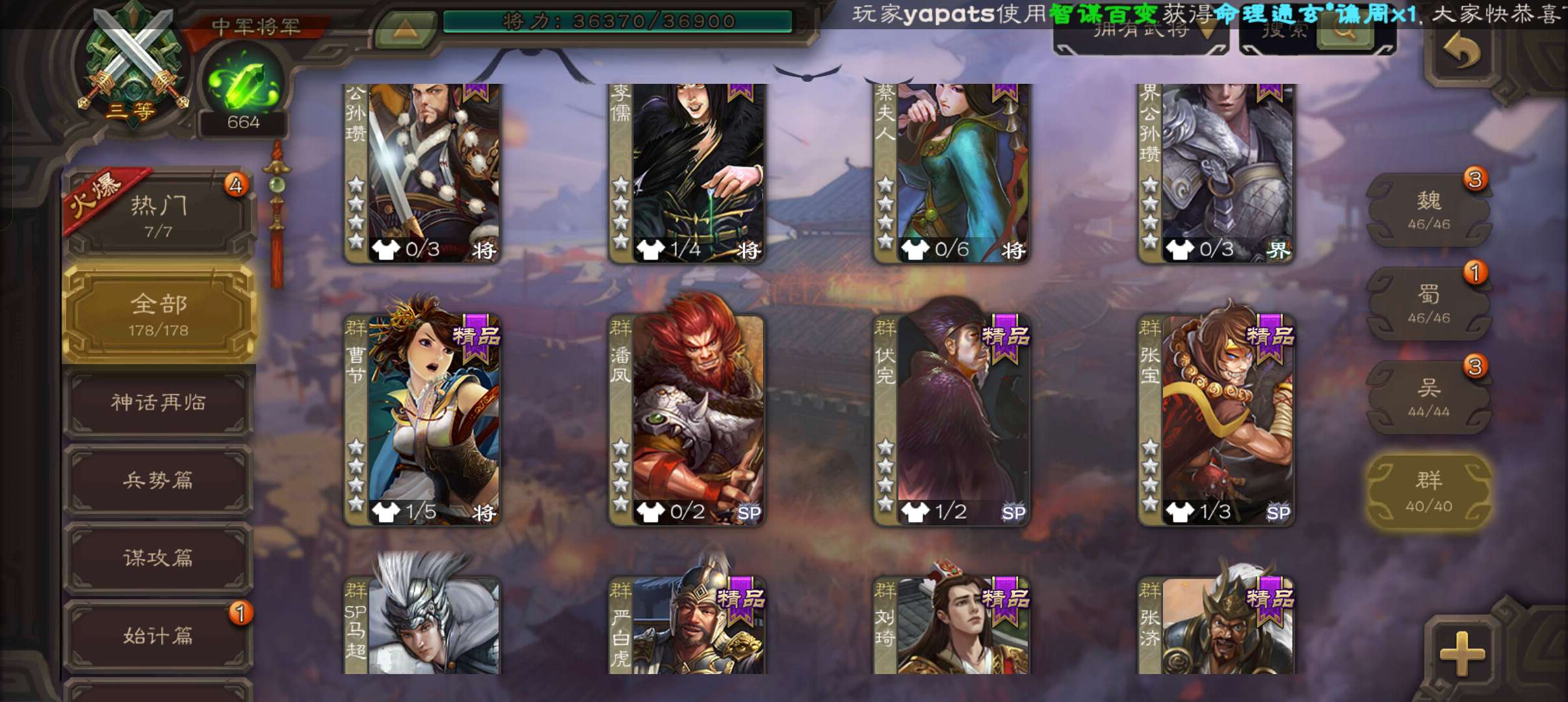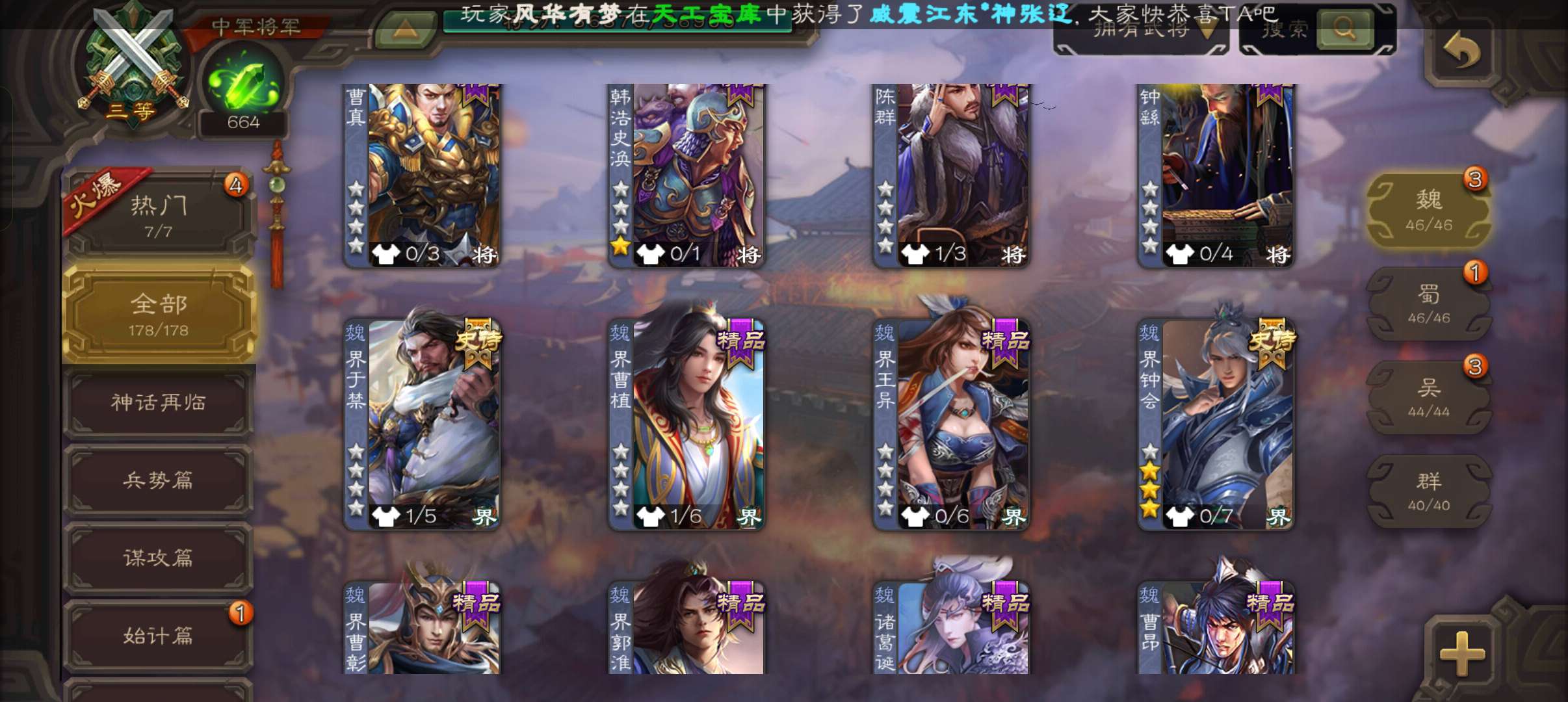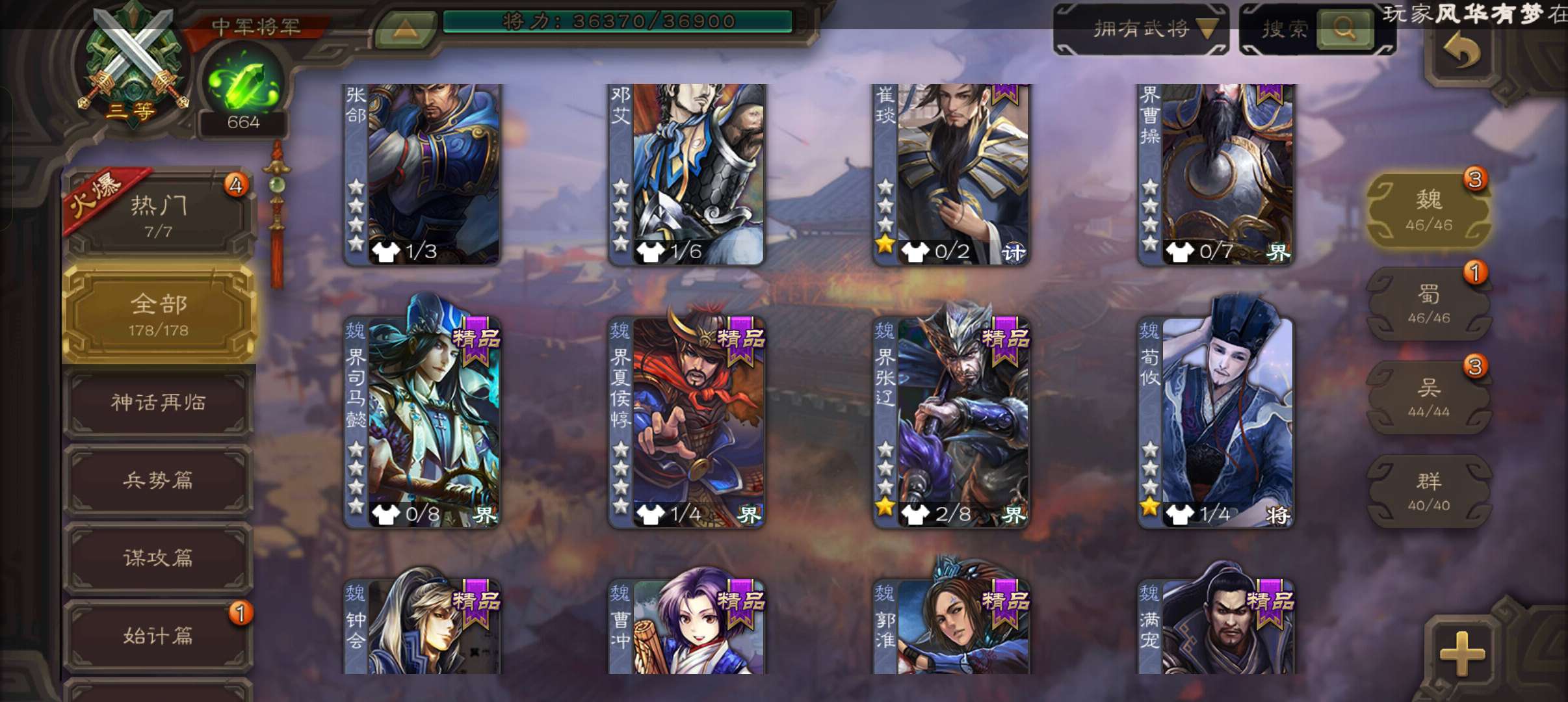 12史诗中军,双天工友徐庶李遗,贵了动大宝神吕布戏志才界钟会沙摩柯谋赵云花鬘谯周孙皓界于禁杨修程昱