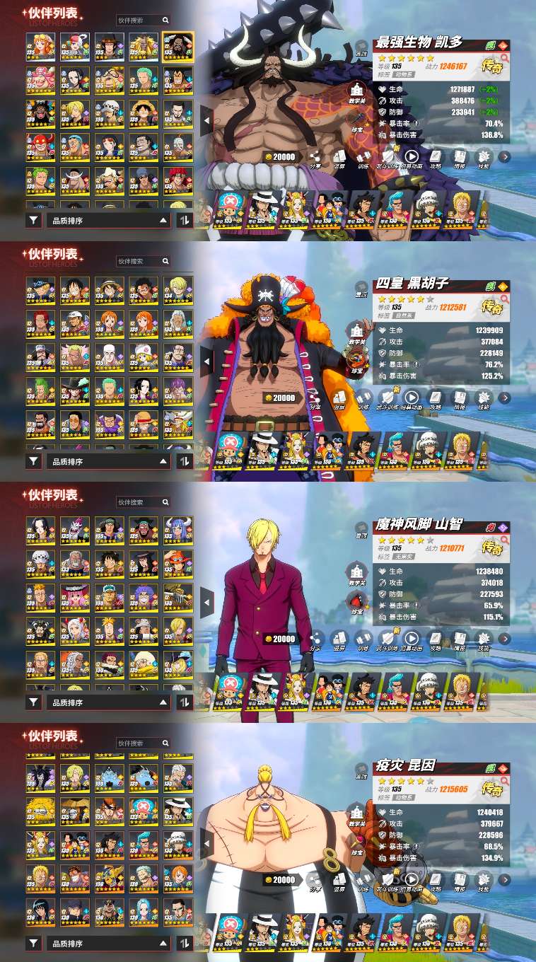 航海王热血航线【安卓官方】8神船1.74亿战全服395,6星凯多,和佐,明哥,青年卡普,新世界娜美等5星乌塔,魔神山治,奎因,