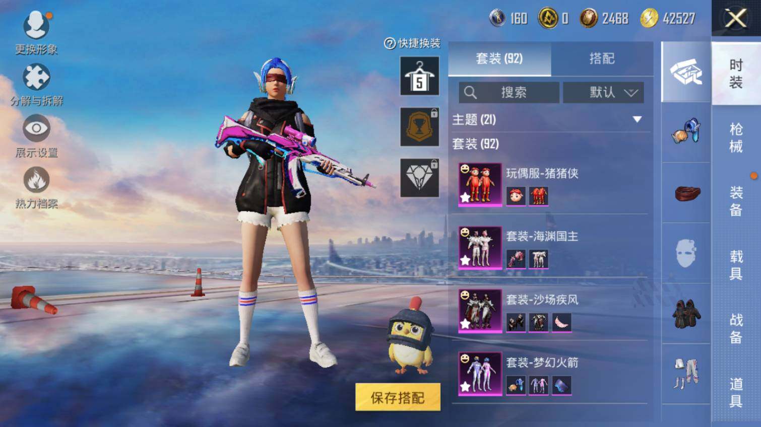 【粉色套装】:粉装-梦幻火箭,粉装-沙场疾风,粉装-海渊国主,玩偶服-猪猪侠