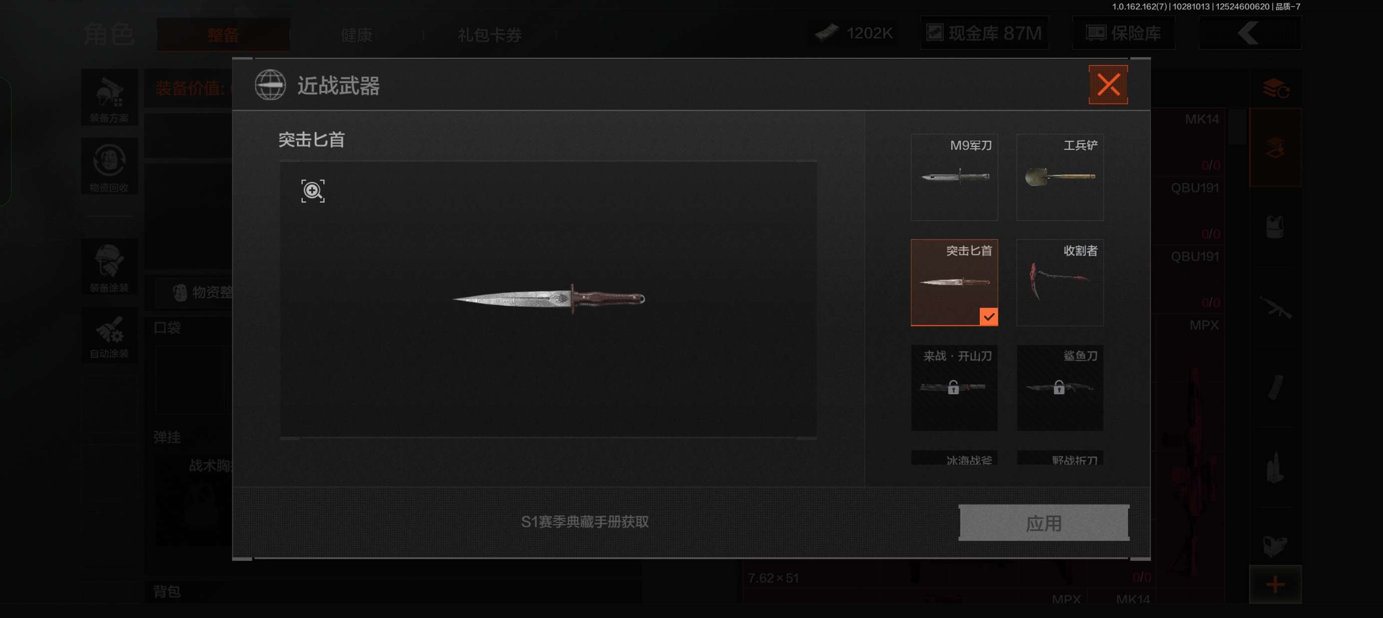 暗区突围【安卓QQ】诚心出号收割者突击匕首6个金枪皮性价比高,有二次可议价