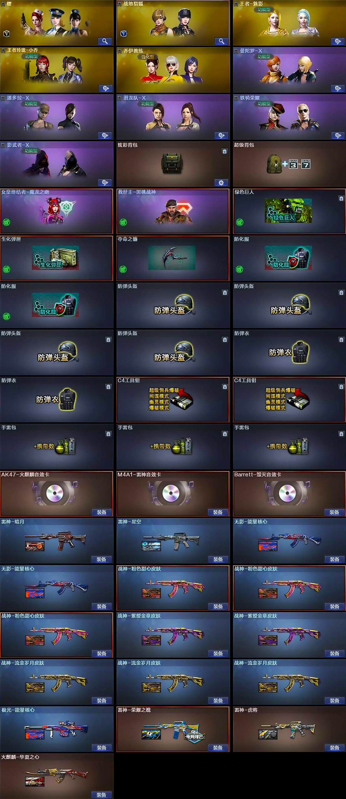 【皮肤】:雷神-暗月,雷神-荣耀之魄,雷神-星空,雷神-虎将,火麒麟-华夏之心,无影-能量核心*2,战