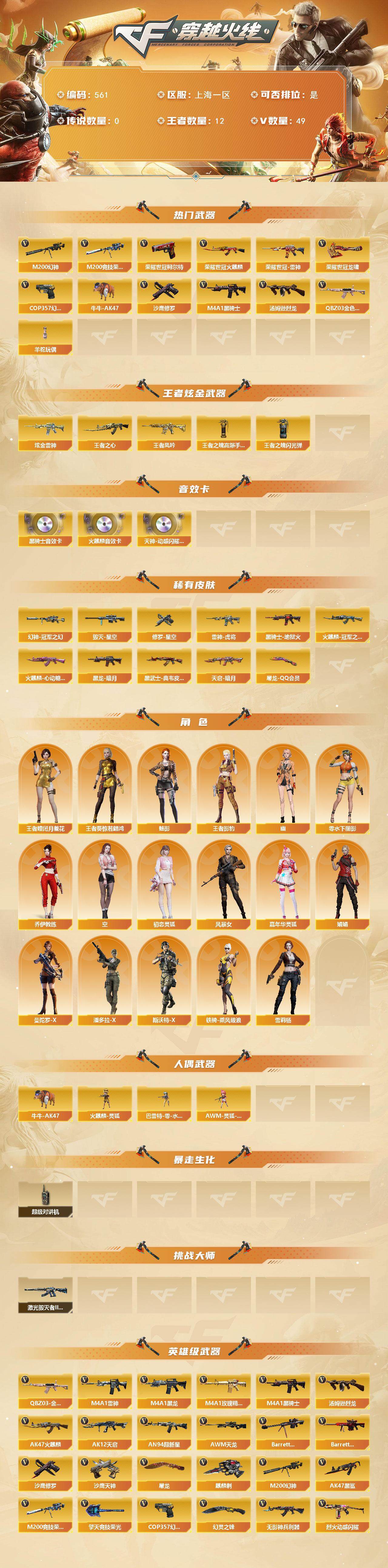 【热门武器】:QBZ03-金色蔷薇,M200-幻神,M200-竞技荣光,荣耀世冠-火麒麟,荣耀世冠-雷神,荣耀世冠-柯尔特,牛牛-AK47,M4A1-黑骑士,汤姆逊-烈龙,羊驼玩偶,COP 357-幻灵*2,沙鹰-修罗,荣耀世冠-龙啸
