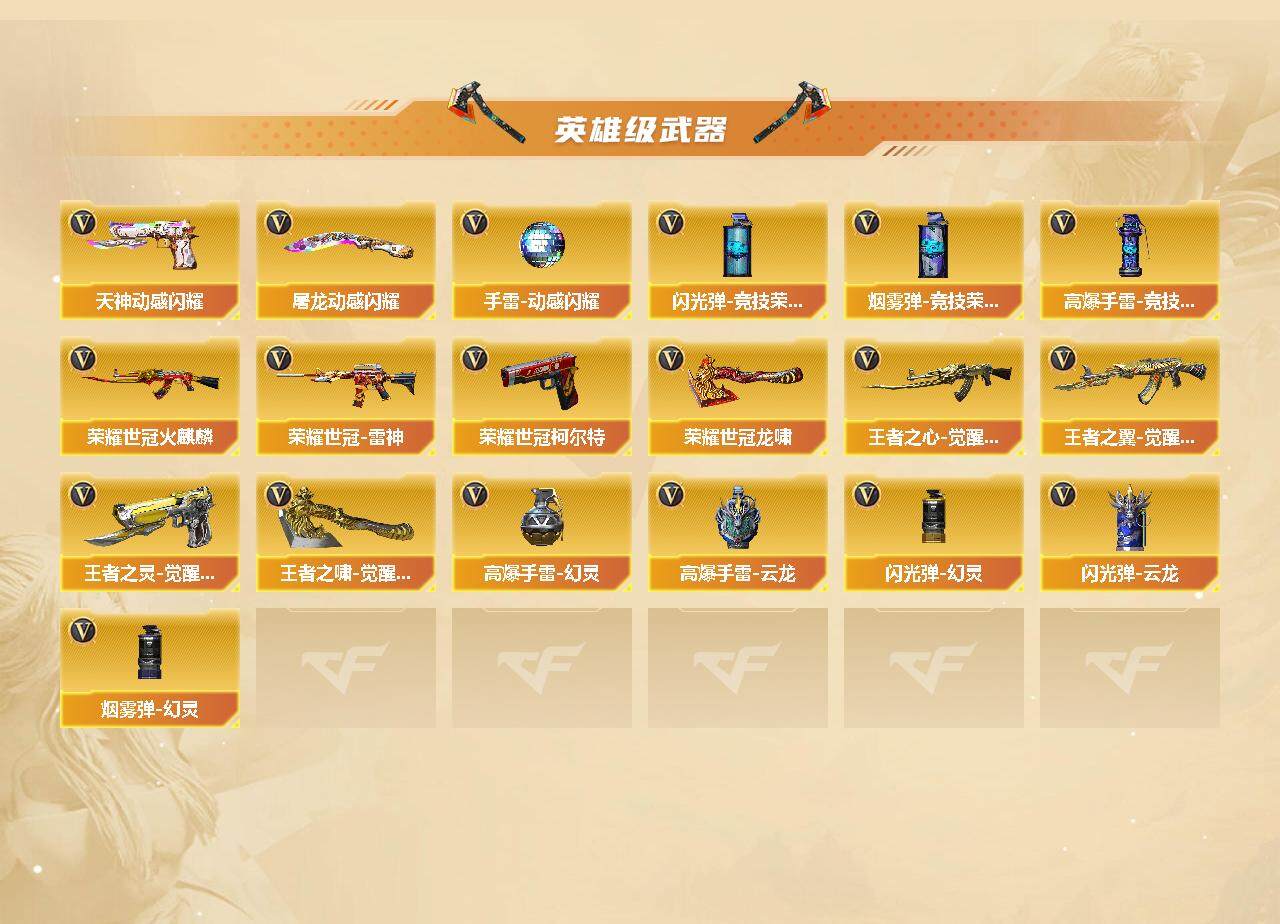 【王者炫金武器】:王者之心,王者凤吟,炫金雷神,王者之魄高爆手雷*2,王者之魄闪光弹