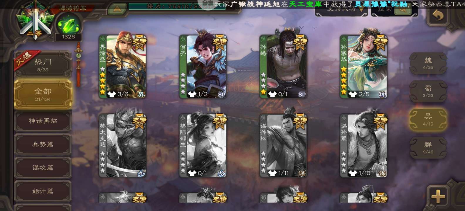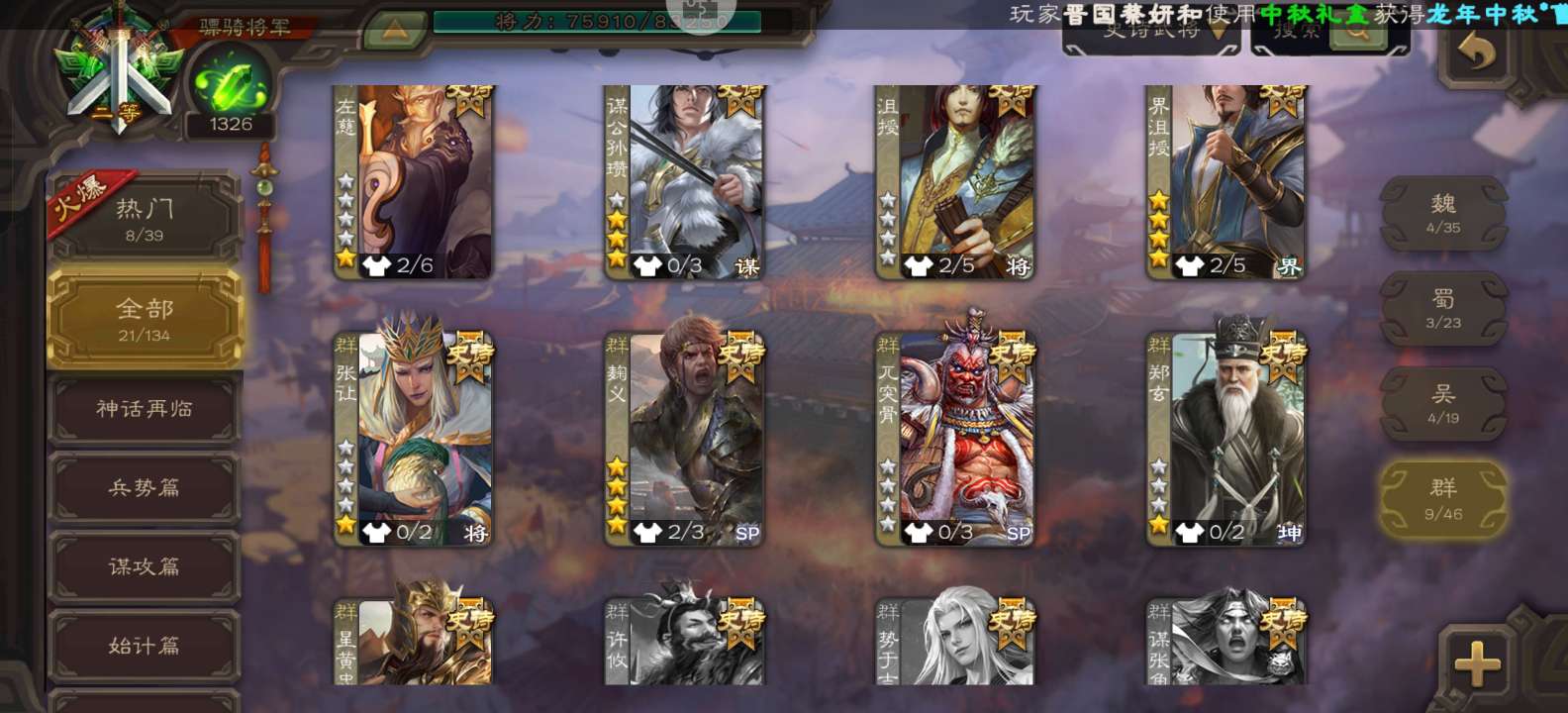 三国杀【安卓华为】界沮授孙寒华谋公孙瓒白马大宝星黄总神太守慈