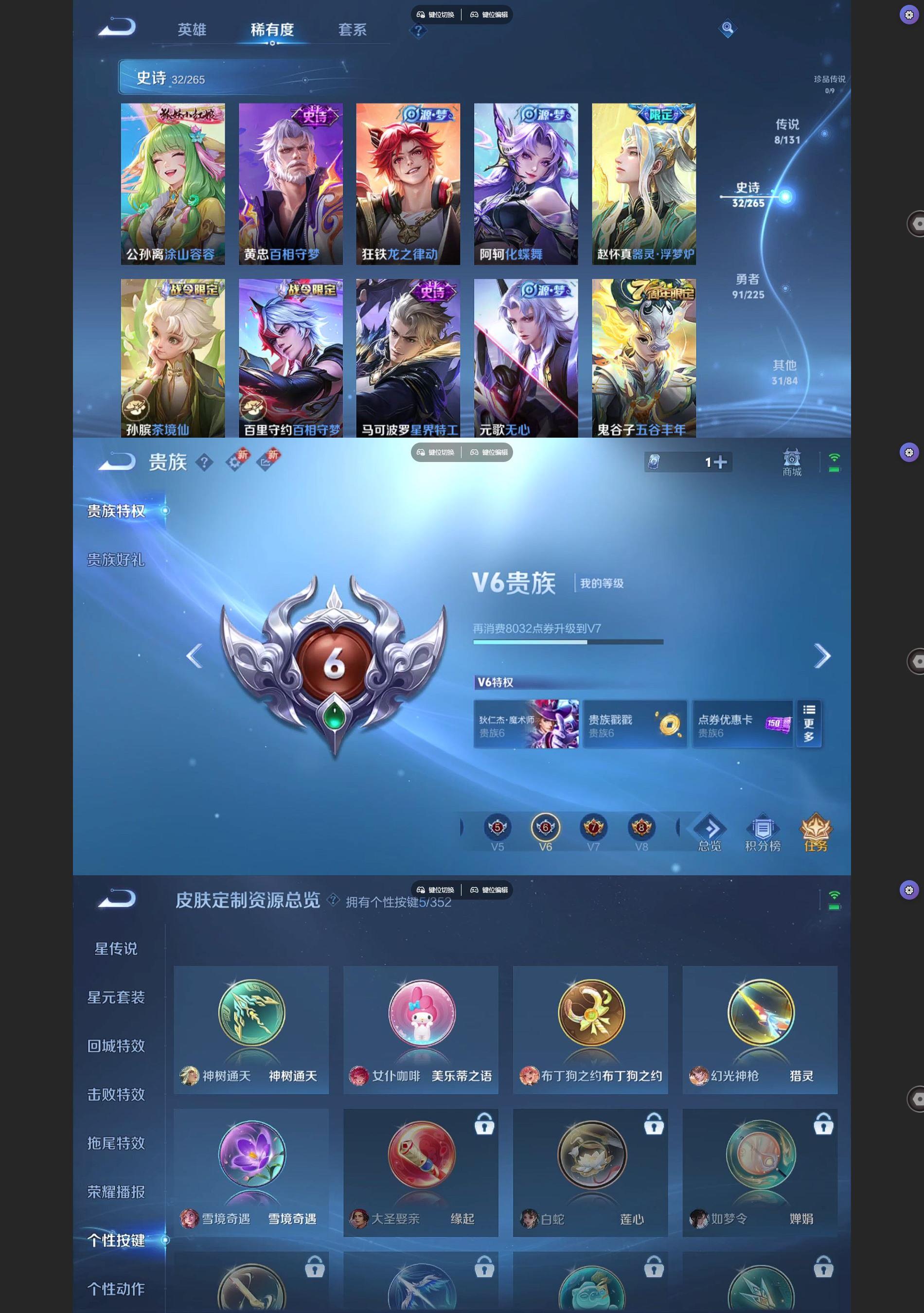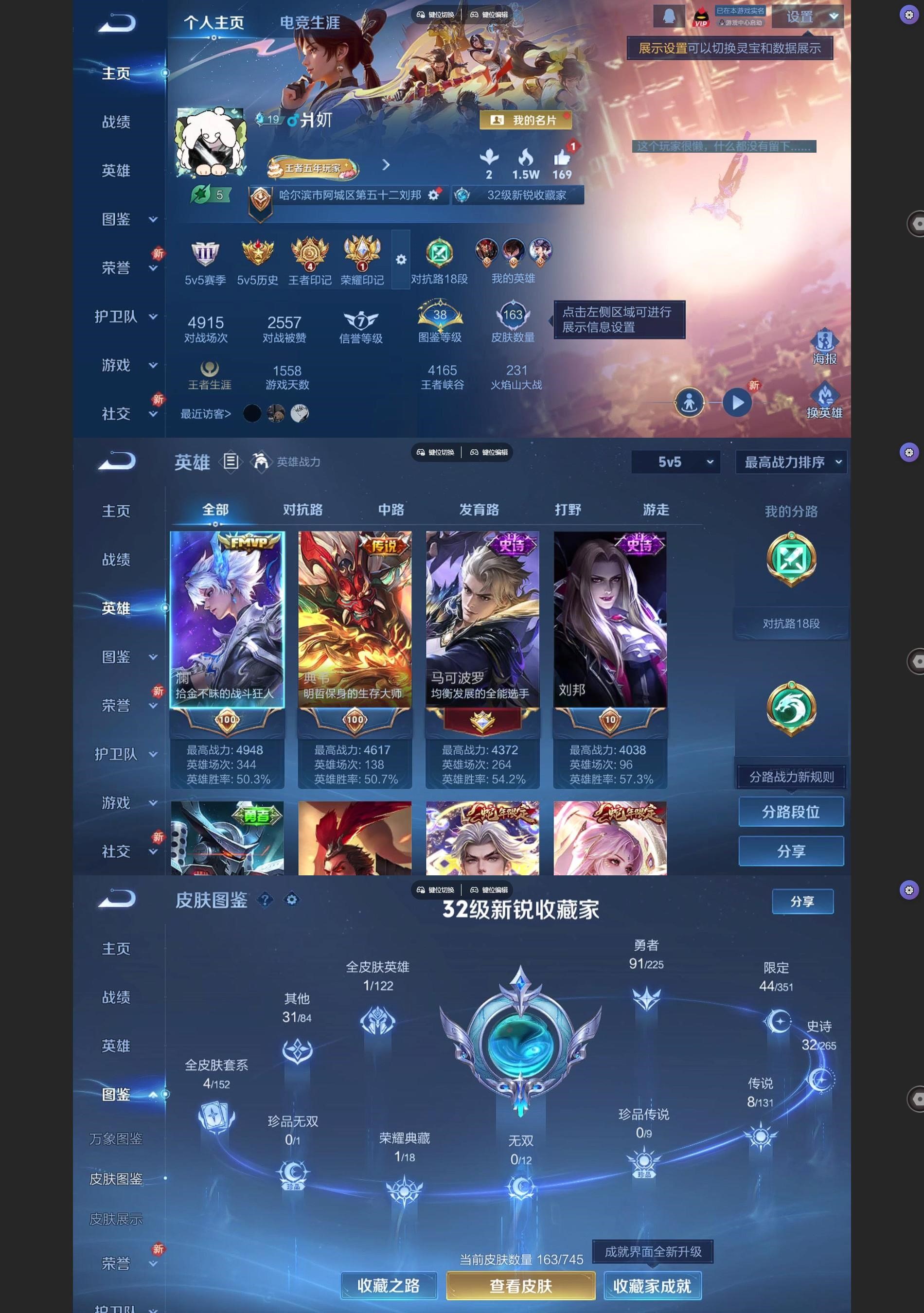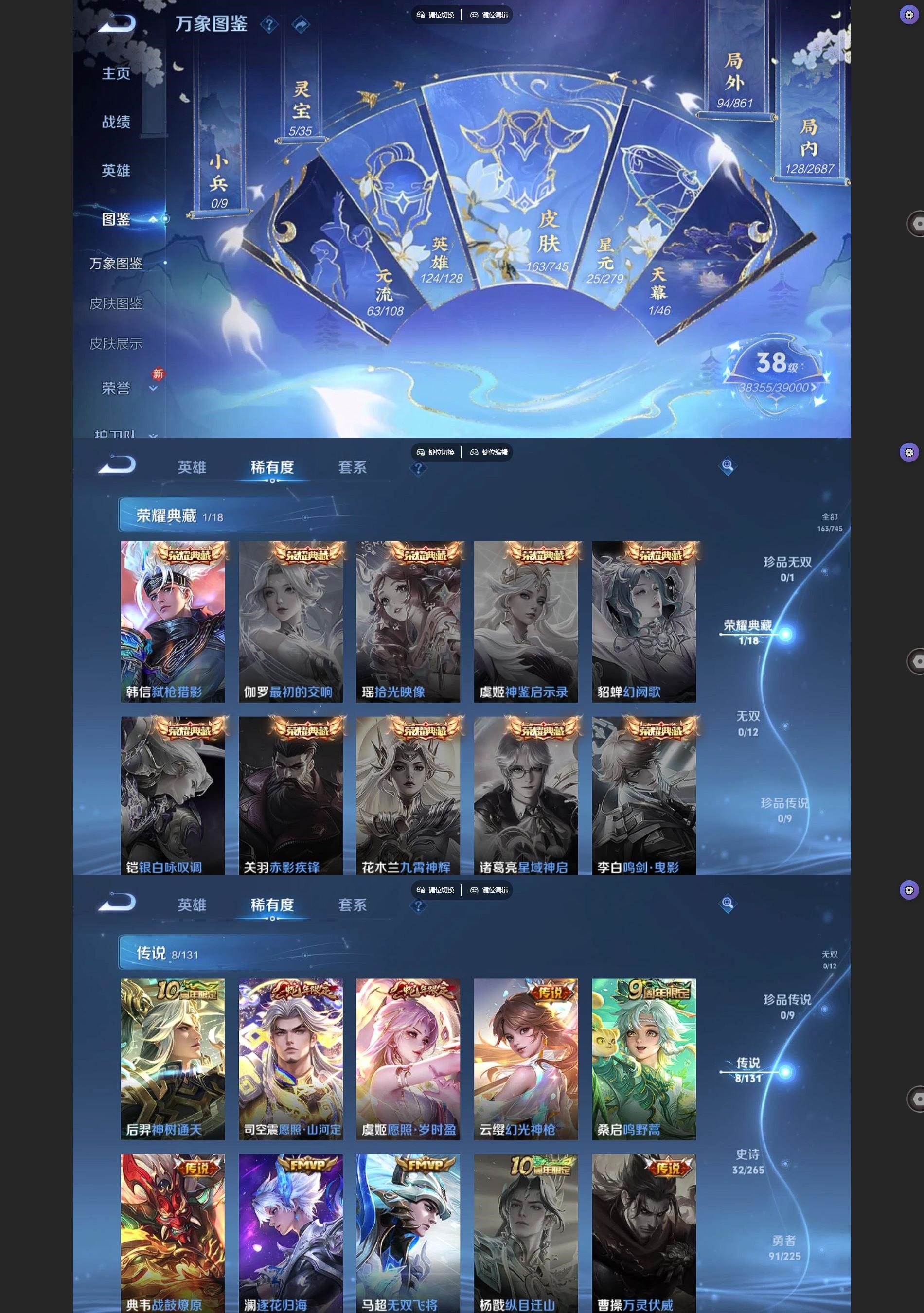 [王者荣耀]V61典藏8传说32史诗163皮肤永恒钻石III