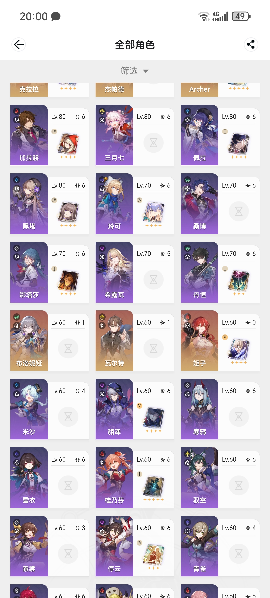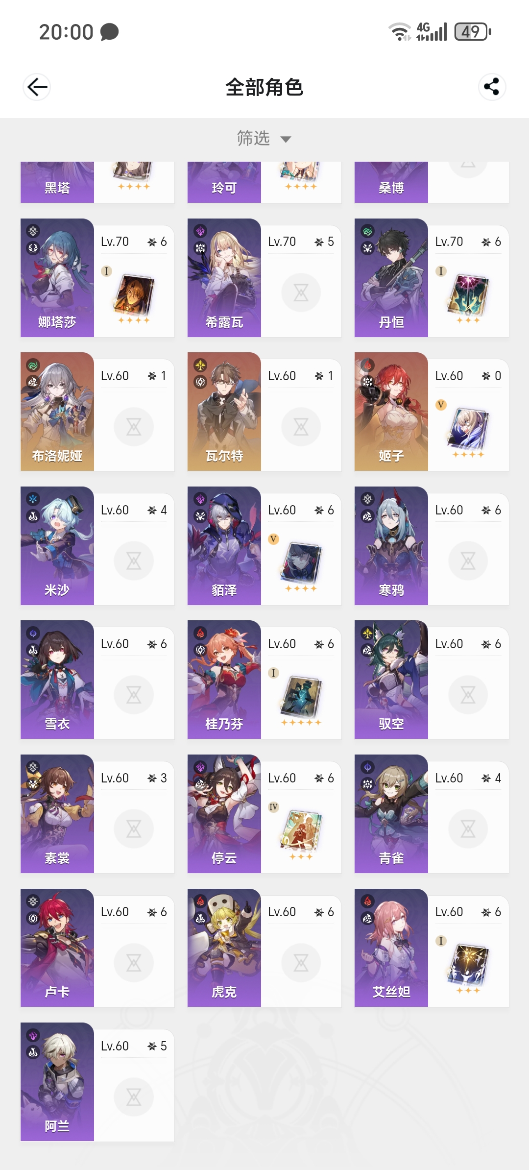 全同谐21白厄10盾丹10缇宝10阮梅01大黑塔10流萤仪器毕业三路深渊全通