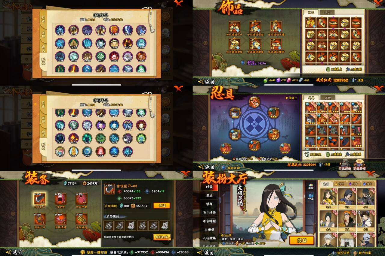 IOS/27S忍/44A忍/战力1211W/V12/区服542 【S忍者】宇智波止水「须佐能乎」,艾「忍界大战」,大筒木桃式,宇智波斑「秽土转生·解」,千手柱间「木叶创立」,宇智波佐助「永恒万花筒」,神秘面具男「红夜之刃」,春野樱「忍界大战」,大筒木金式,漩涡鸣人「九喇嘛连结」,迈特凯「S门」,宇智波带土「忍界大战」,自来也「舞之豪杰」,旗木卡卡西「须佐能乎