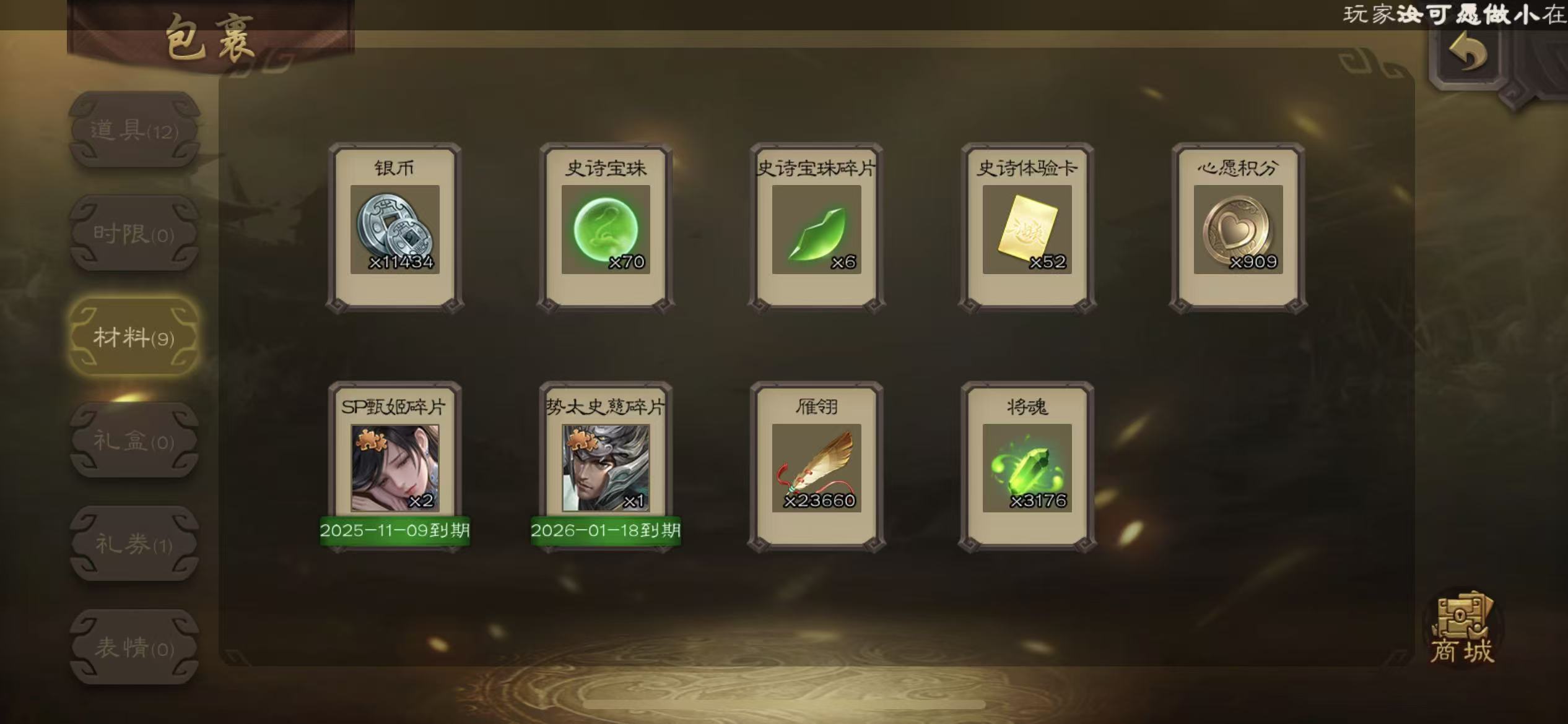 士兵70宝珠3100将魂2.3万羽毛三卡