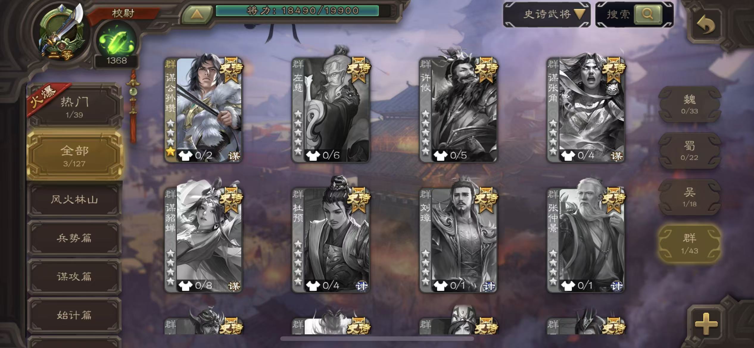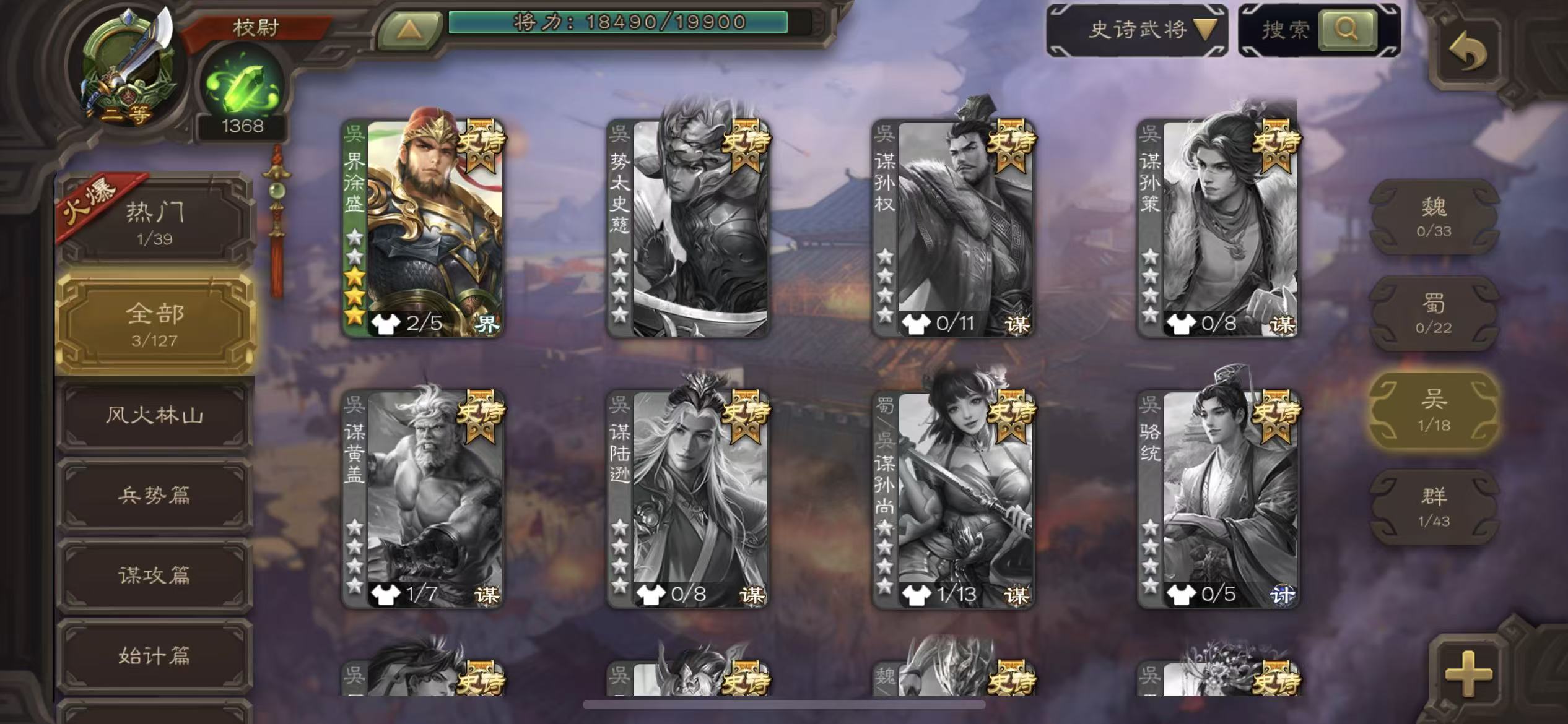 史诗武将数量: