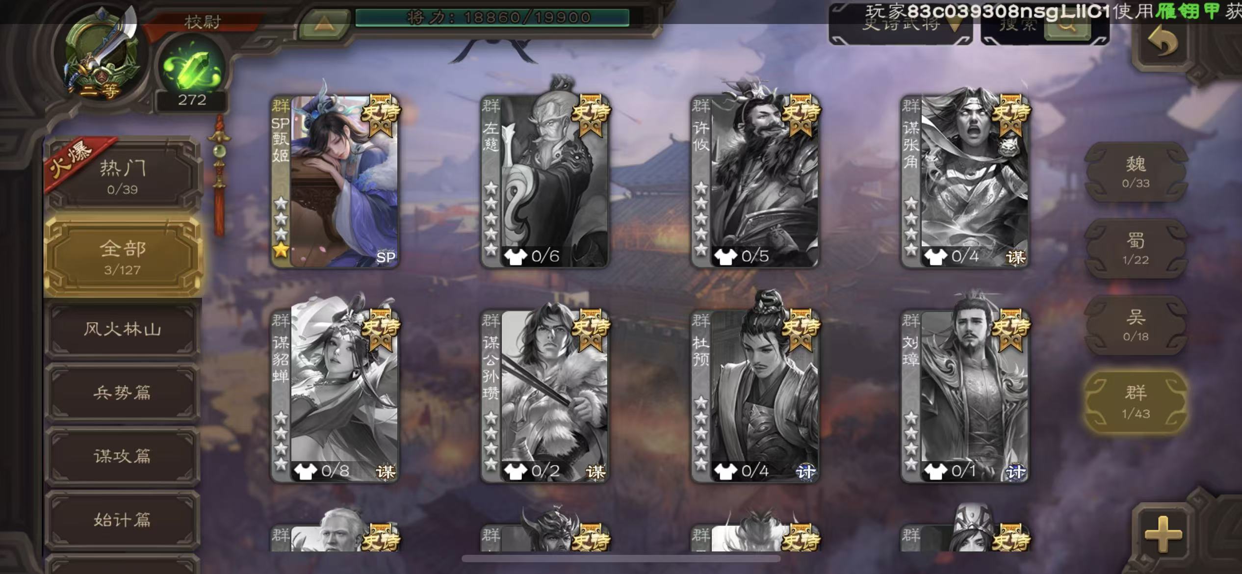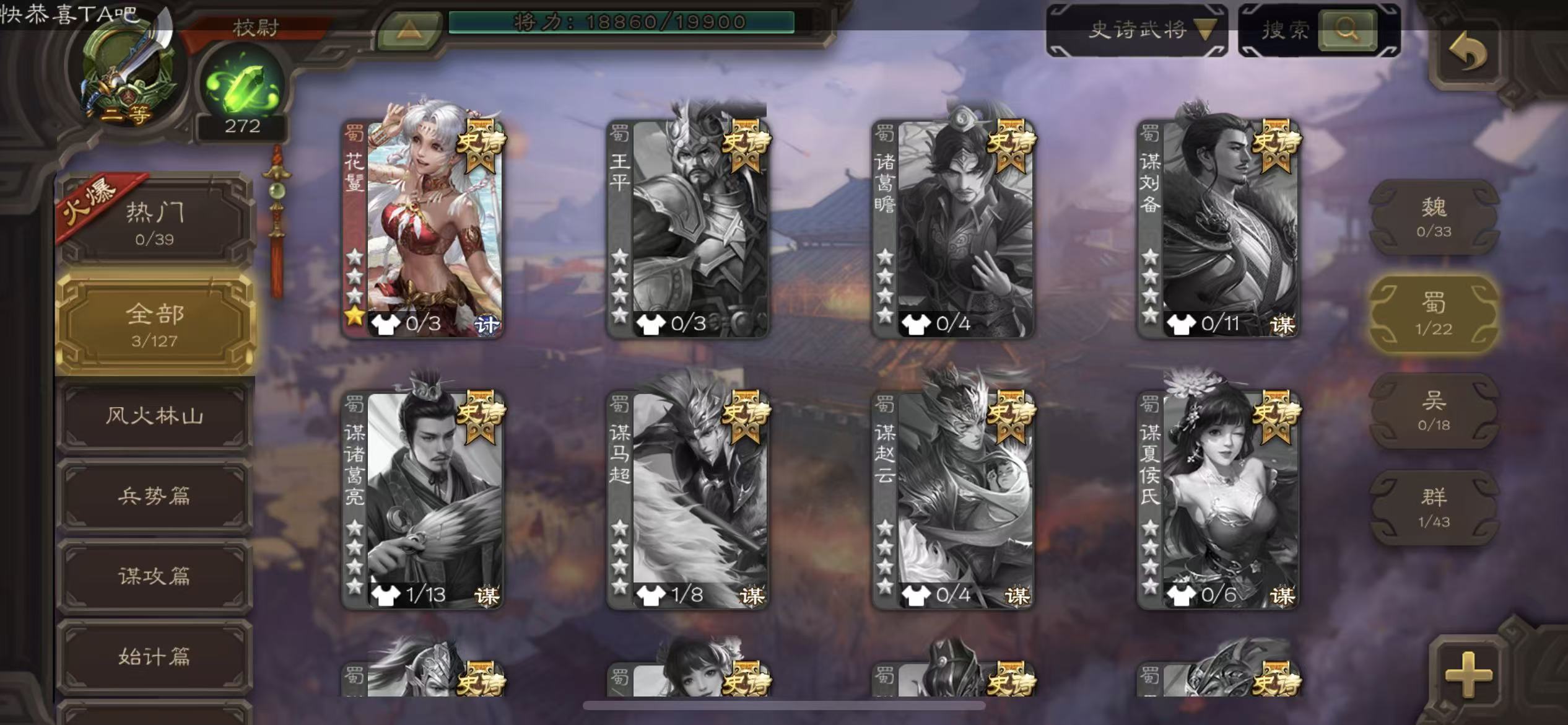 史诗武将数量: