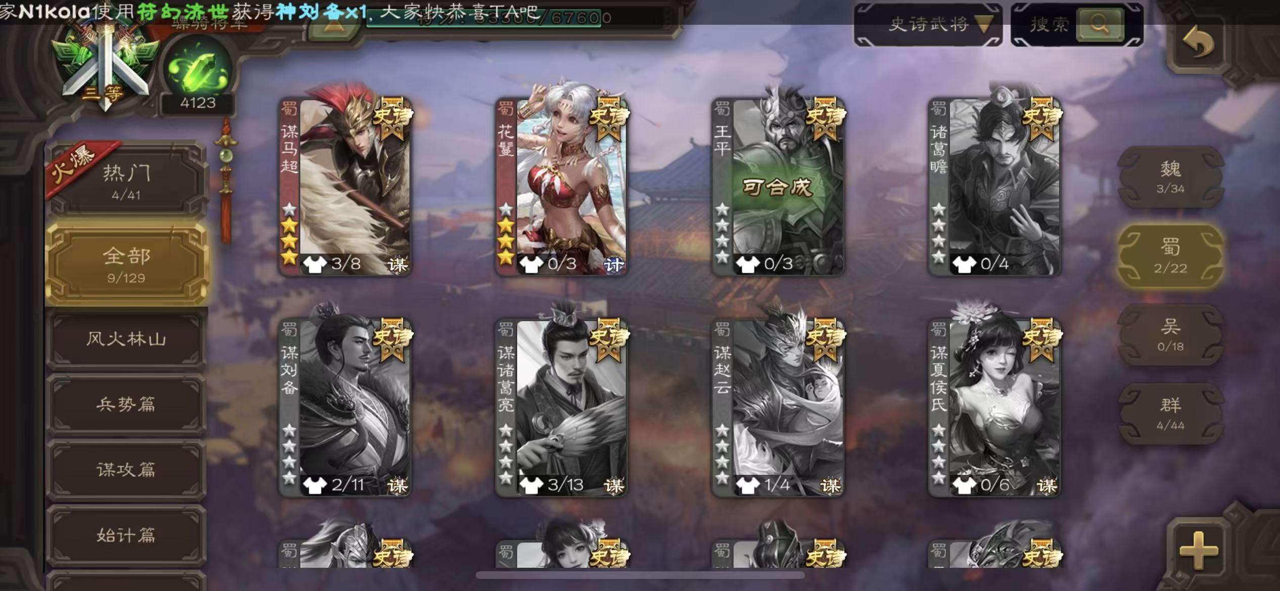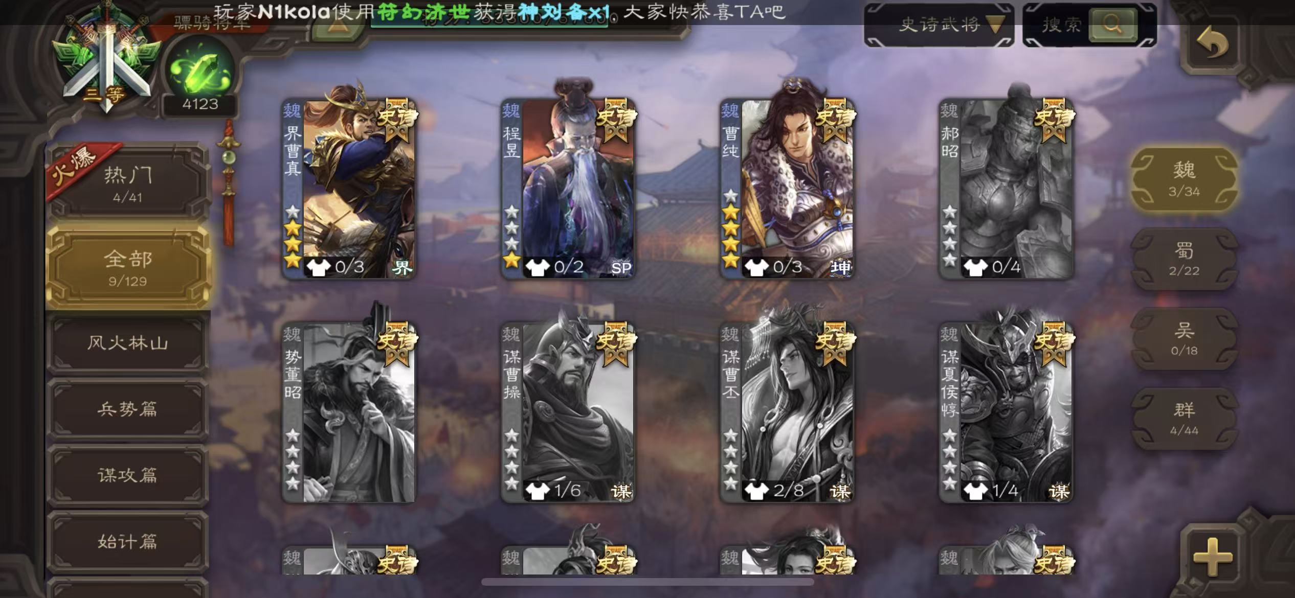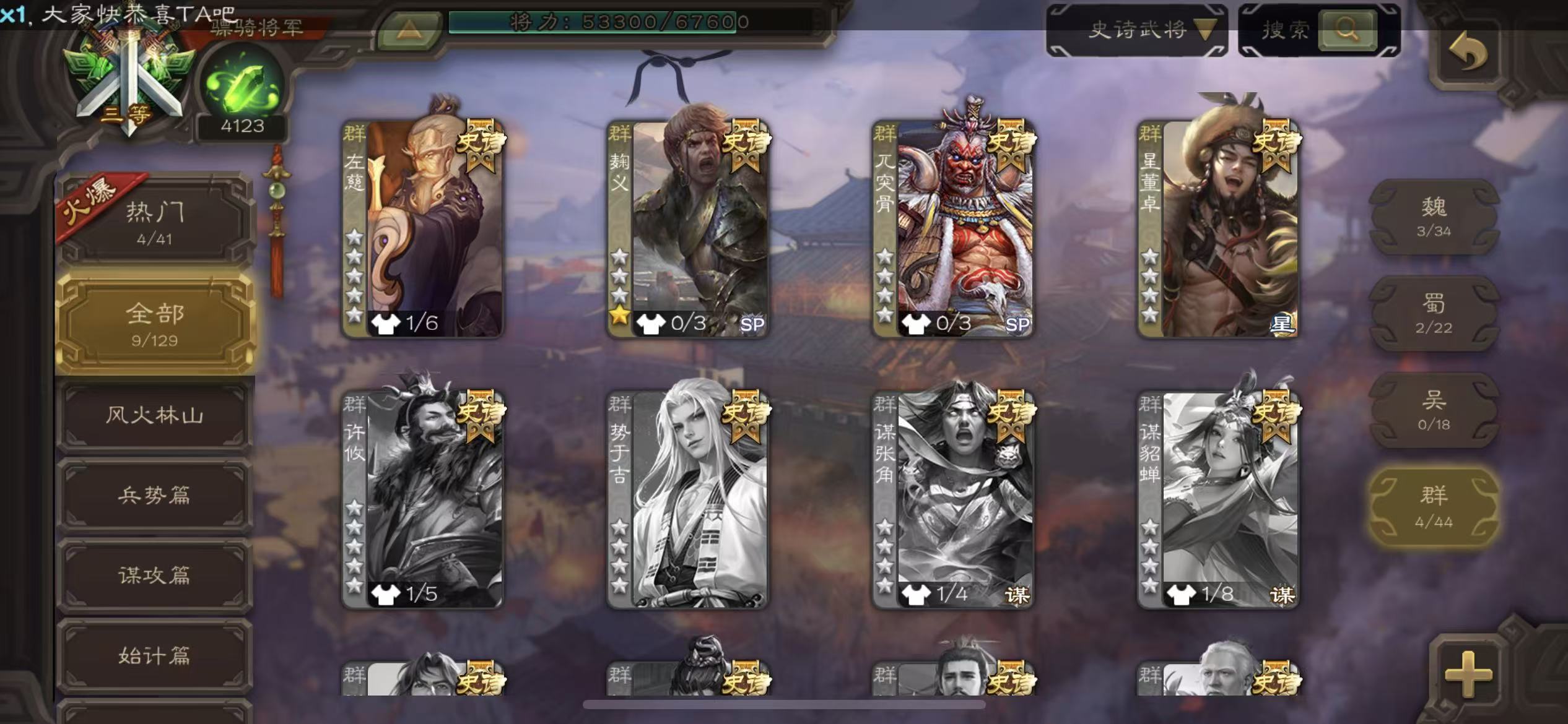 史诗武将数量: