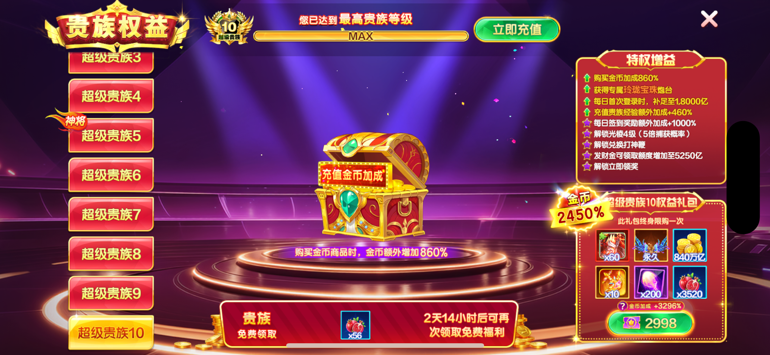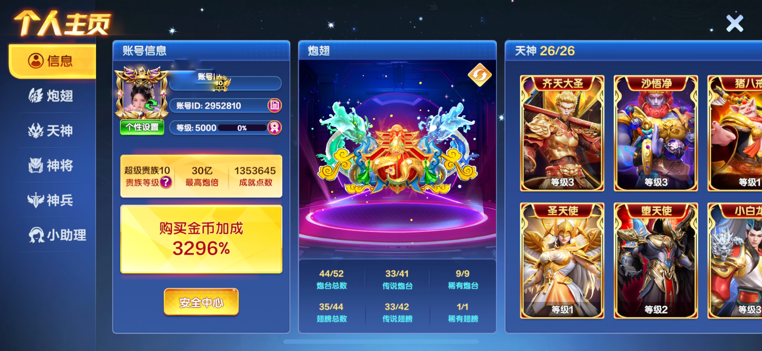 捕鱼大咖顶级文字S10,净加成3296,全皮肤全羁绊满炮台