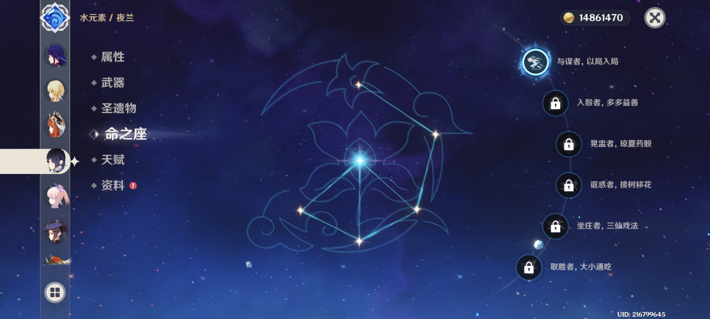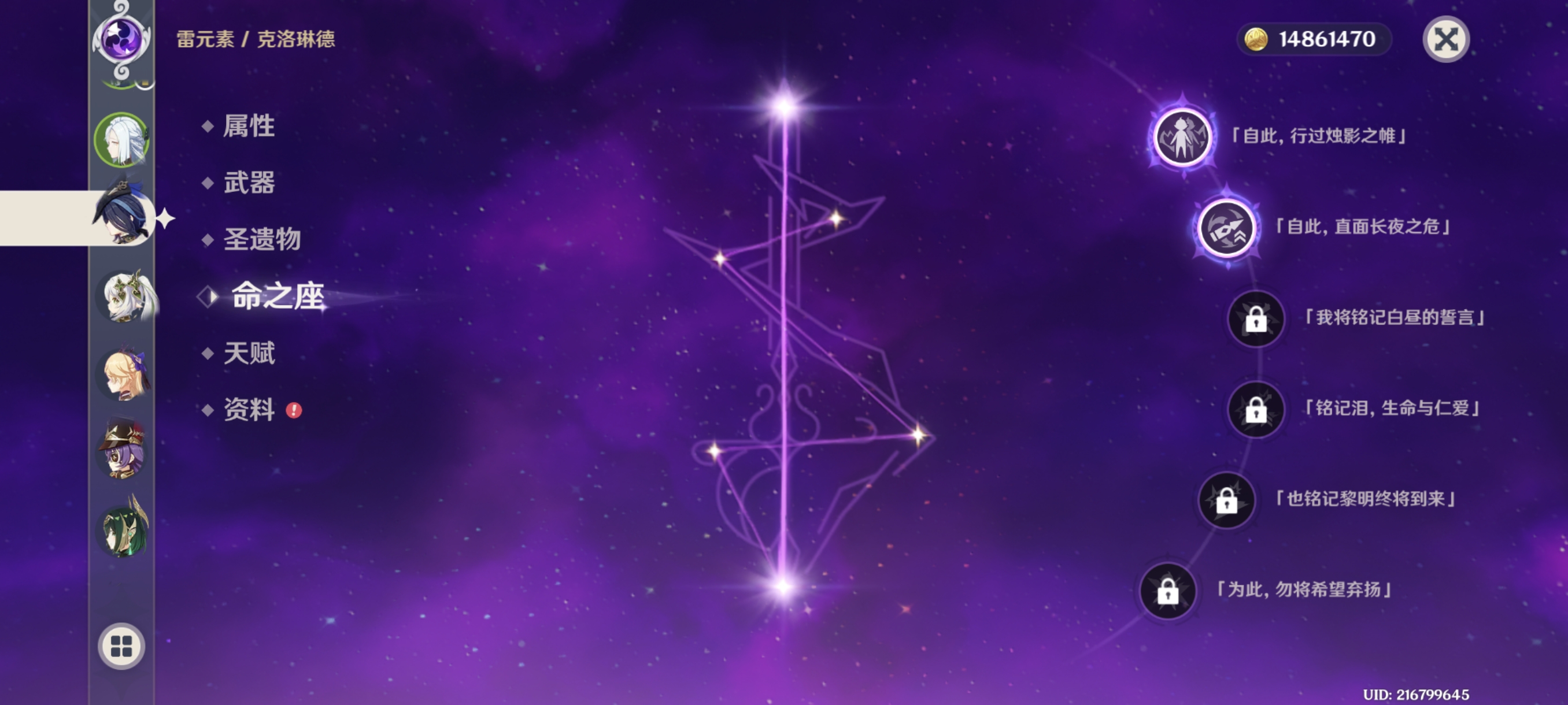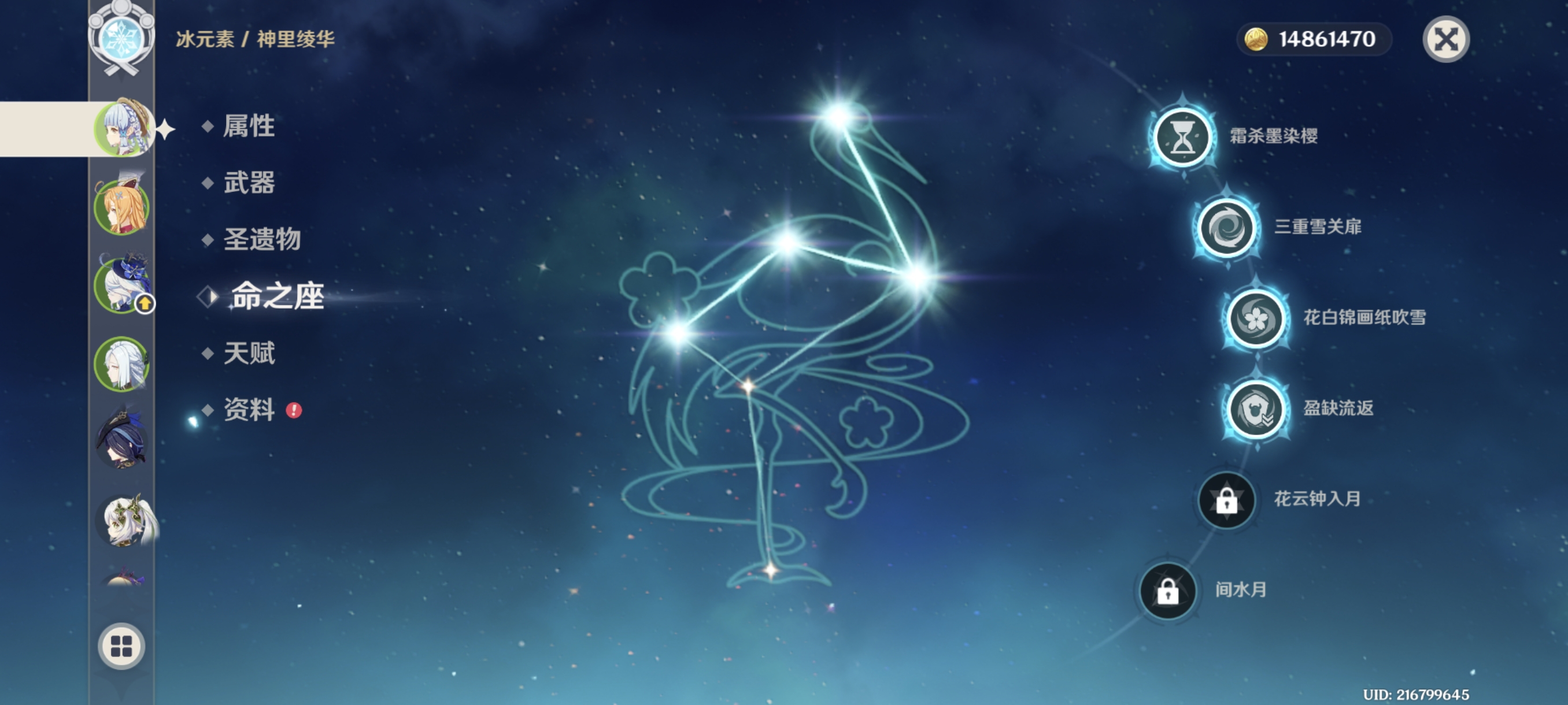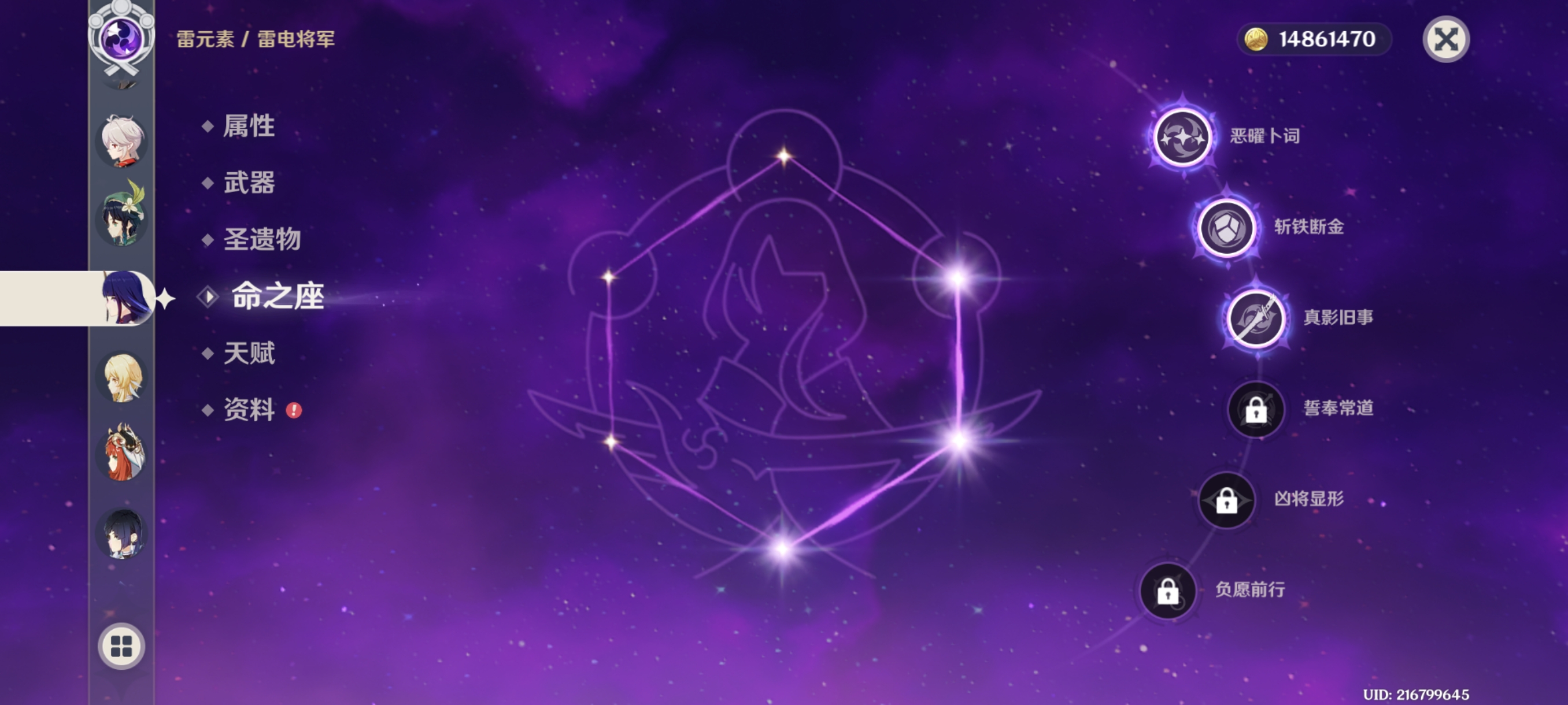 50多金,三无账号,无任何绑定,奈芙尔0+1,还有其他高命座老角色,三命雷神,四命凝华等
