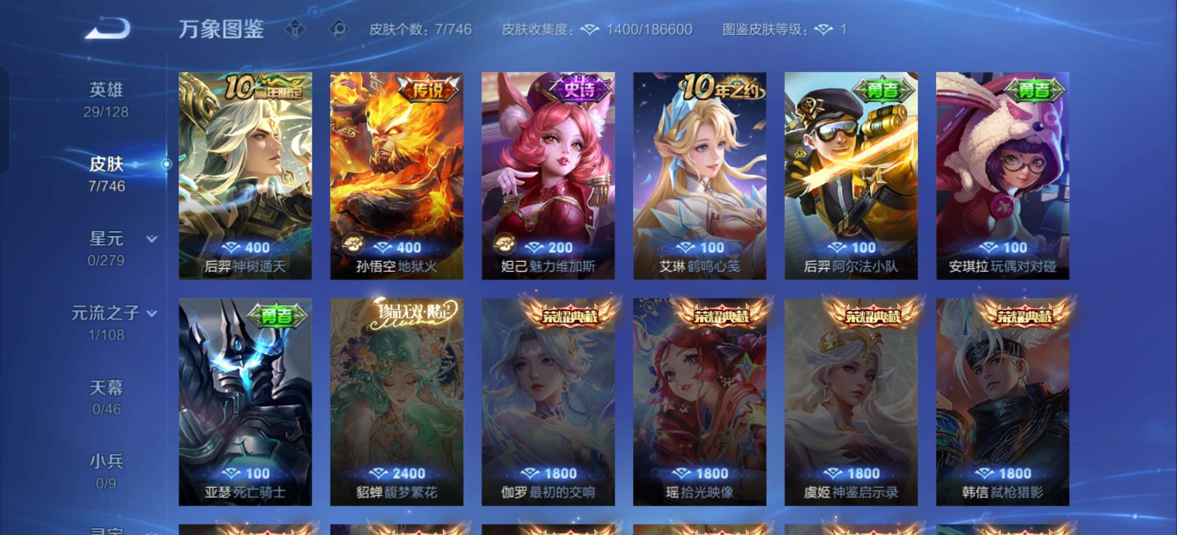 两个传说,孙悟空地狱火,后羿神树通天,117个皮肤碎片还可以自己再兑换个史诗皮肤