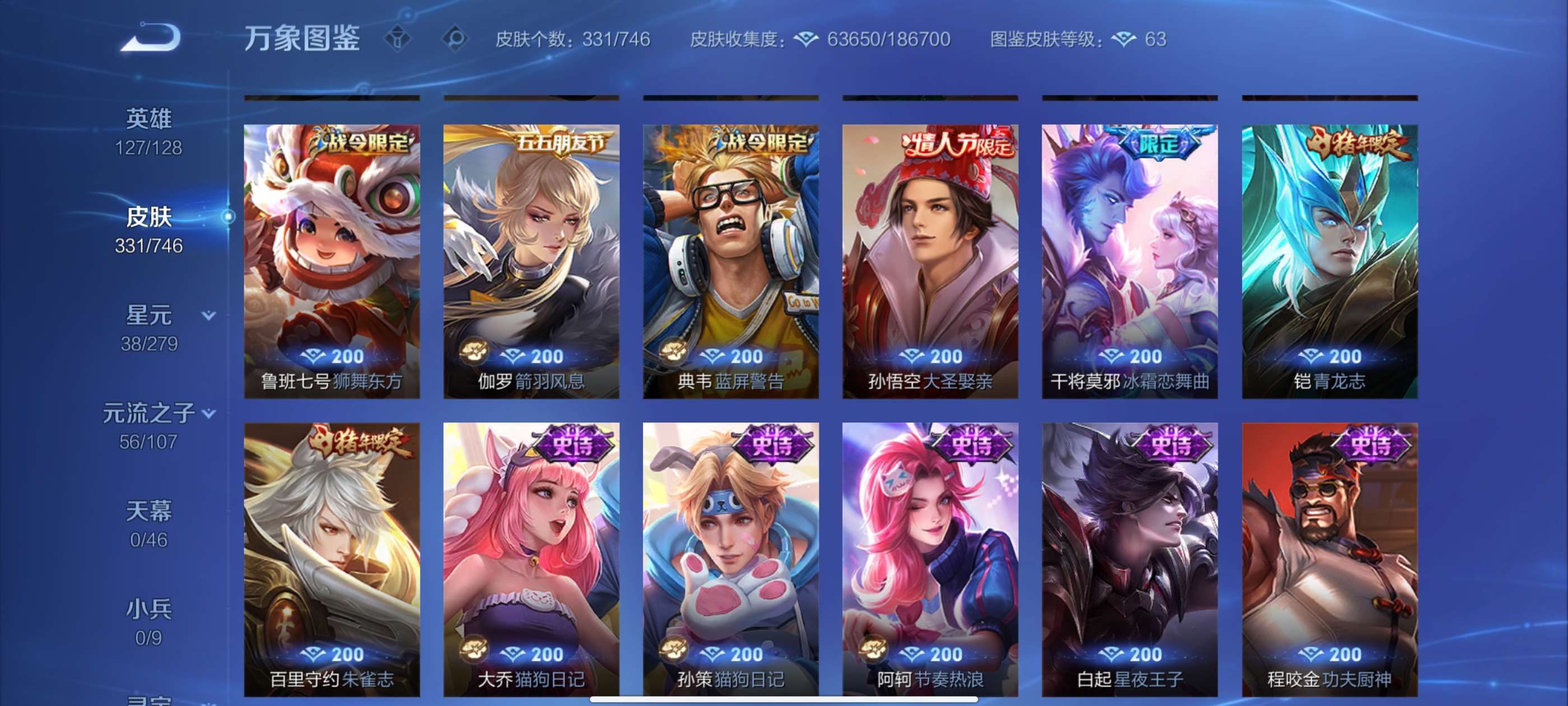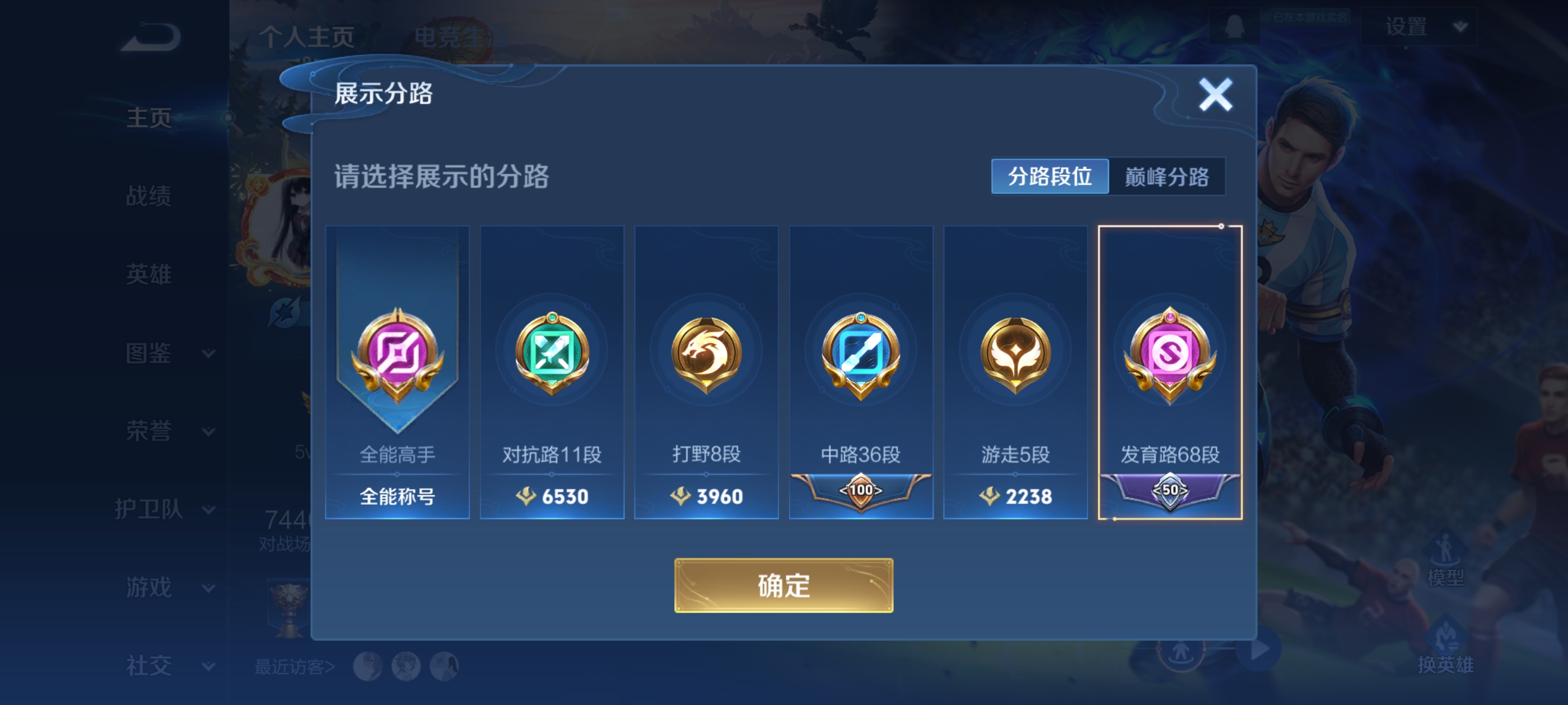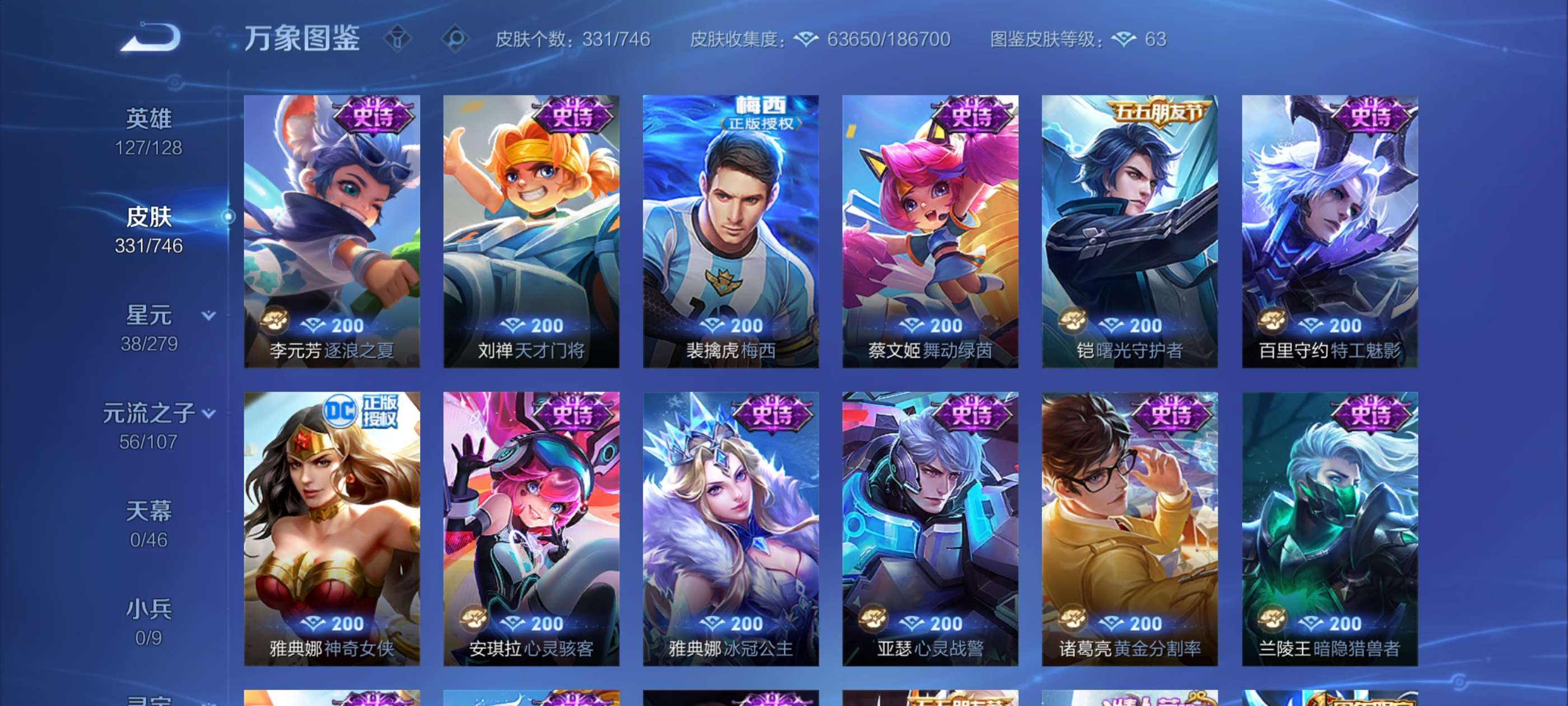 王者荣耀【安卓QQ】68段发育路 1典藏4无双3珍品47传说 3个万战 梅西 神奇女侠连体火影11s