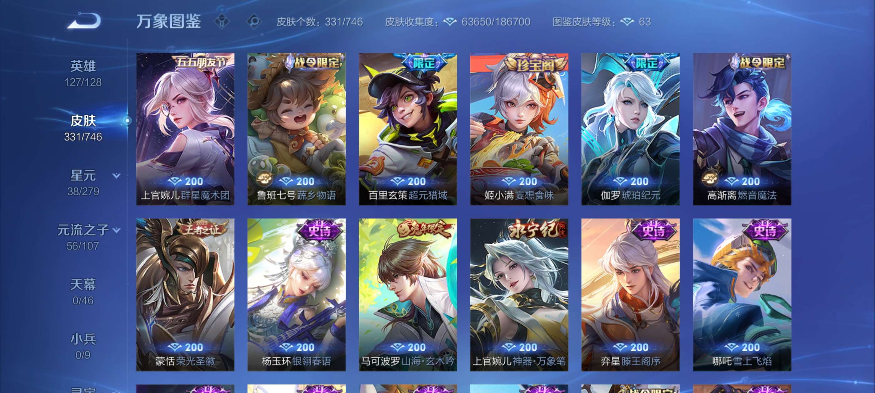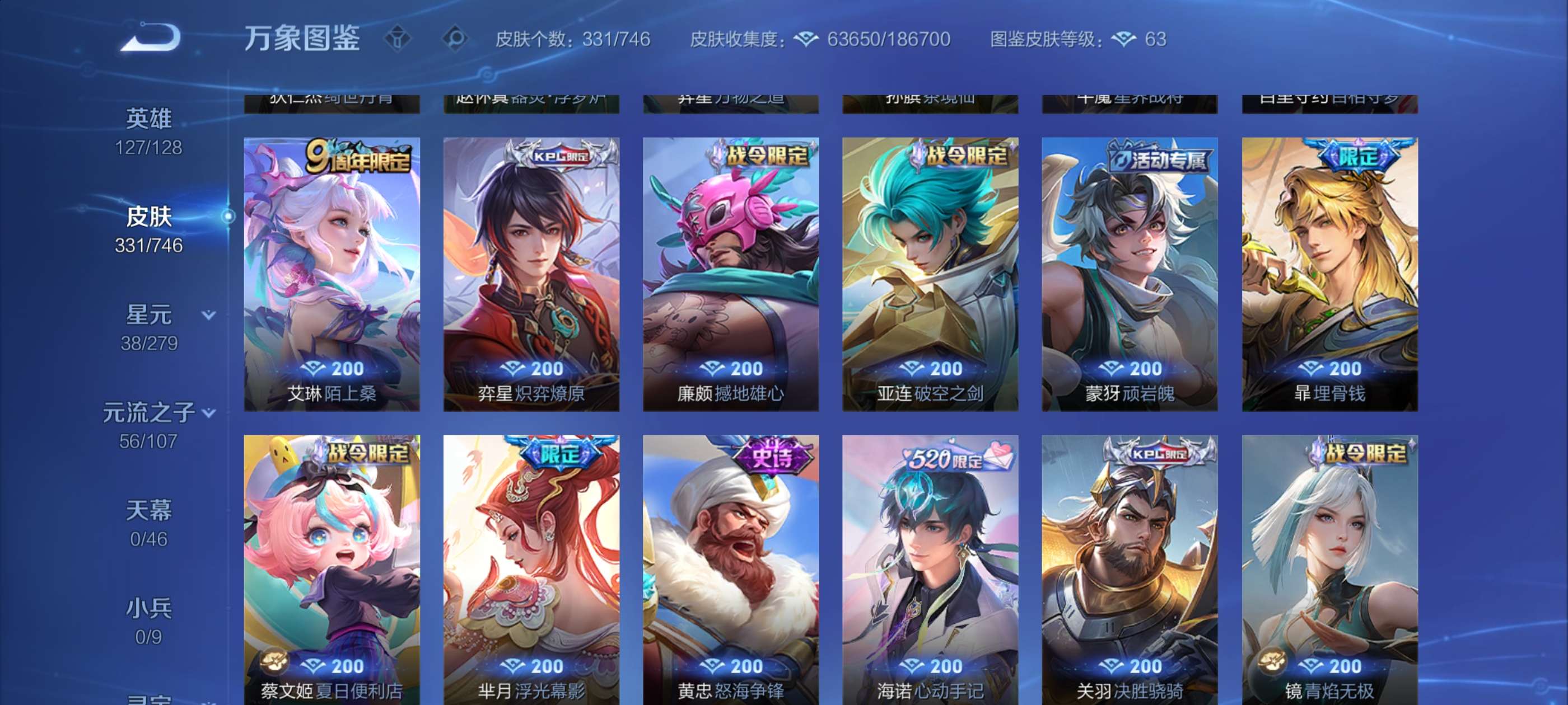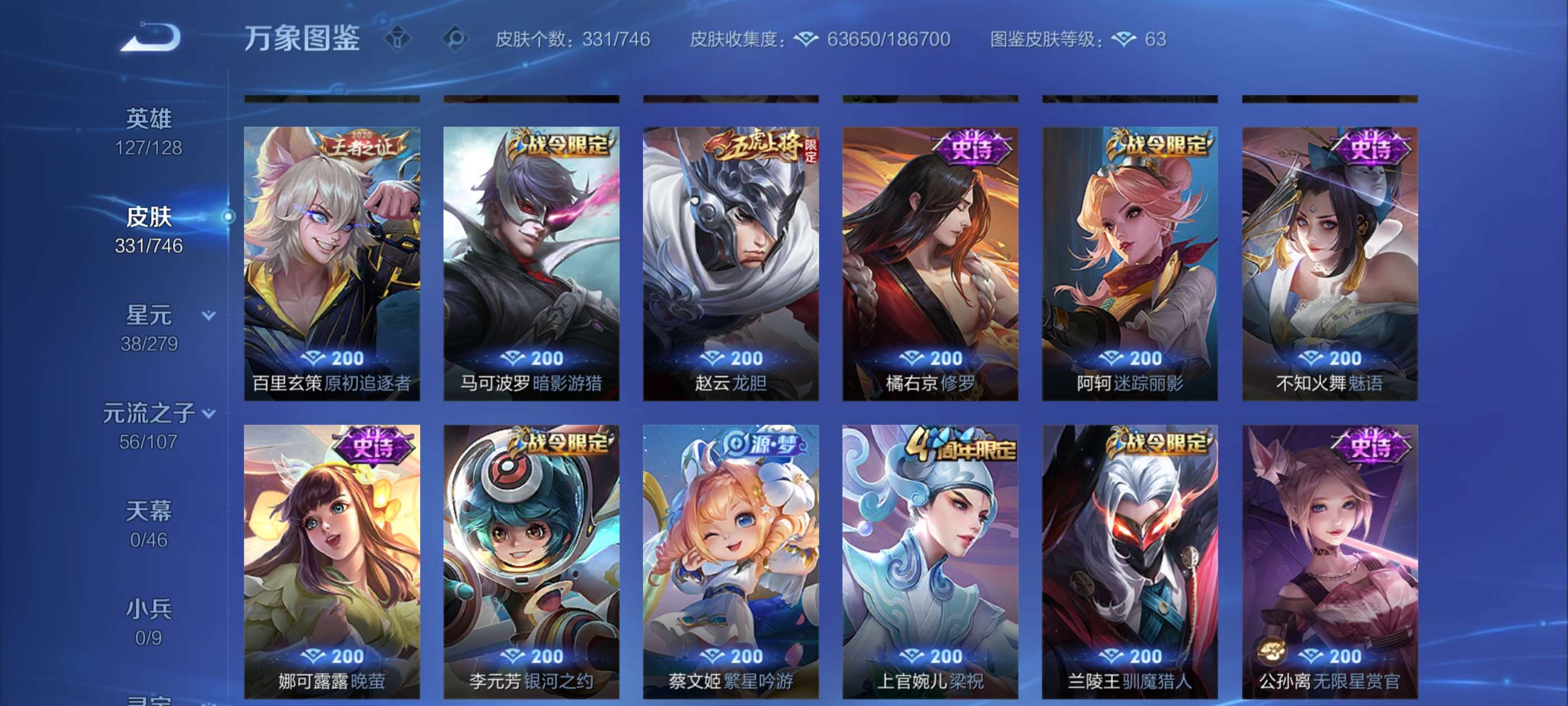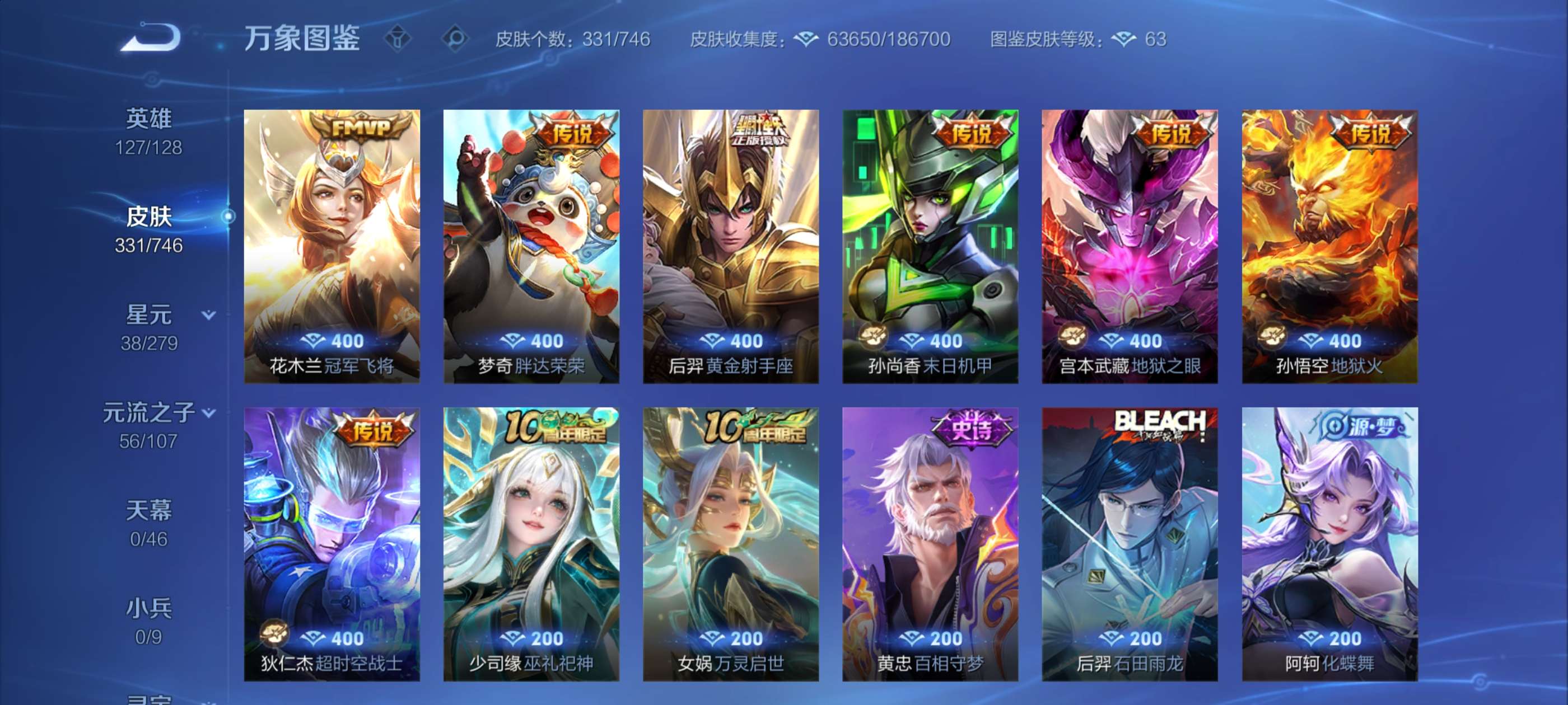 王者荣耀【安卓QQ】68段发育路 1典藏4无双3珍品47传说 3个万战 梅西 神奇女侠连体火影11s