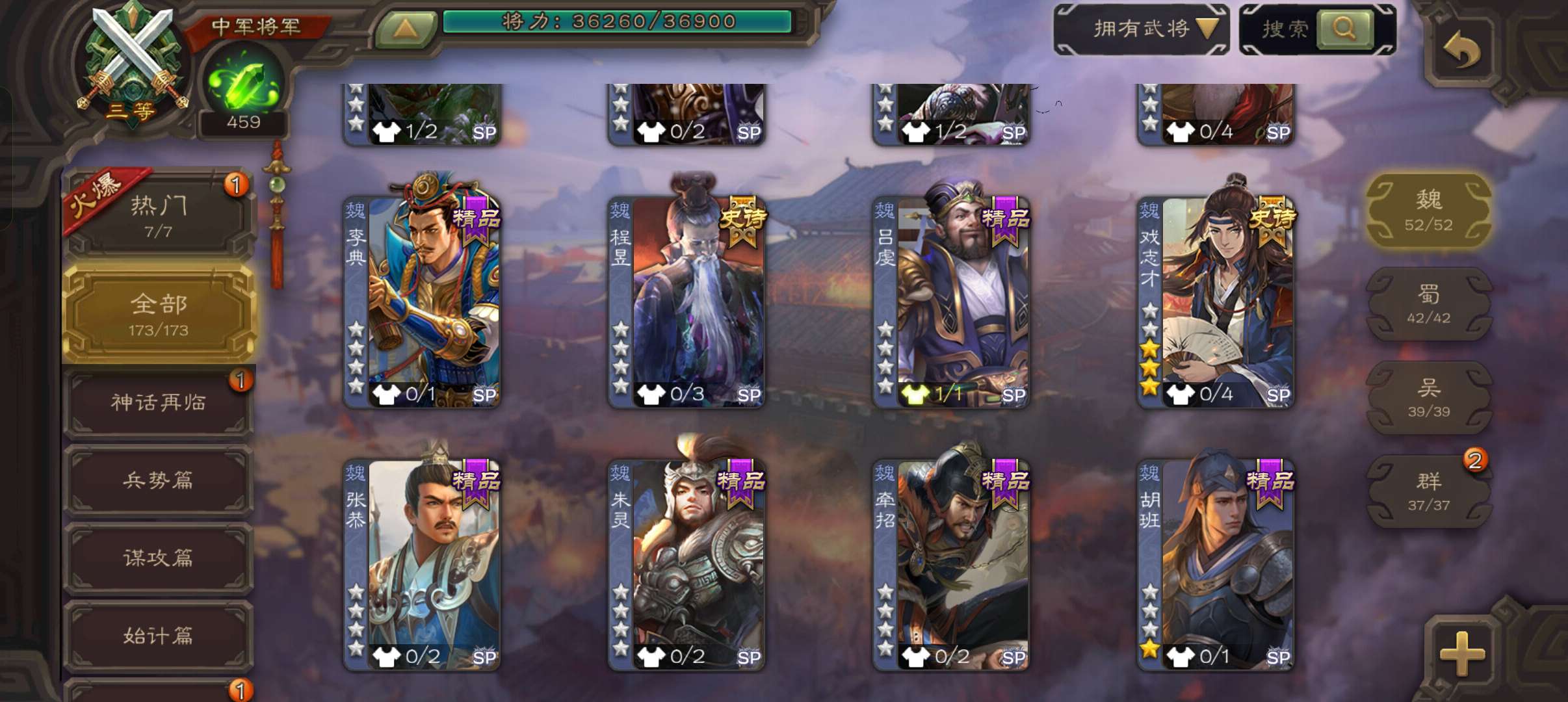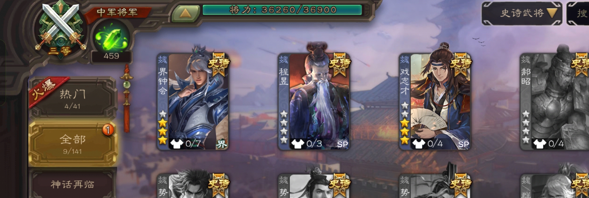 9史诗中军,8万4羽毛,回廊动白马神赵云神吕布戏志才界钟会沙摩柯谋赵云动左慈程昱,神吕蒙动孙茹