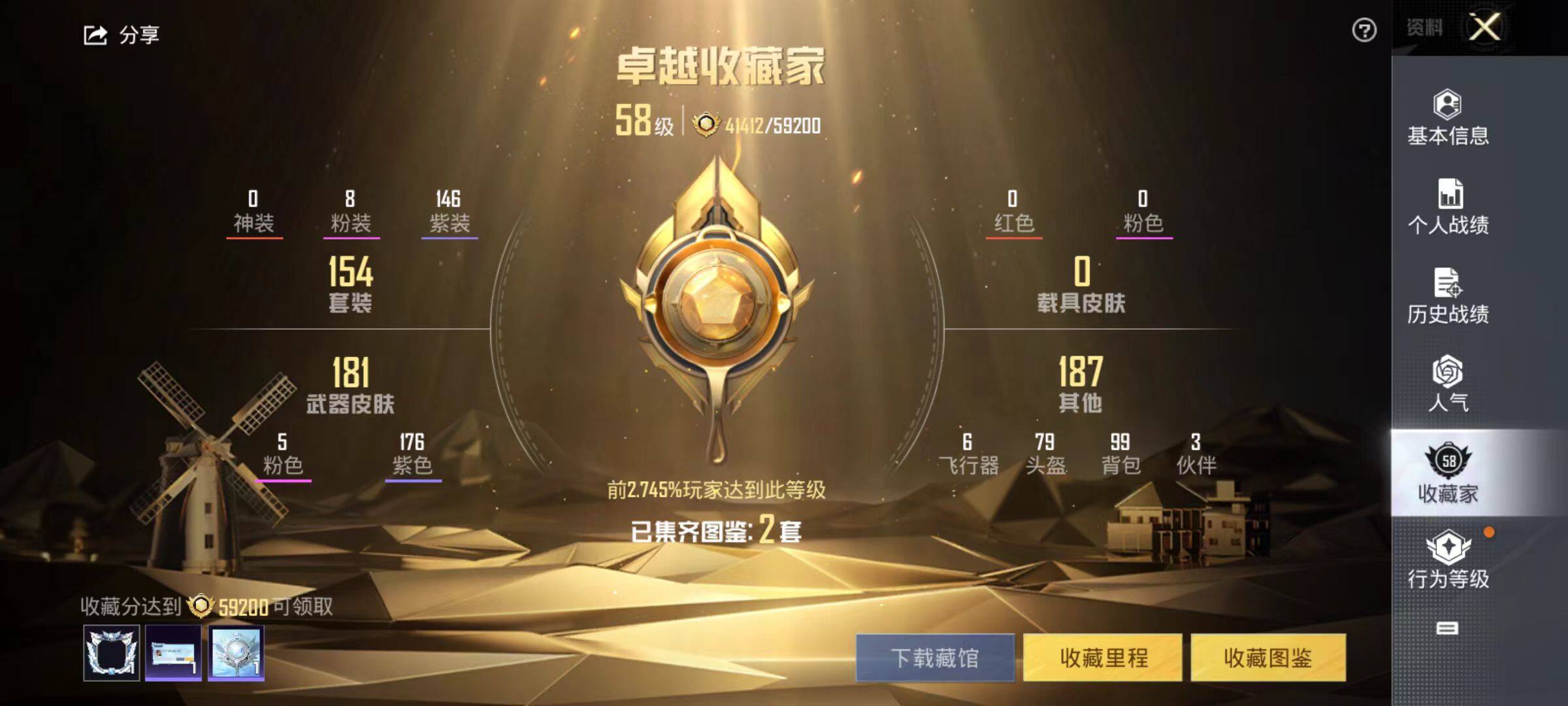 安卓 手Q-8粉装-5特效枪-0载具-0粉色飞行器-55903热力值-4王牌印记-154套装-197枪皮