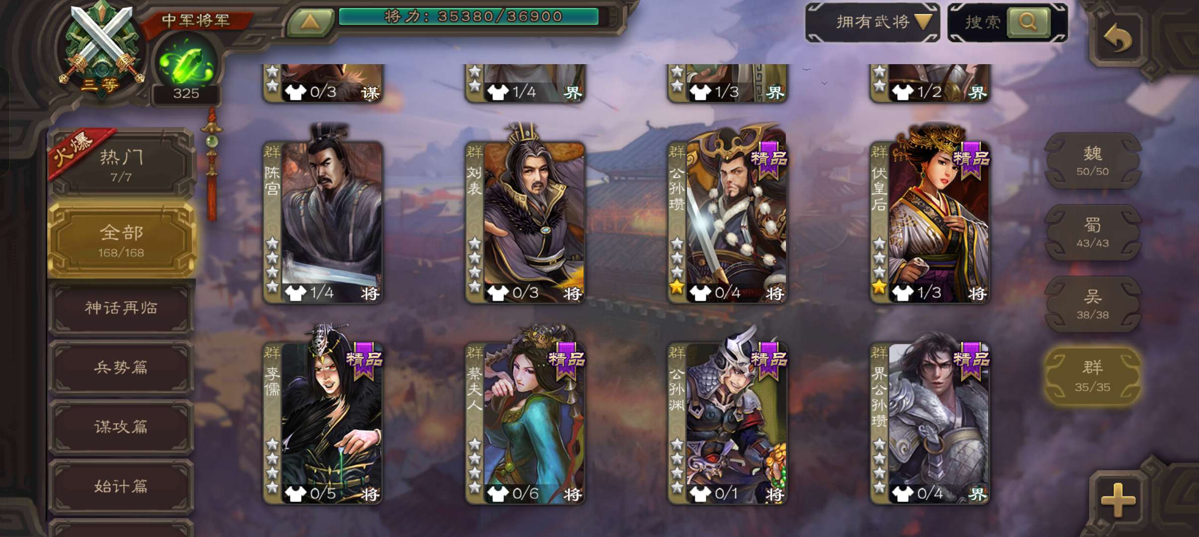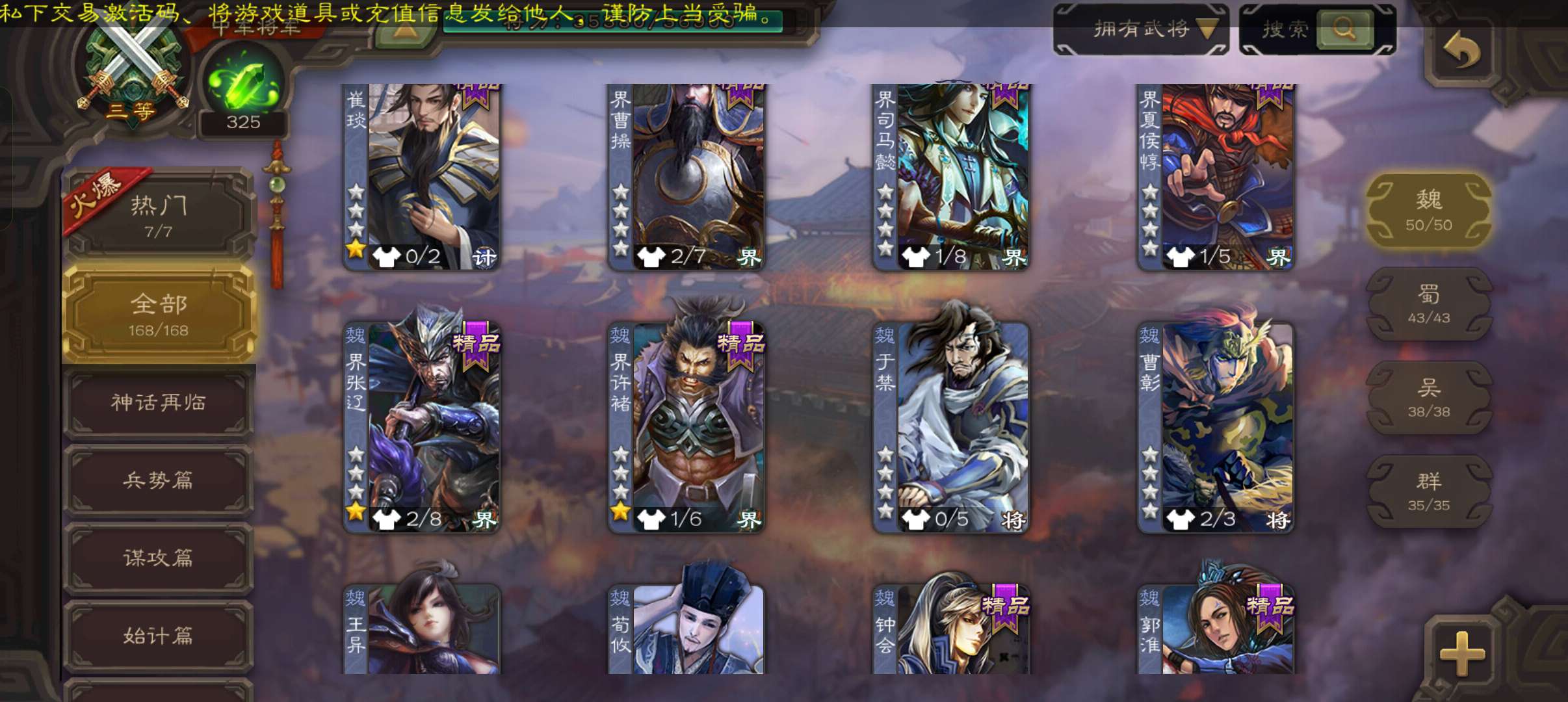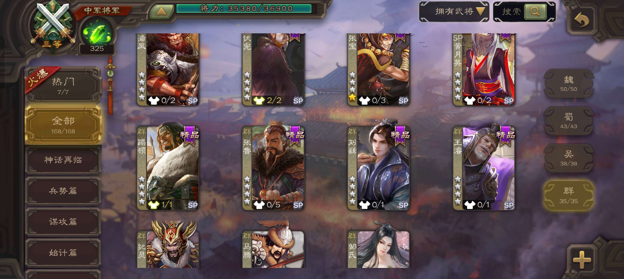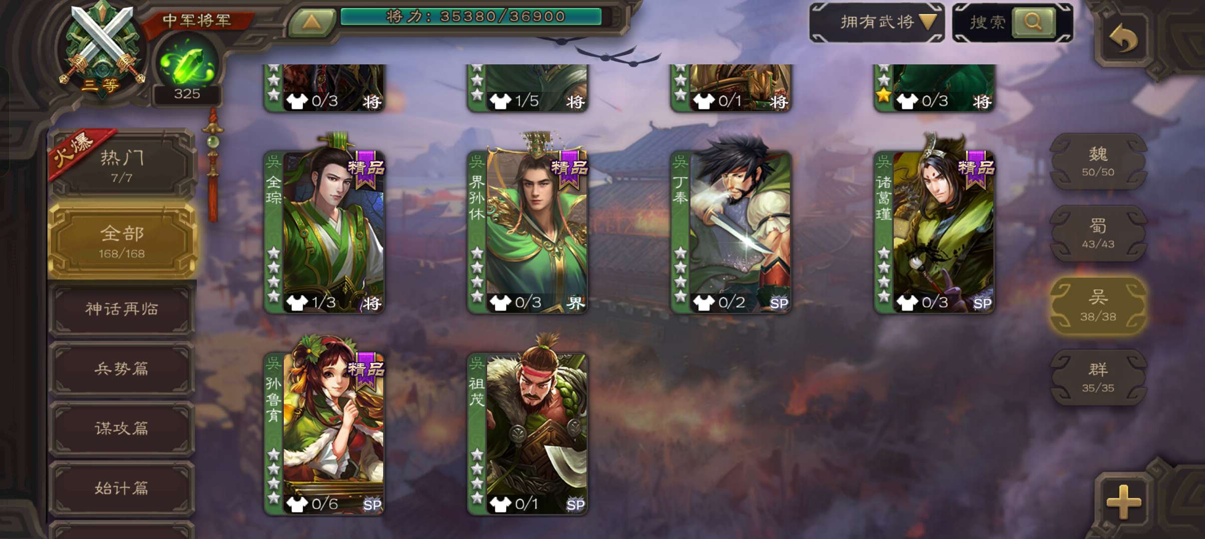 8史诗中军,7.5万豆,真动态神吕布戏志才界钟会沙摩柯谋赵云界于禁左慈程昱,神吕蒙谋高顺168将