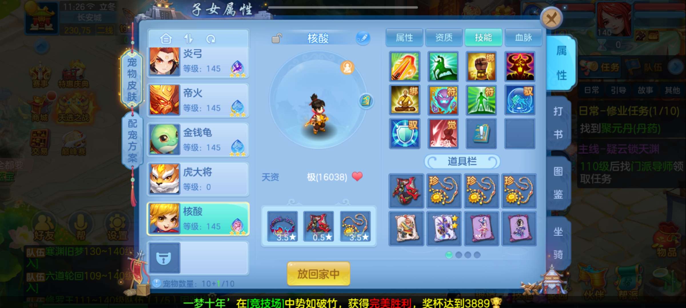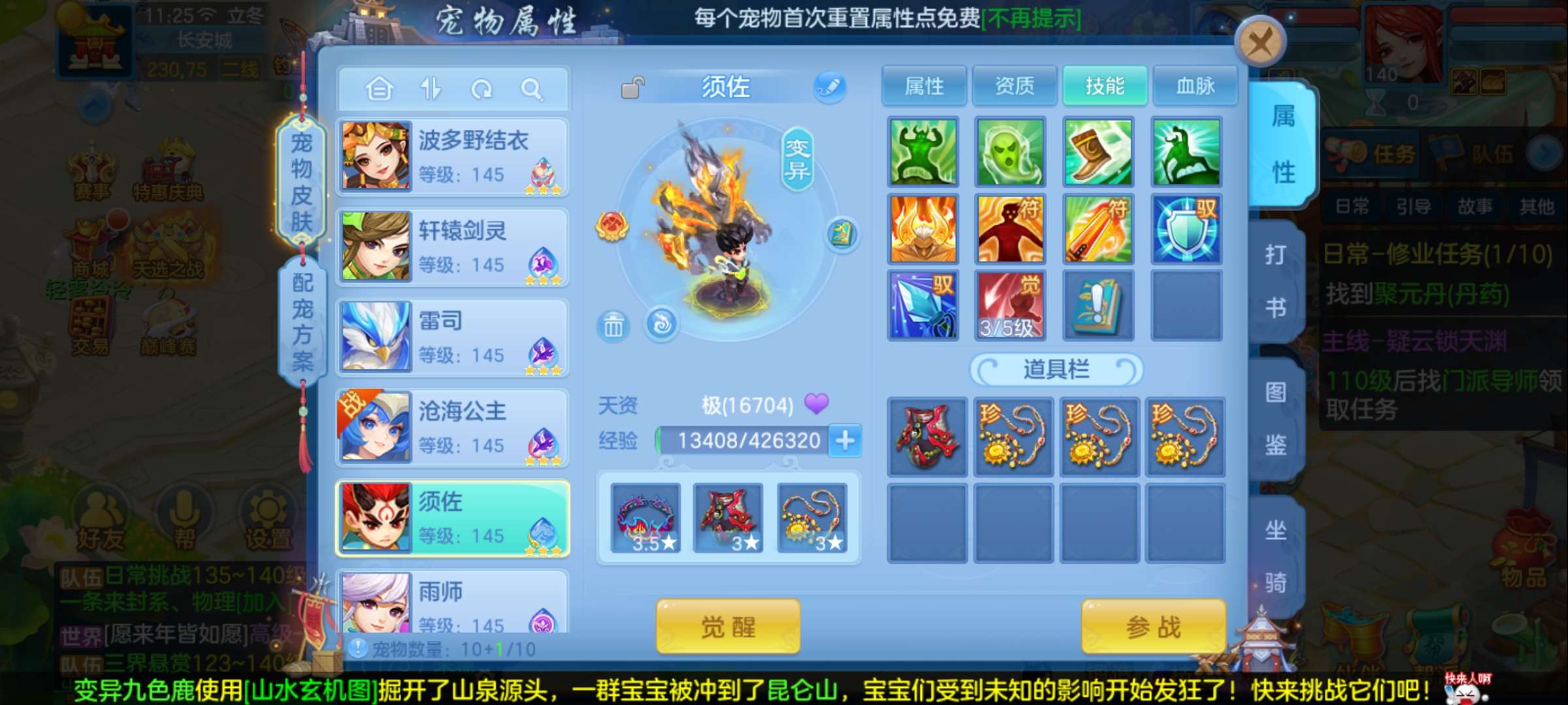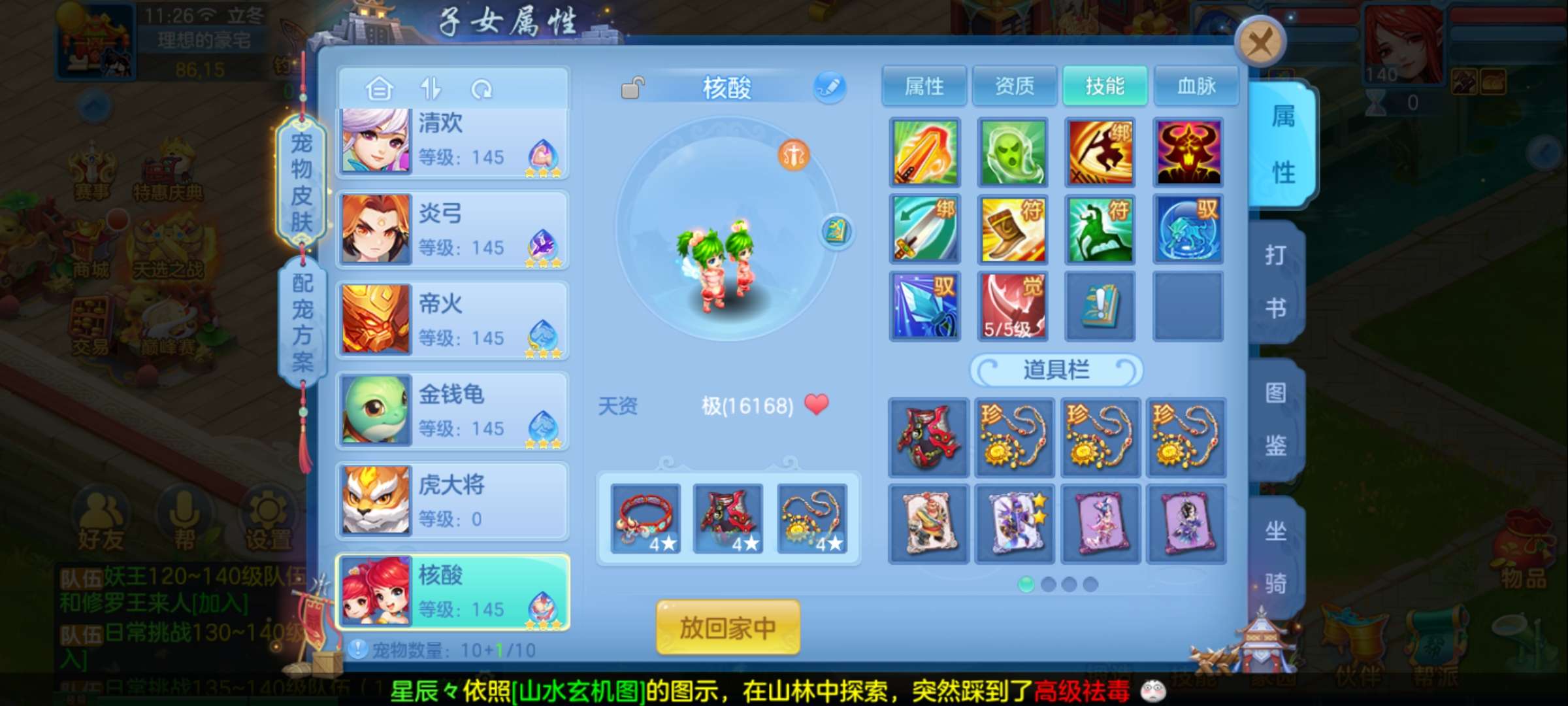 140冥月宝宝装备齐全,可转任何门派。生二宝没空玩了,望善待。