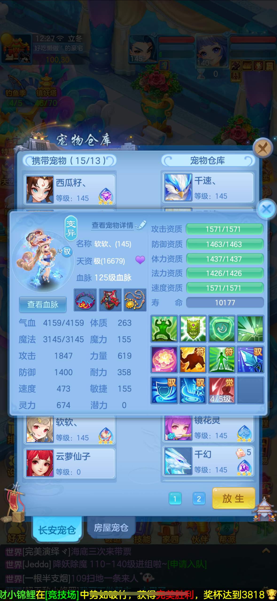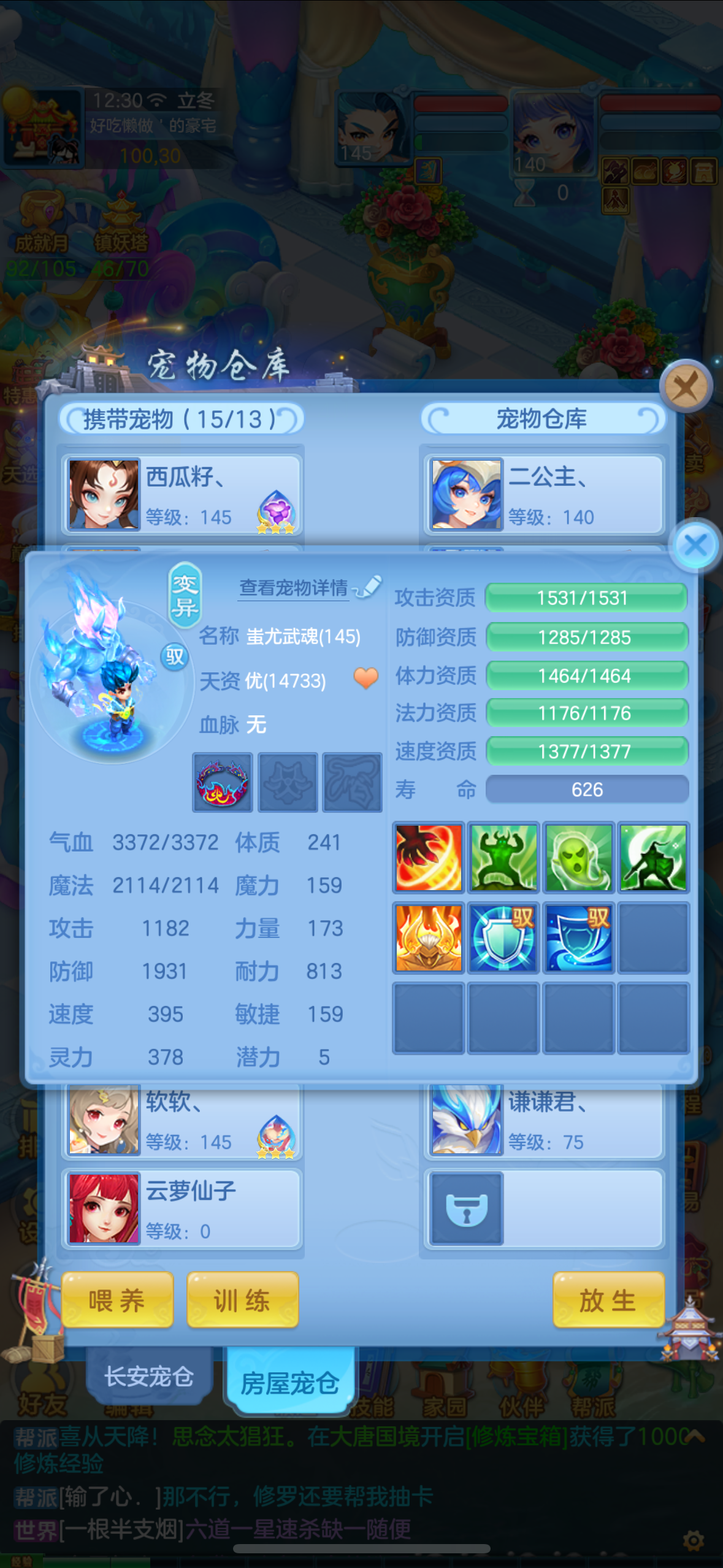 幻唐志:逍遥外传(神武4)【苹果官方】140龙宫5件14段带速度腰带、36个满技能宝宝、底子全满