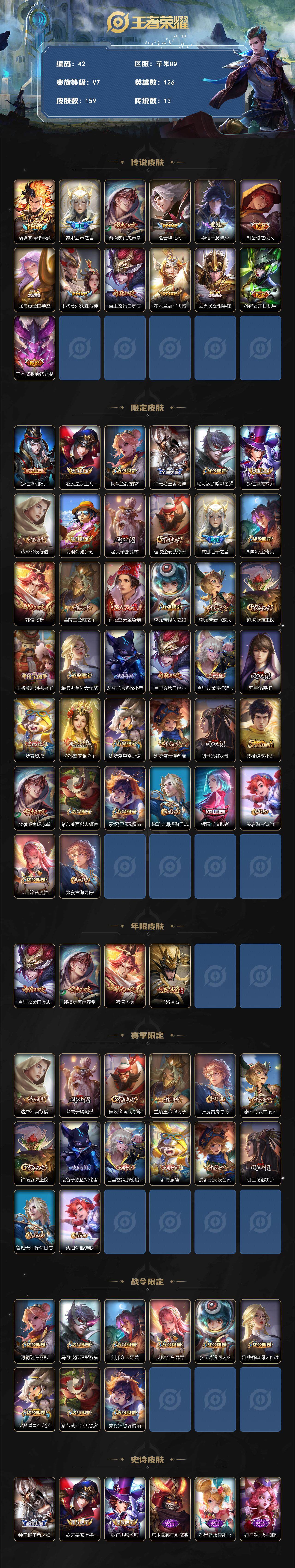 营地账号:436329545/1590416 万战金标百里玄策 王者荣耀账号 苹果Q-V7-最强王者段位-126英雄-159皮肤-0典藏-0珍品无双-0无双-0珍品传说-13传说-44史诗