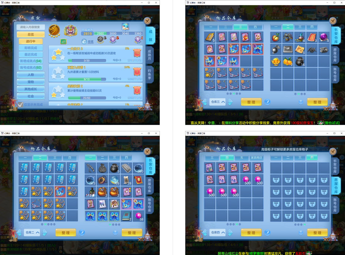 1件13段5件12段,三红腰带,宝宝完全够用,1.7石头人,账号还有积分,60万银子,2819成就