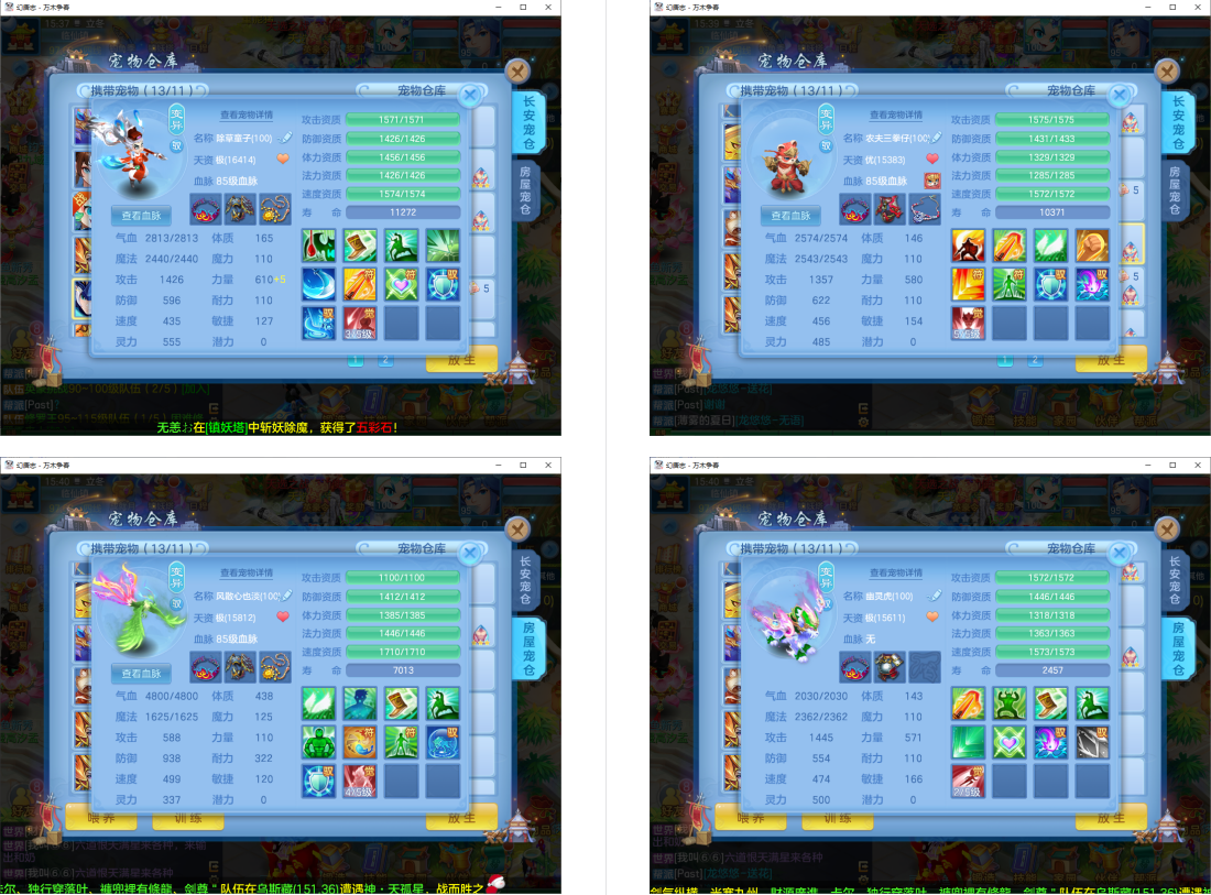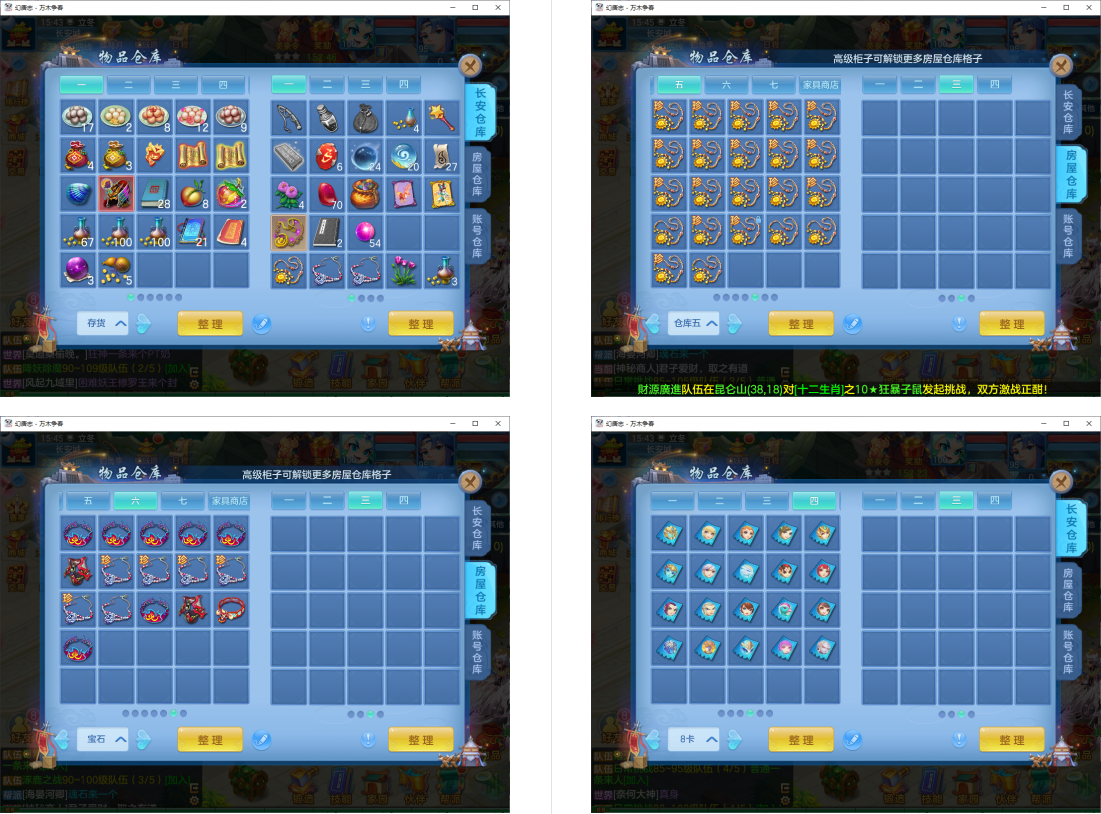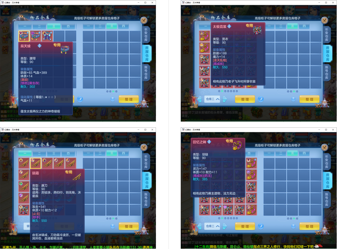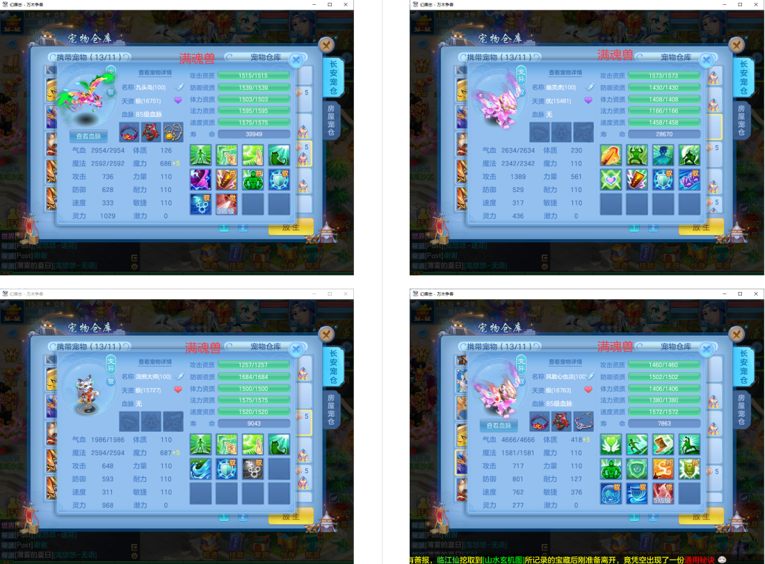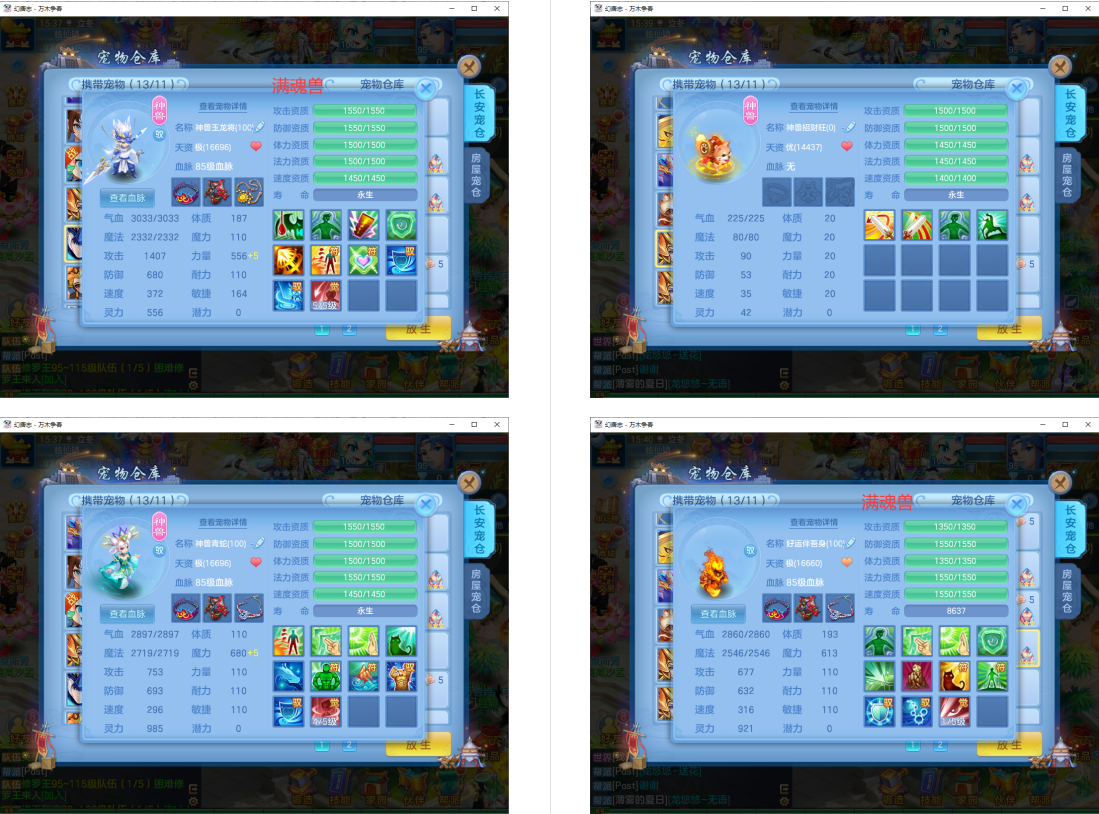 (95龙宫/男)万木争春/关联已生效★无双重★6件12段1件11段1件9段,神器腰带,三红项链三红腰带,仓库各种装备,三神兽(内丹蛇+满魂内丹玉龙+宠物猫),9个6多特殊5,19红8黄9个专属,7个宝宝皮肤,高级坐骑,75万银子,仓库有很多资源装备,3448成就