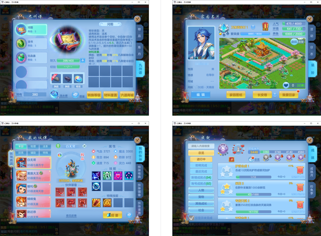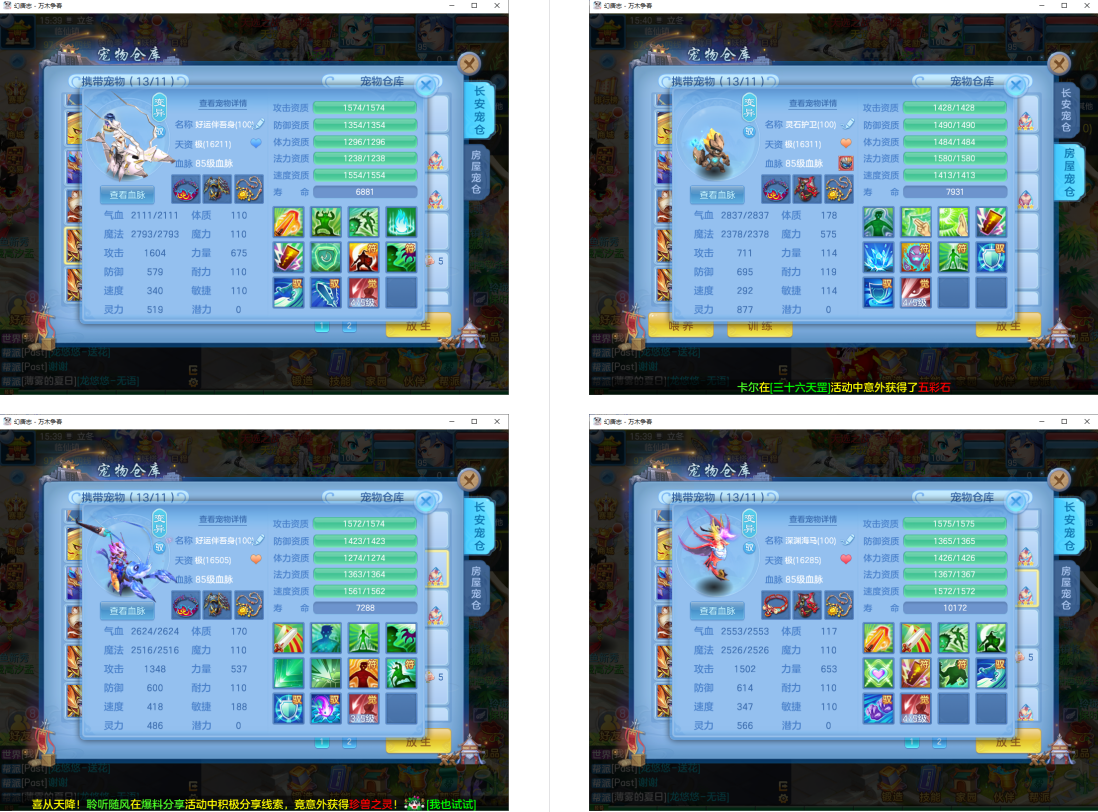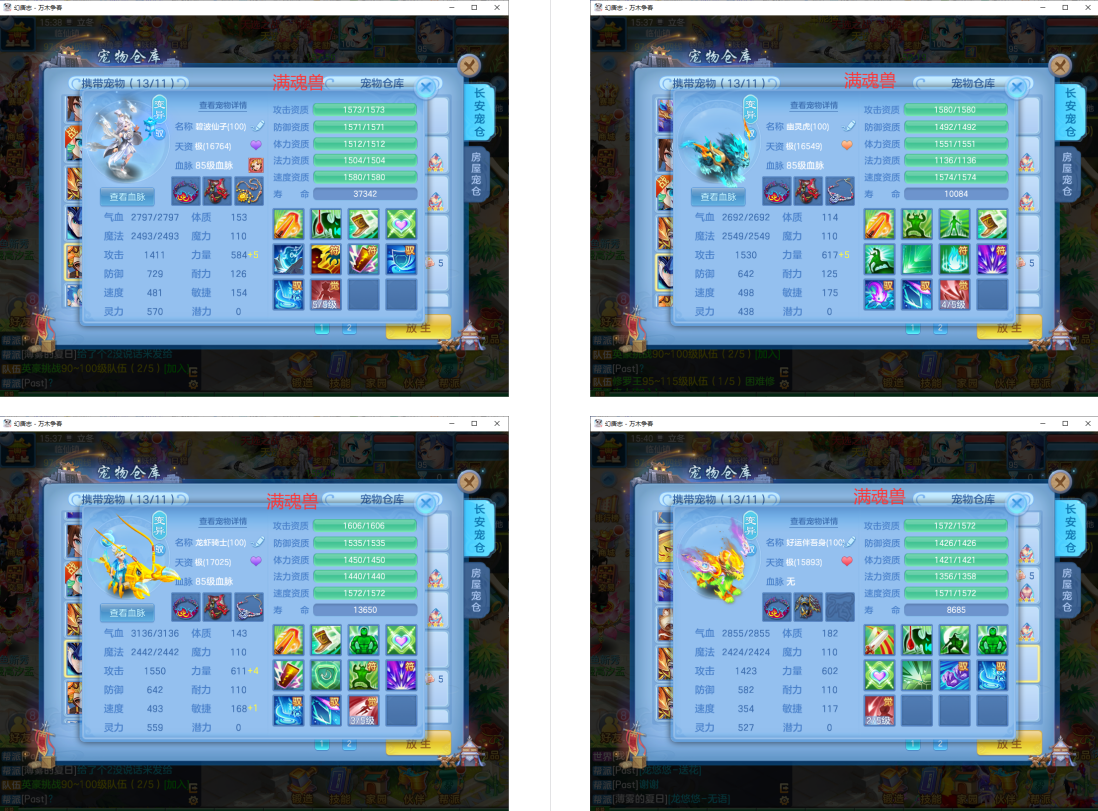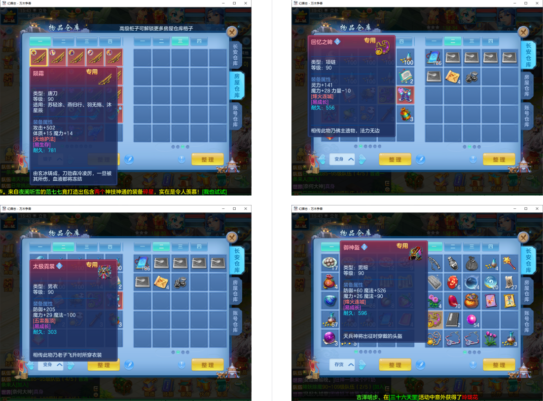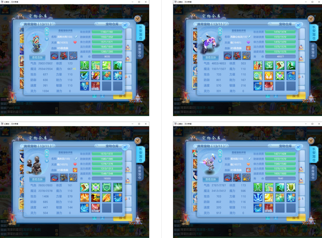 (95龙宫/男)万木争春/关联已生效★无双重★6件12段1件11段1件9段,神器腰带,三红项链三红腰带,仓库各种装备,三神兽(内丹蛇+满魂内丹玉龙+宠物猫),9个6多特殊5,19红8黄9个专属,7个宝宝皮肤,高级坐骑,75万银子,仓库有很多资源装备,3448成就