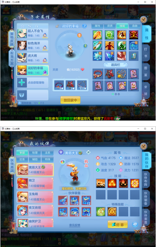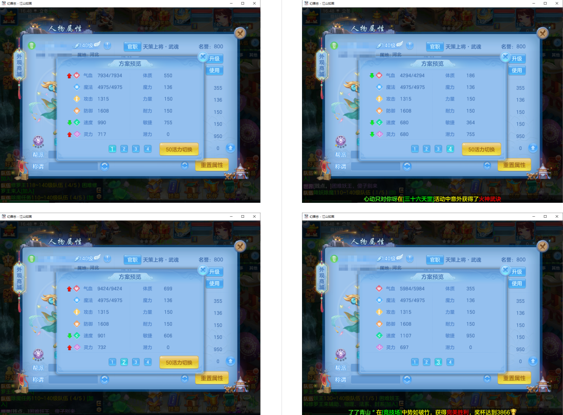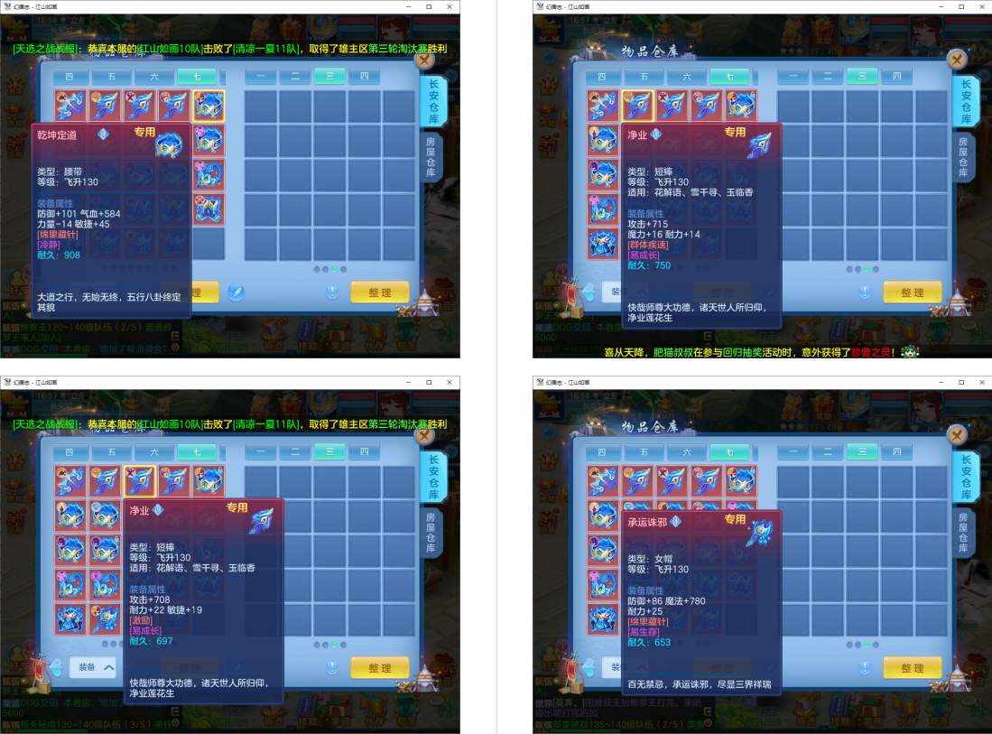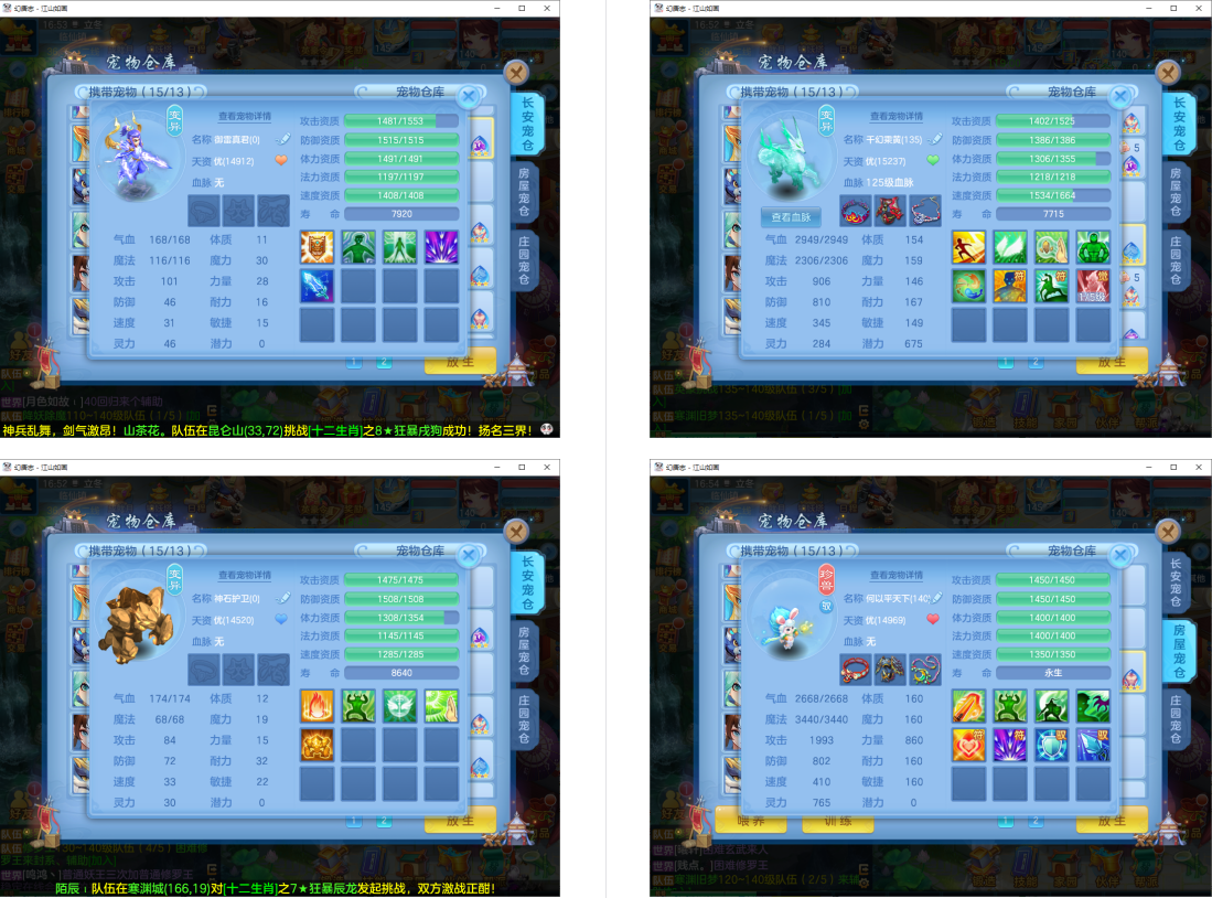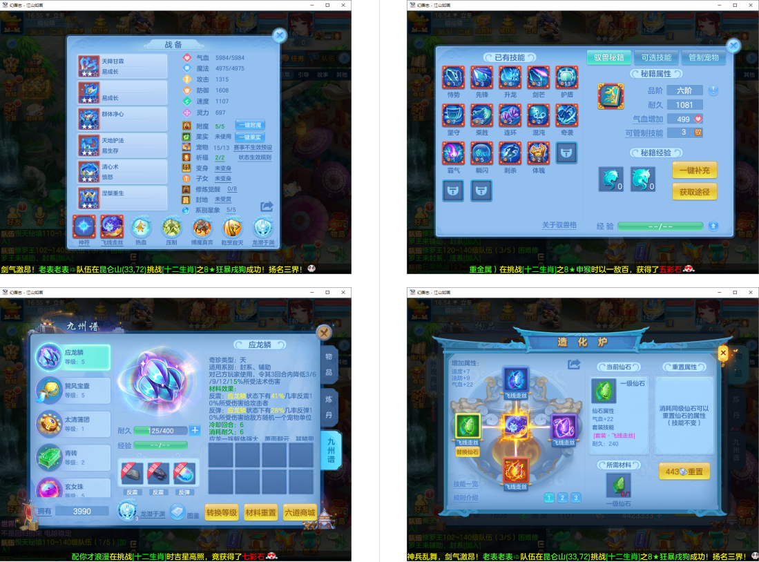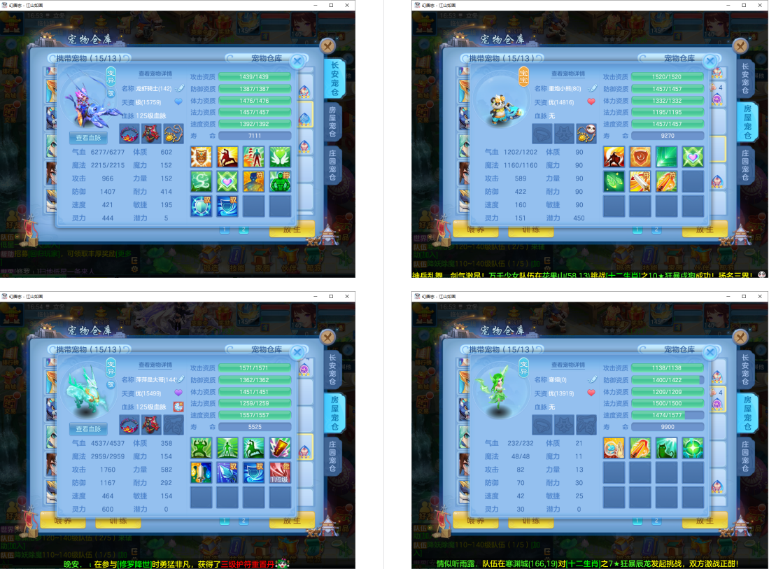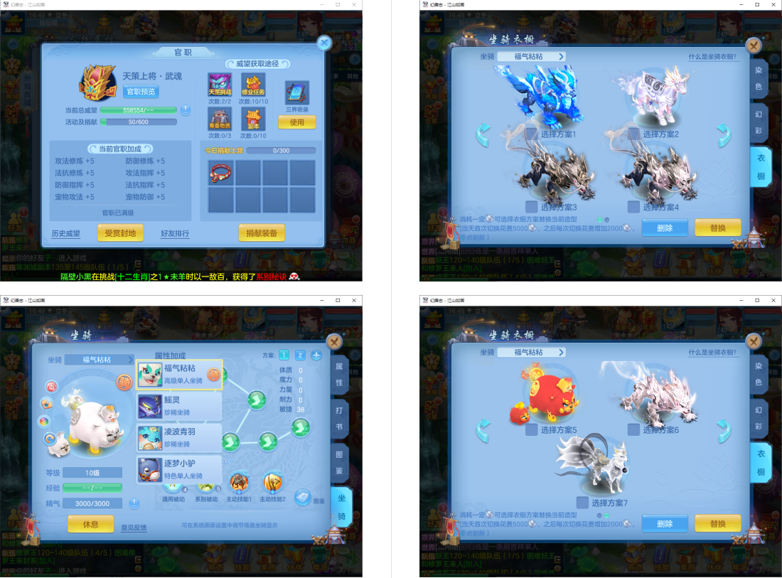 (140方寸/女)江山如画/邮箱不送/半年换绑/有双重---3件14段2件13段1件10段,特技装,满魂仙兽+2内丹神+9个6多特殊5(总6满魂),16红10黄10专属血脉,22个宝宝皮肤,高级坐骑+金拍庄园,440万银子,3249成就