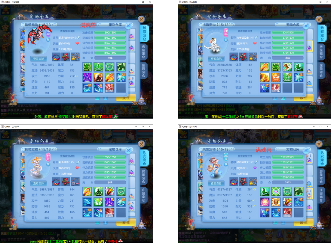满魂仙兽+2内丹神+9个6多特殊5(总6满魂),16红10黄10专属血脉,22个宝宝皮肤