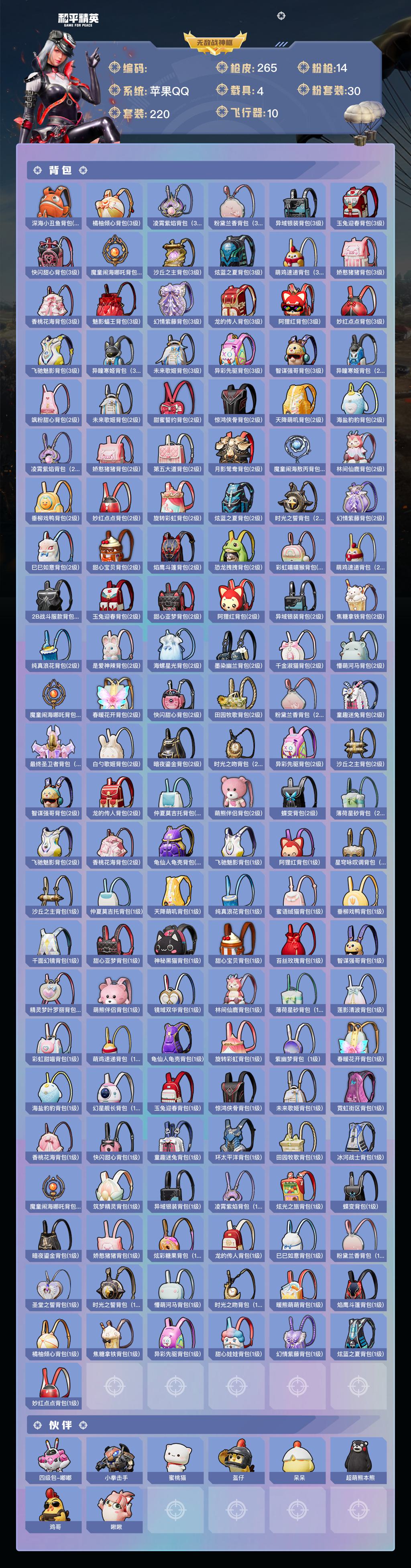 热力值:108915,1神装,29粉装,14粉枪,4载具,
