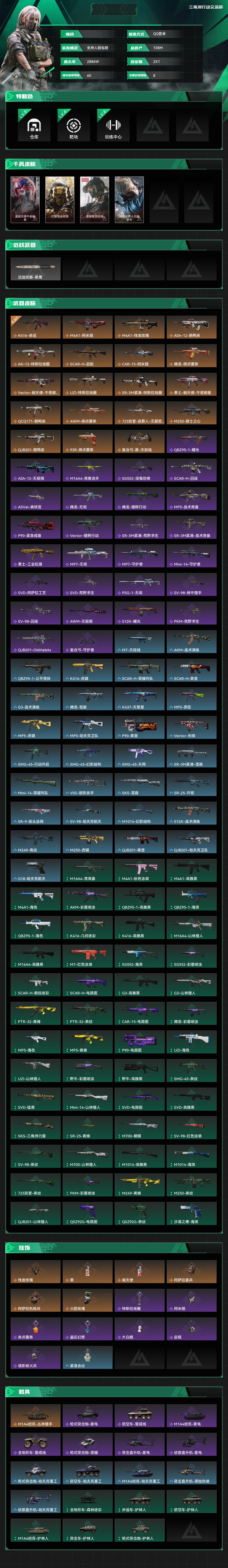 总资产:108M,哈夫币:2886W,武器皮肤129;烽