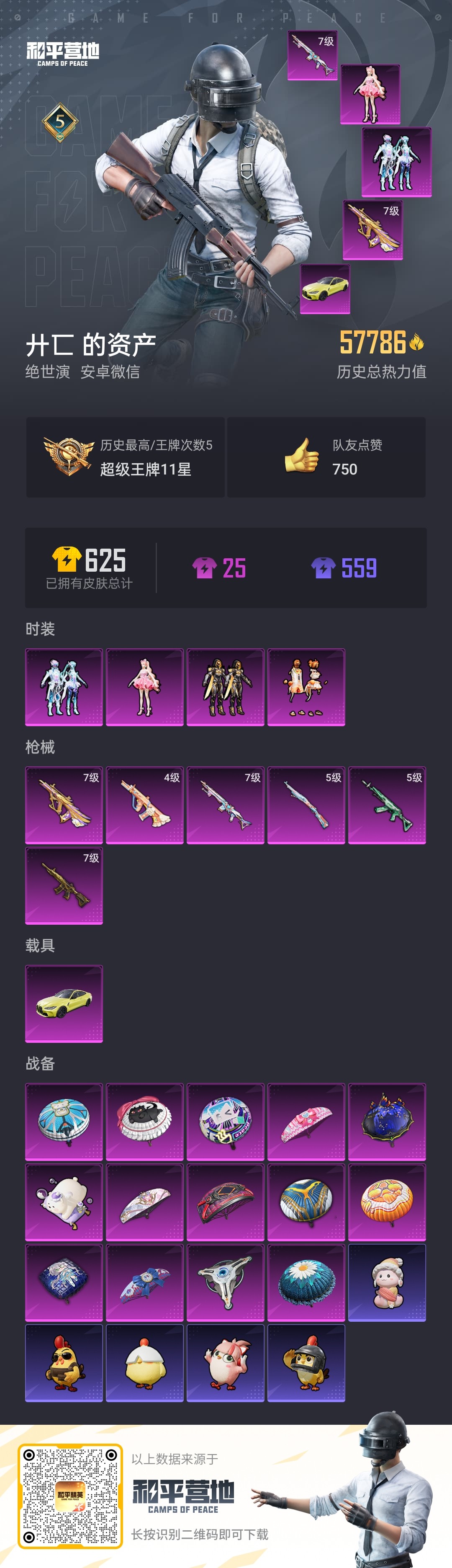升级枪都是满级的,还有两万多服饰币,一千多绿币