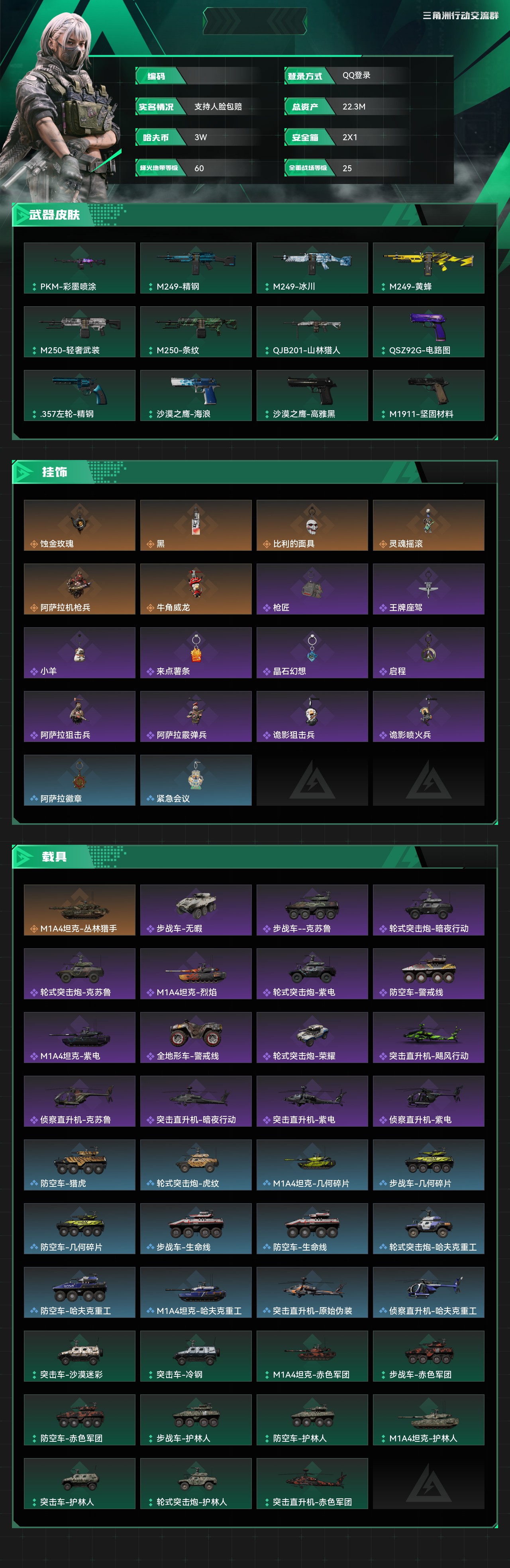 总资产:22.3M,哈夫币:3W,武器皮肤210;烽火6
