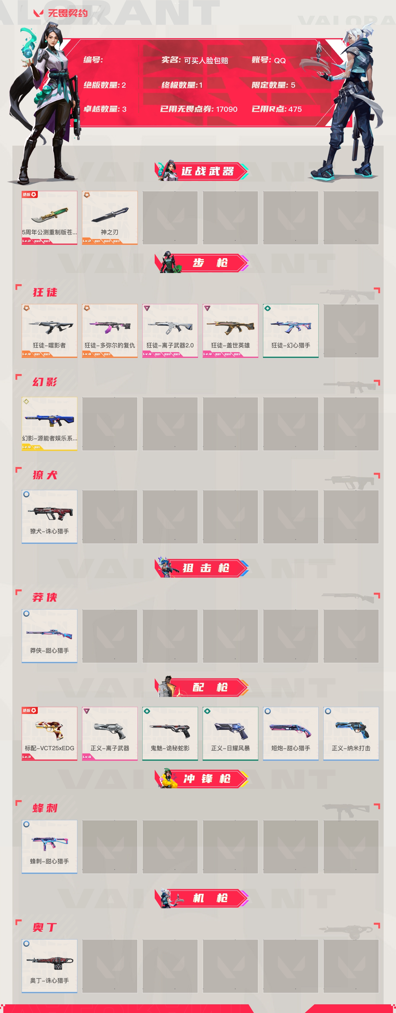 Lv87|黄金II, 刀皮数量2,枪皮数量16(绝版2限定5终
