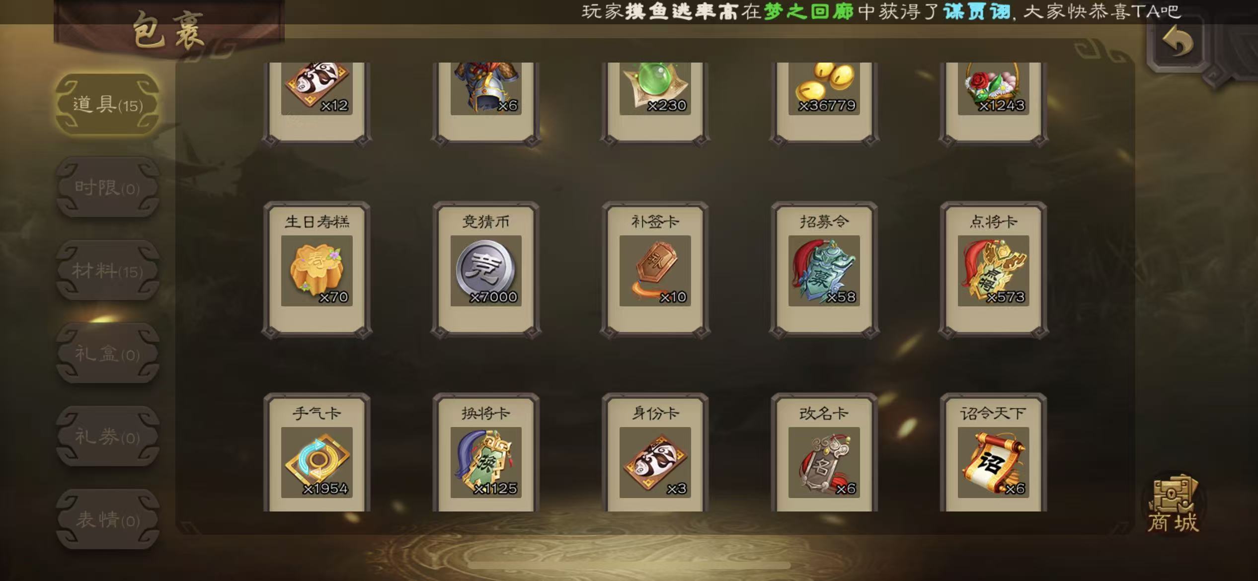 动态大宝神刘备谯周三卡6000将魂4.4万羽毛