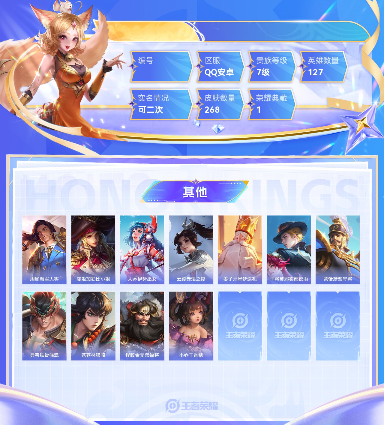 典藏1 传说11 史诗80 限定86 英雄127 皮肤2