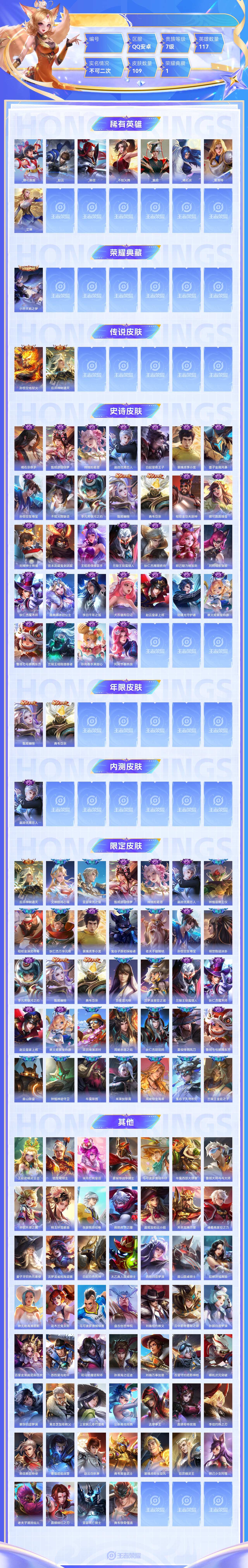 典藏1 传说2 史诗32 限定35 英雄117 皮肤10