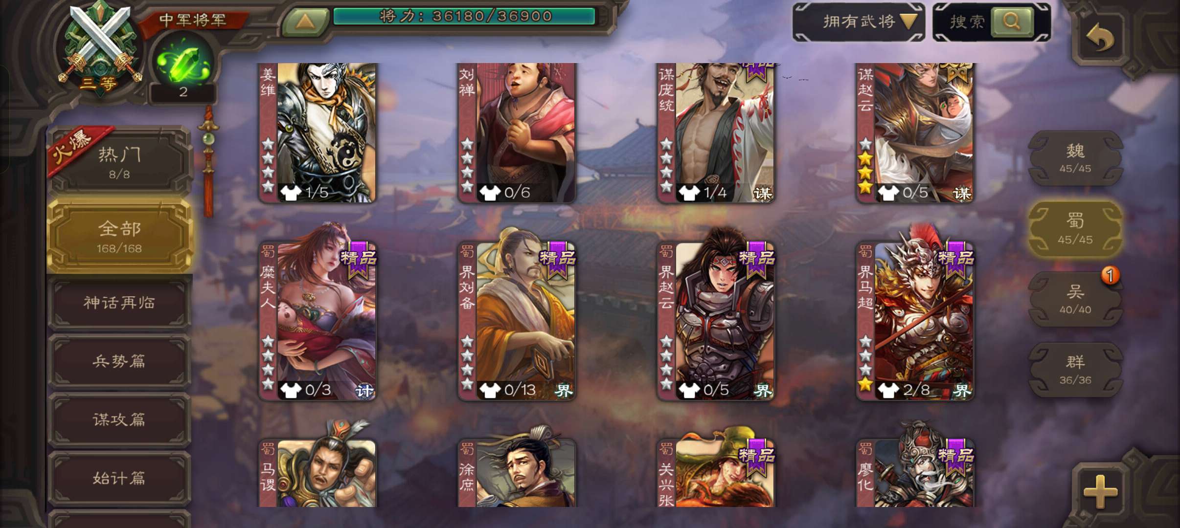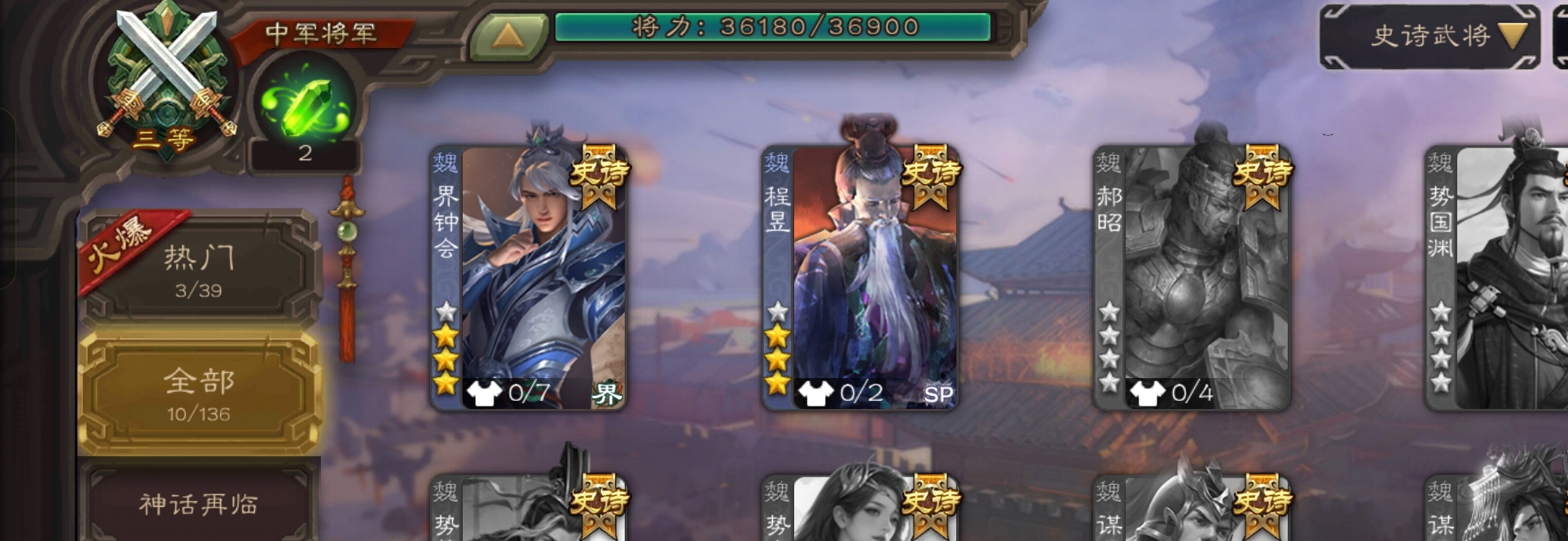 10史诗中军,7万豆,回廊动白马神吕布神赵云界钟会谋赵云谯周土鳖贺齐左慈程昱,神吕蒙甘夫人5万多毛