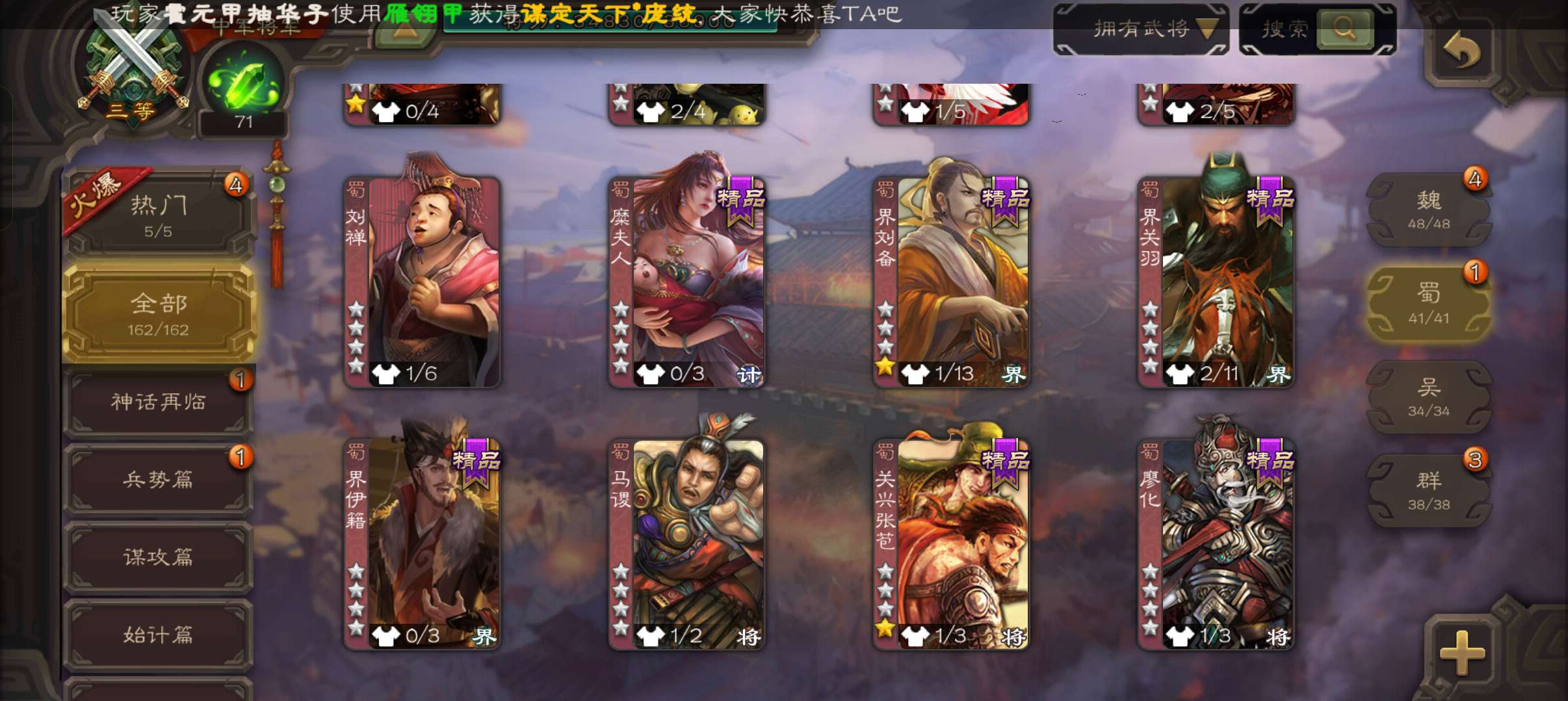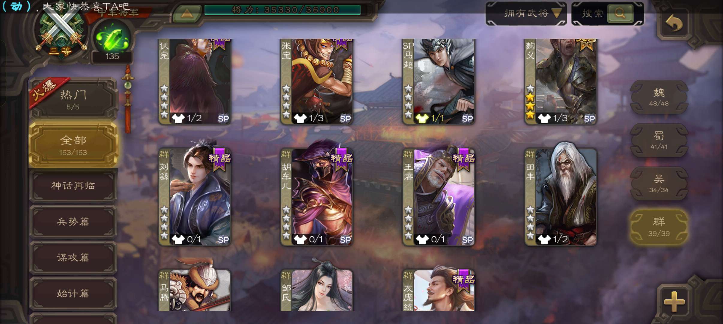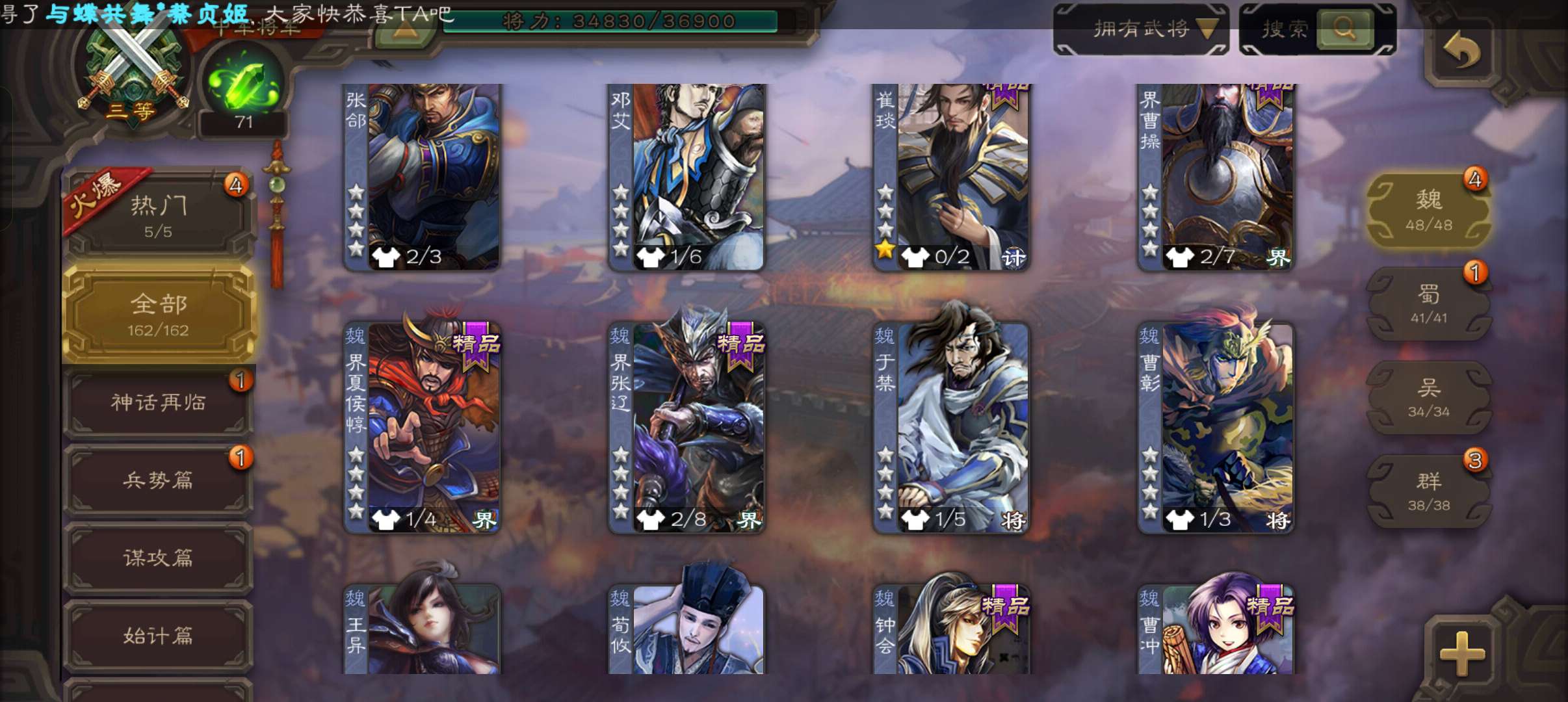 8史诗中军,8万羽毛6万豆,回廊动白马界钟会神吕布沙摩柯张让谯周界于禁程昱,界吕布势田丰崔琰163将