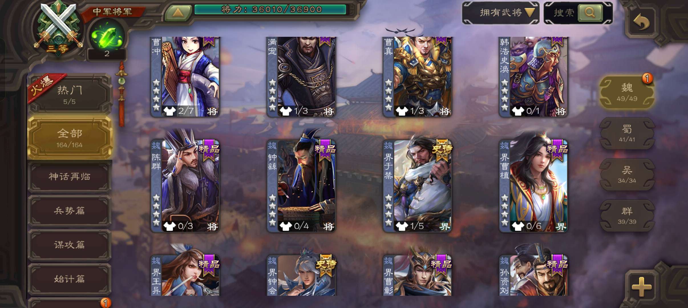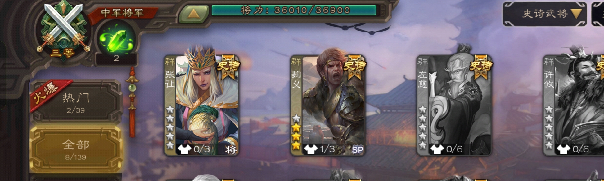 8史诗中军,6.9万豆,回廊动白马回廊神吕布界钟会沙摩柯张让谯周界于禁程昱,界吕布势田丰崔琰164将