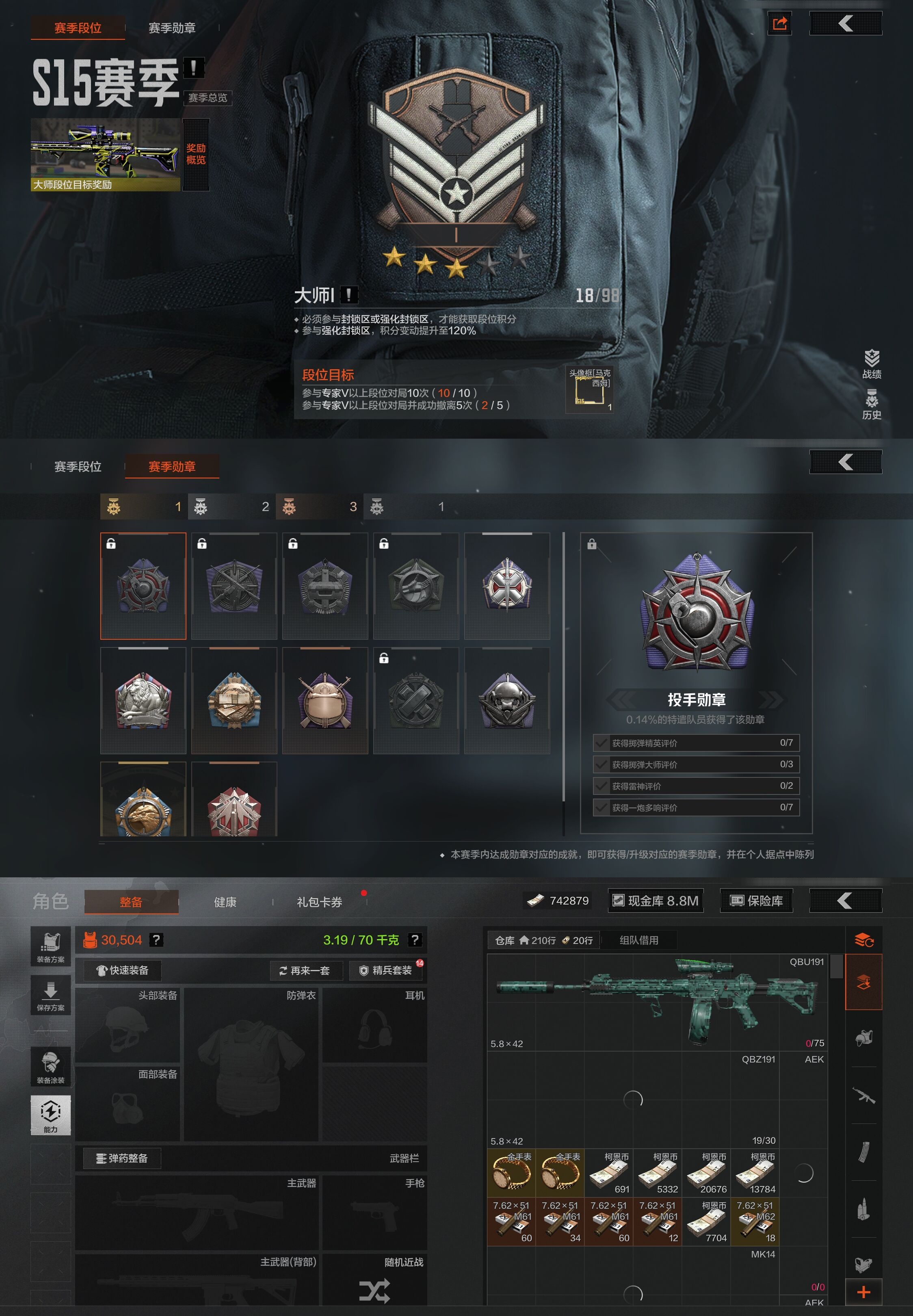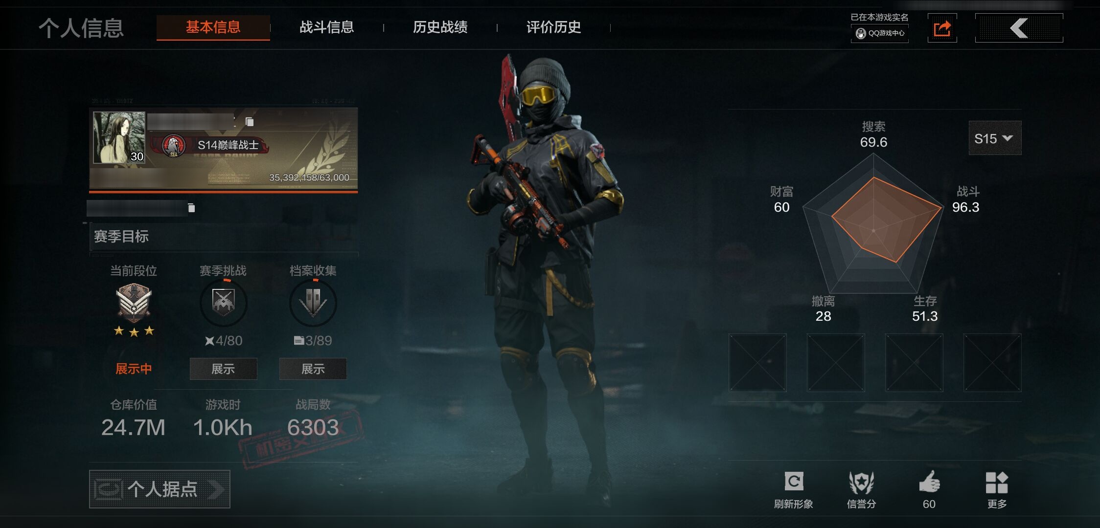 30级,刀皮5,金枪皮5,紫枪皮30,历史最高段位:暗区传