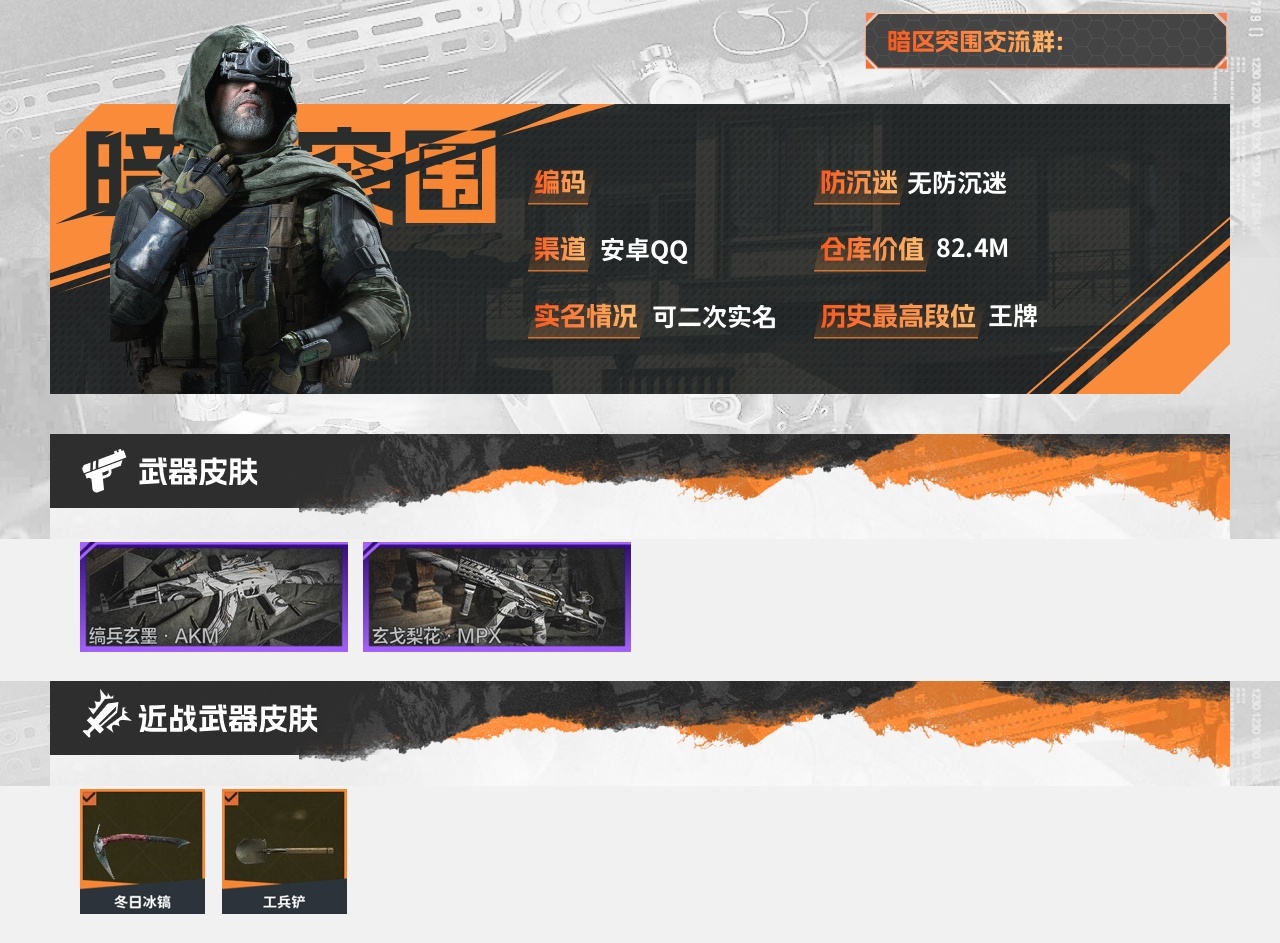 30级,刀皮2,紫枪皮2,历史最高段位:王牌