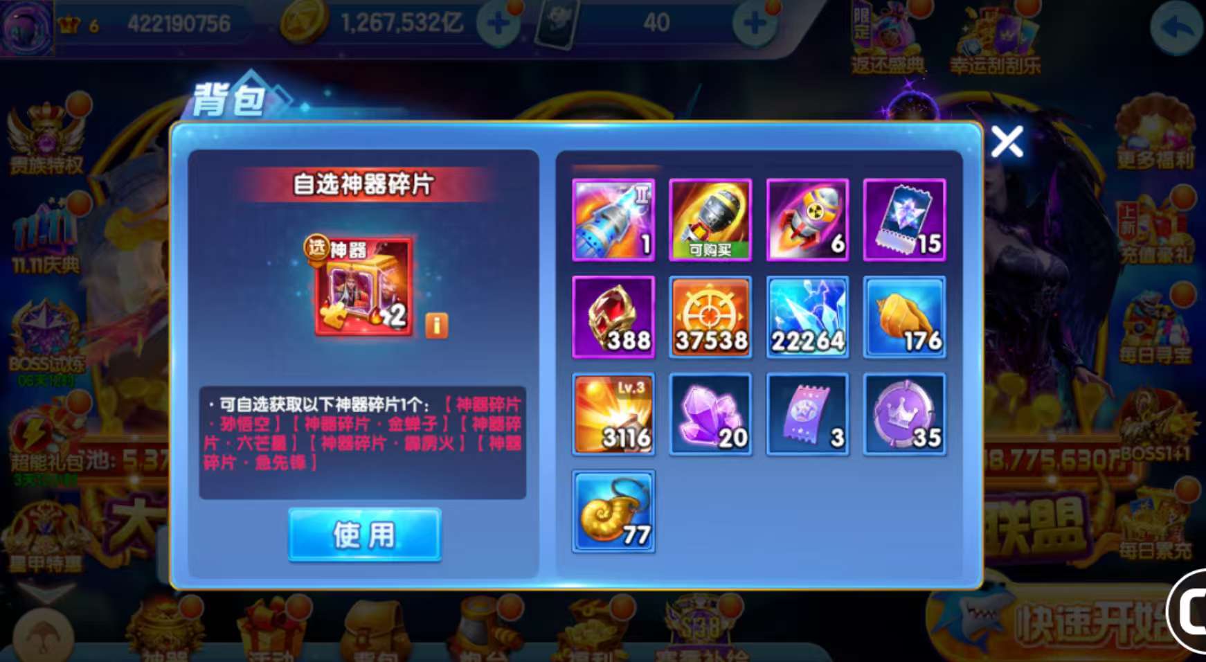 关羽炮台,120亿炮,充能金币加倍